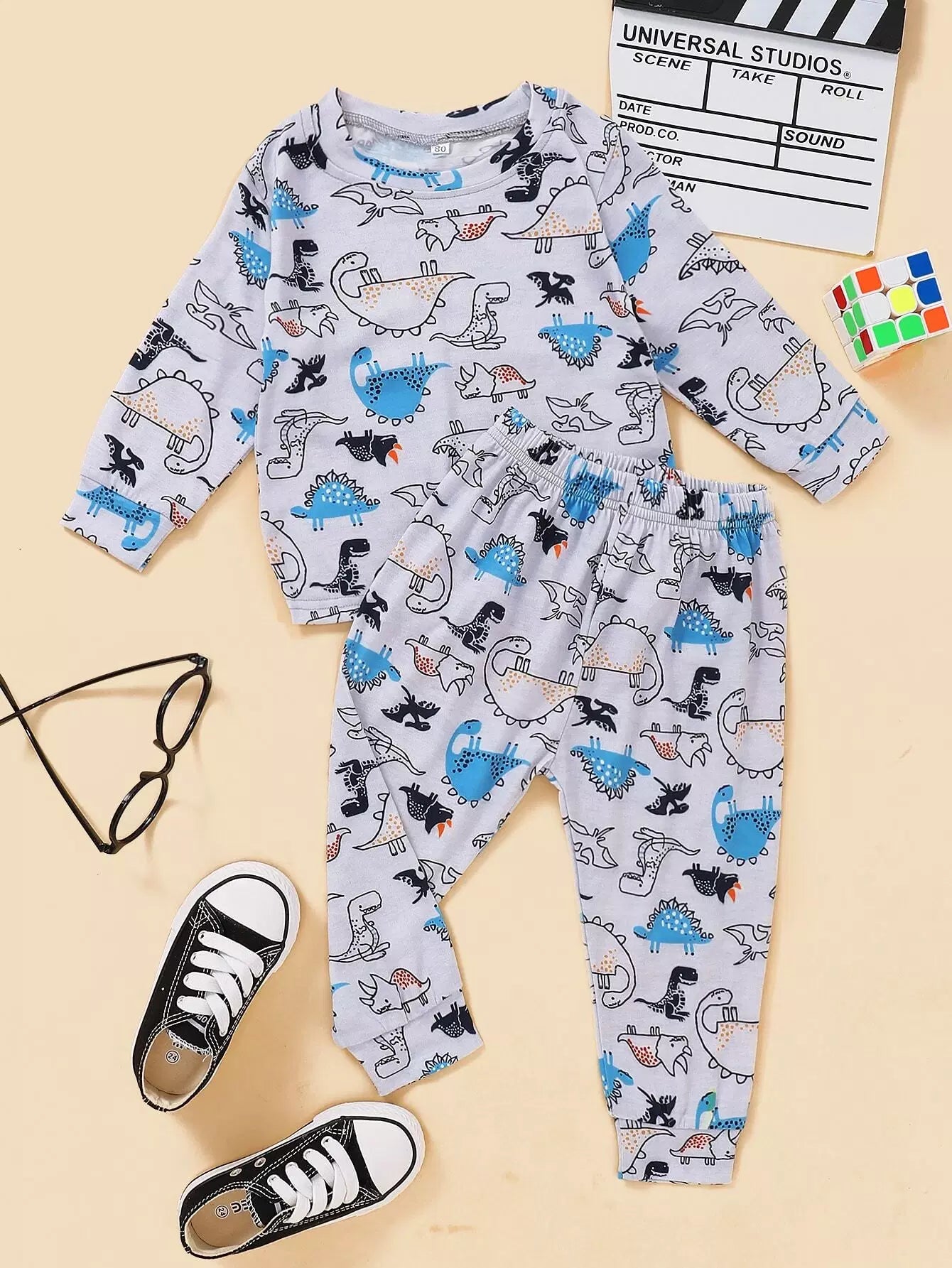 Kids - Baby Boy Dinosaur Print Tee And Pants