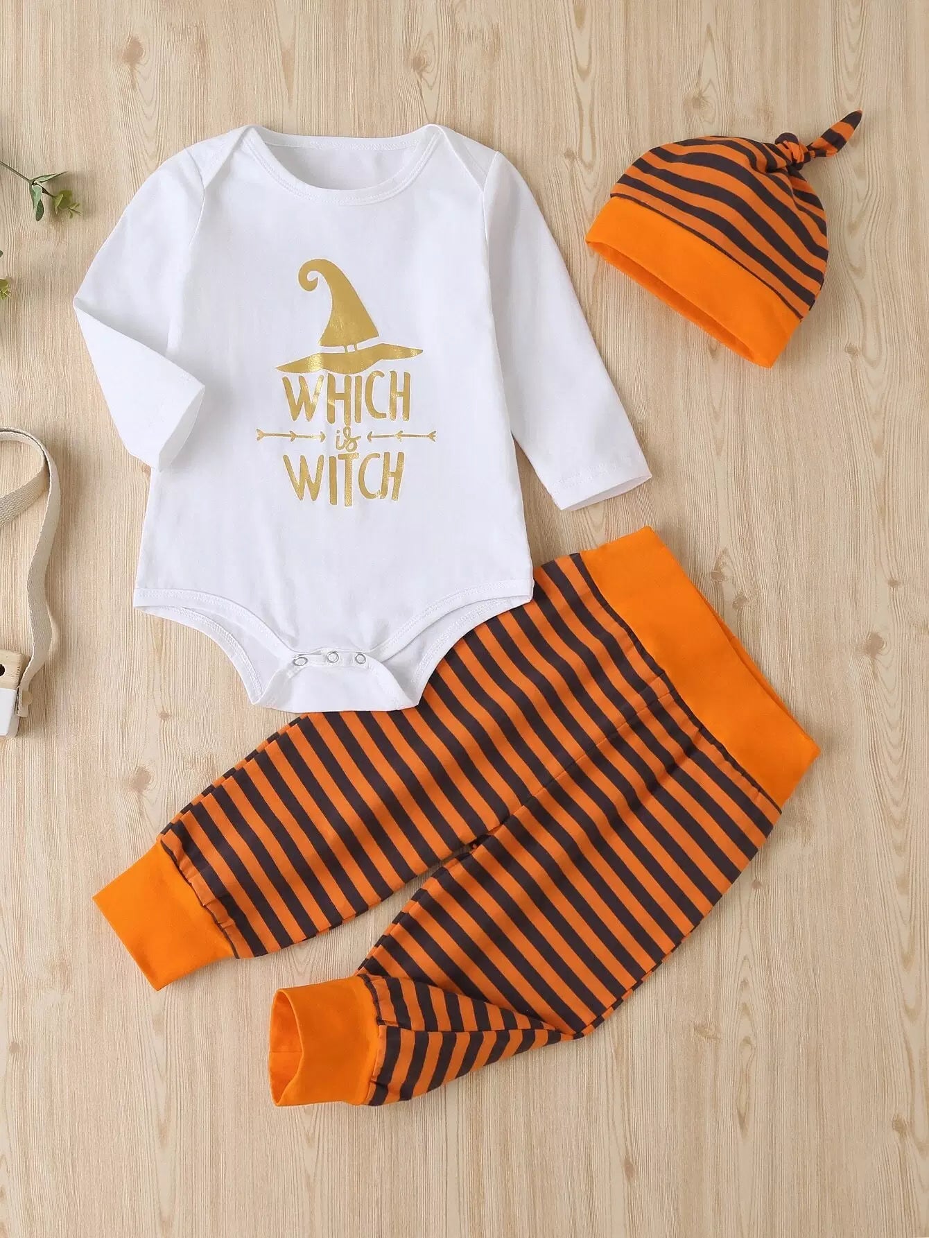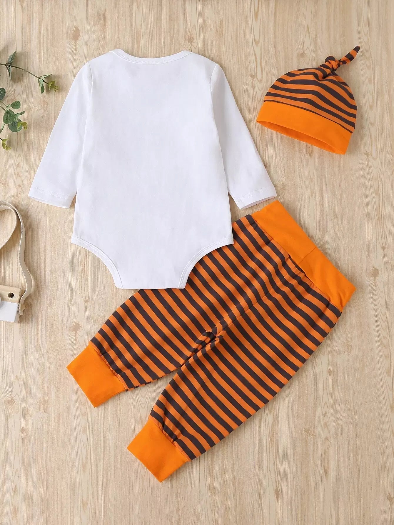 Baby Boy Letter Graphic Bodysuit & Striped Pants With Hat
