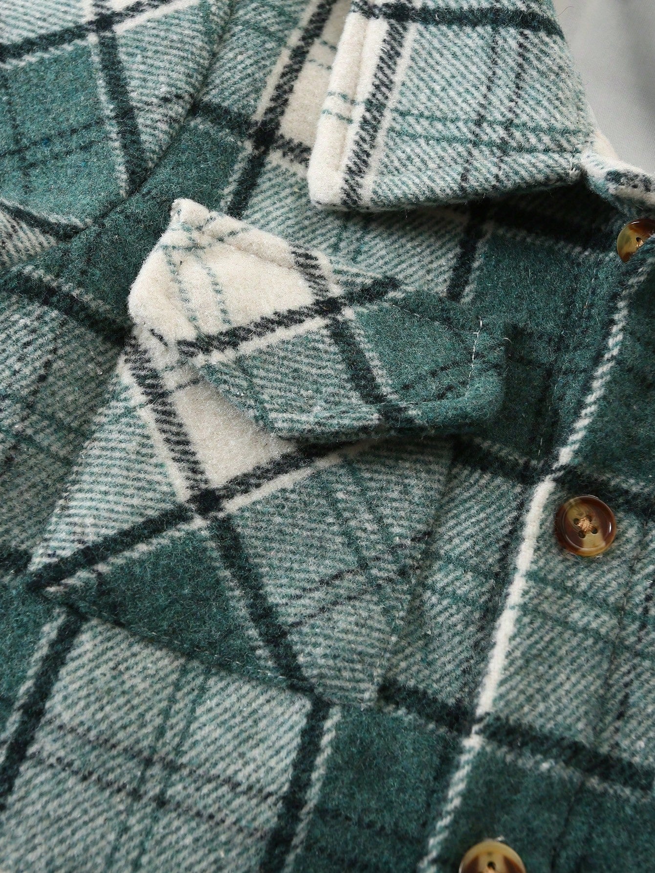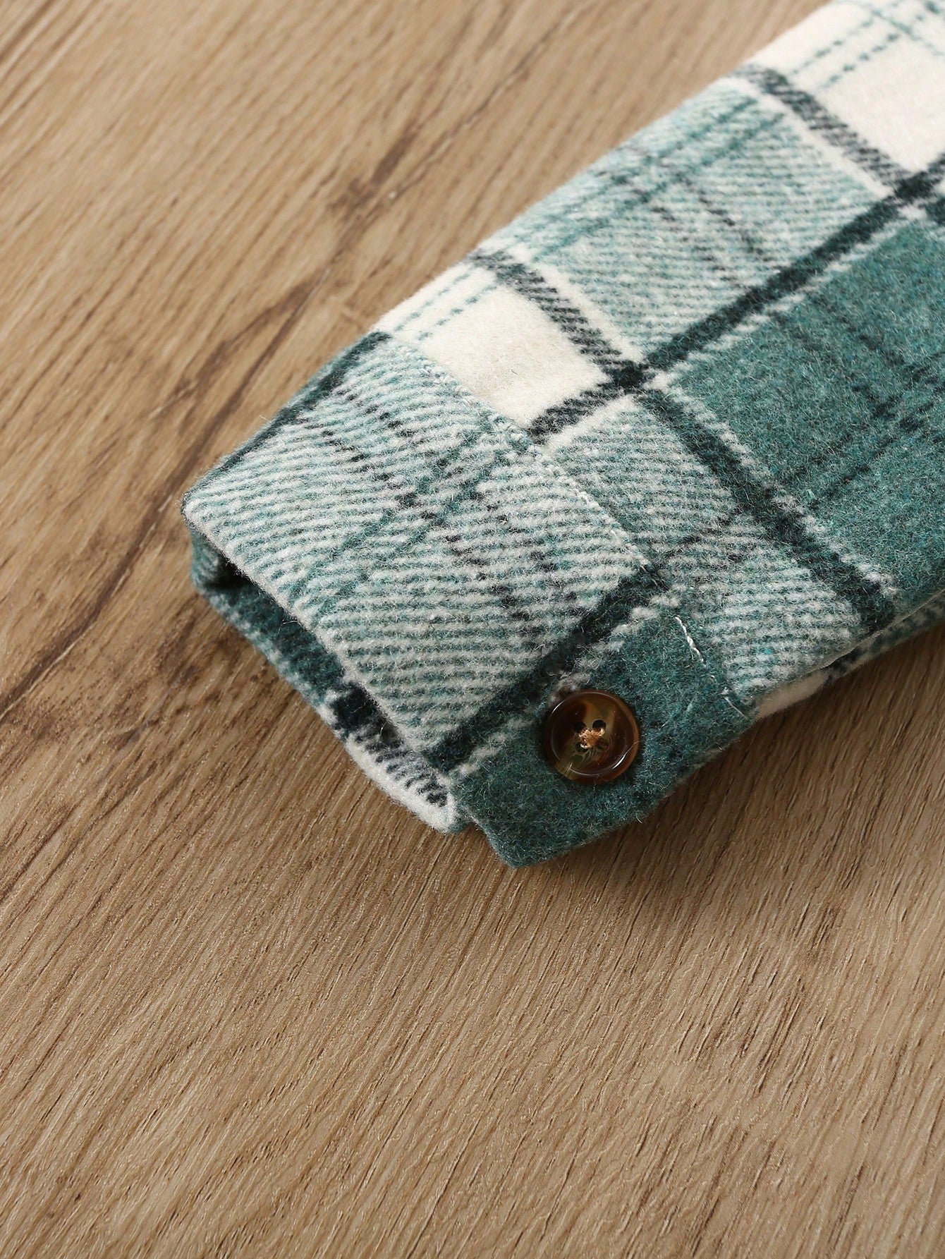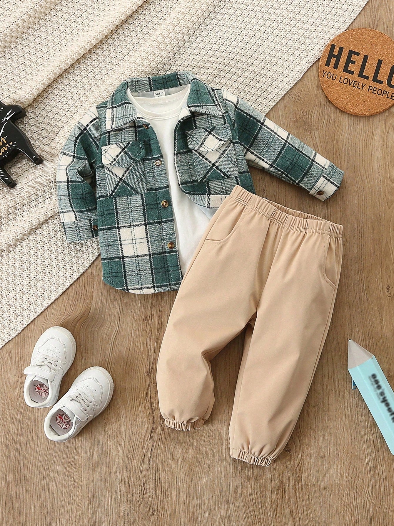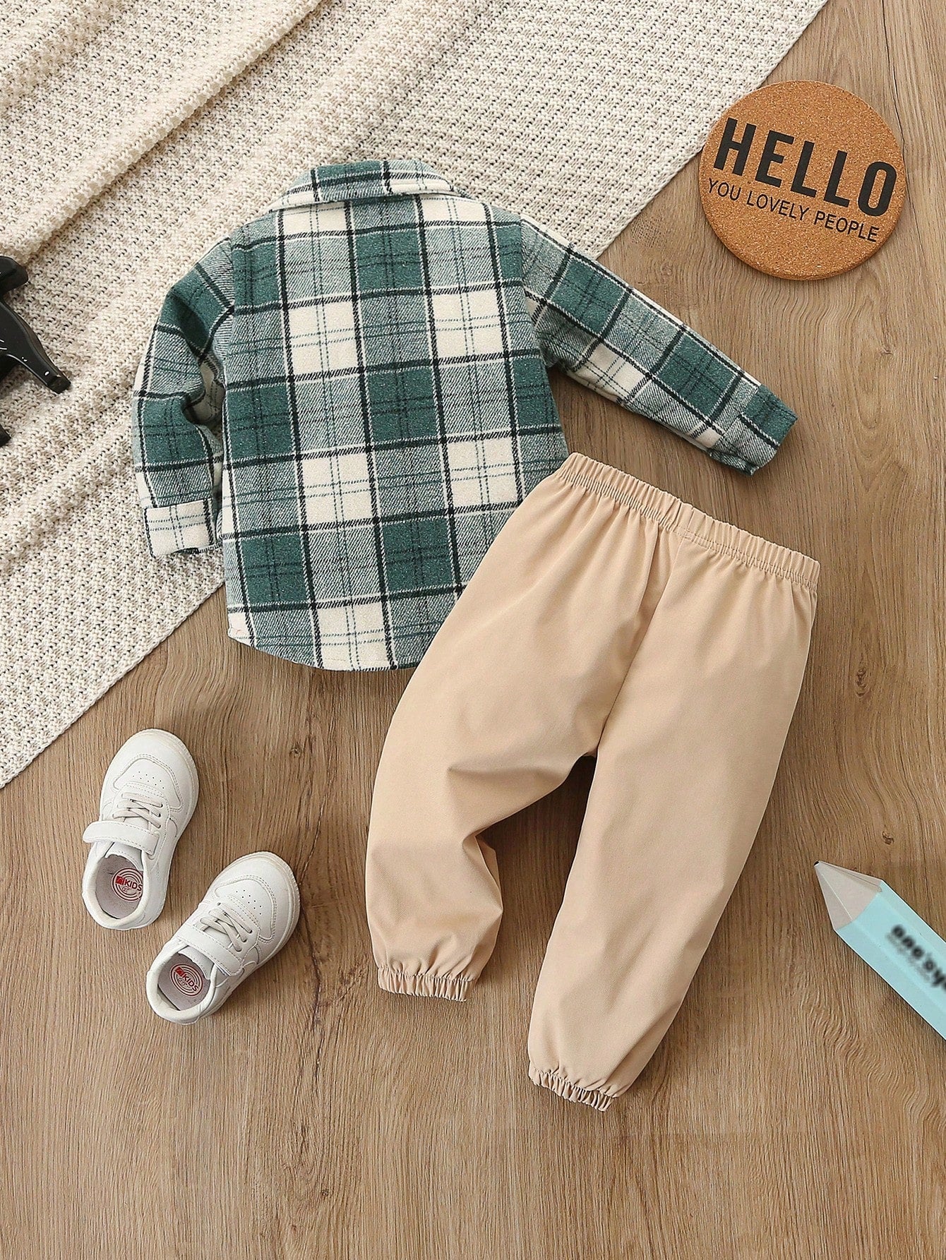 Baby Boy Plaid Print Flap Pocket Shirt & Pants Without Tee, For Christmas