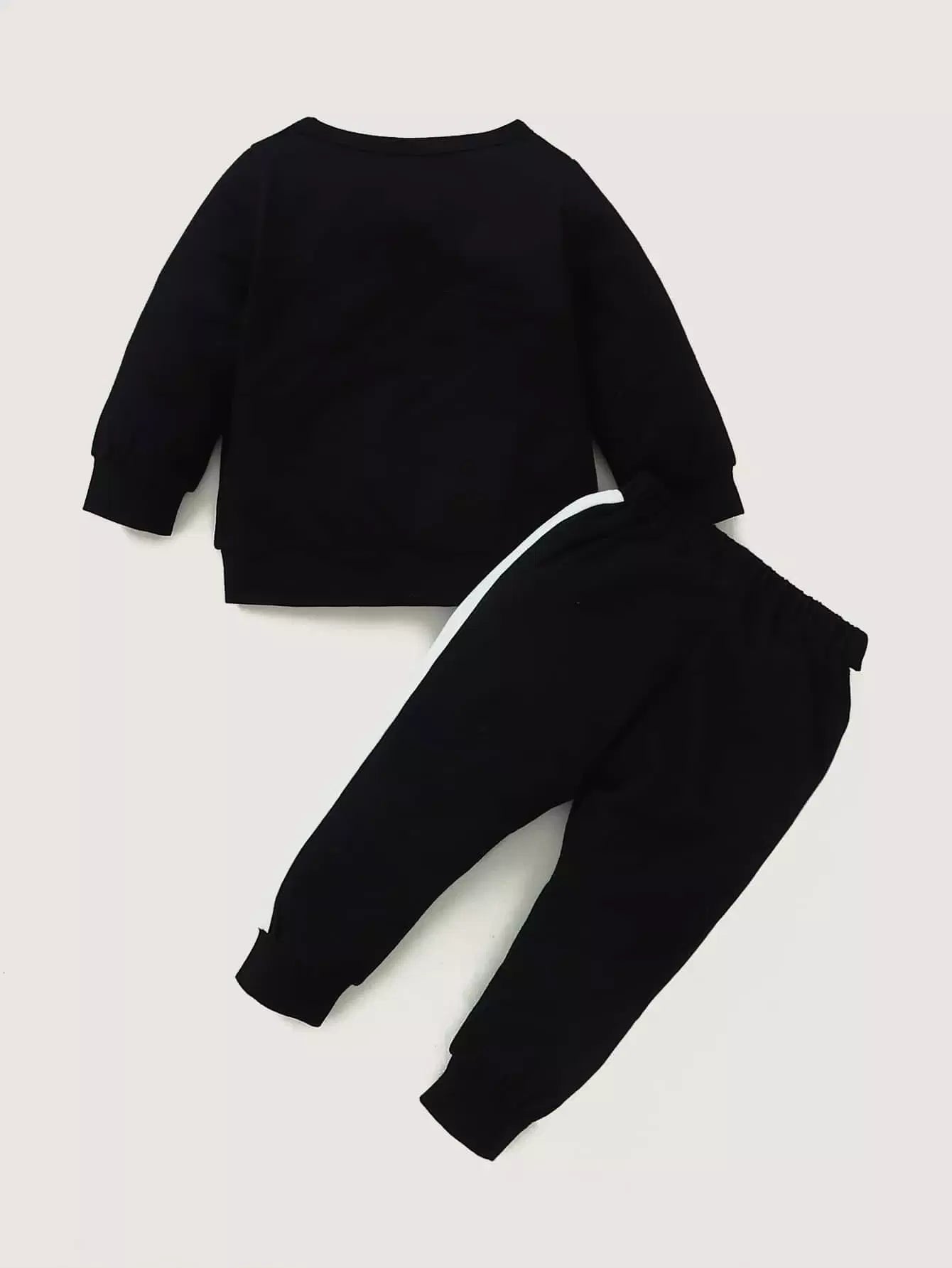 Baby Boy Slogan Graphic Sweatshirt & Side Stripe Sweatpants