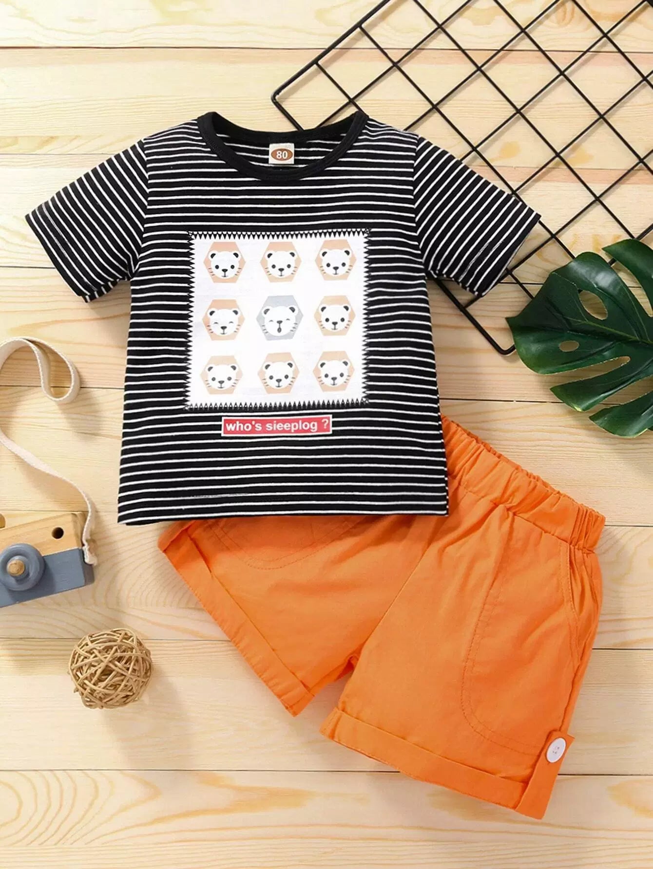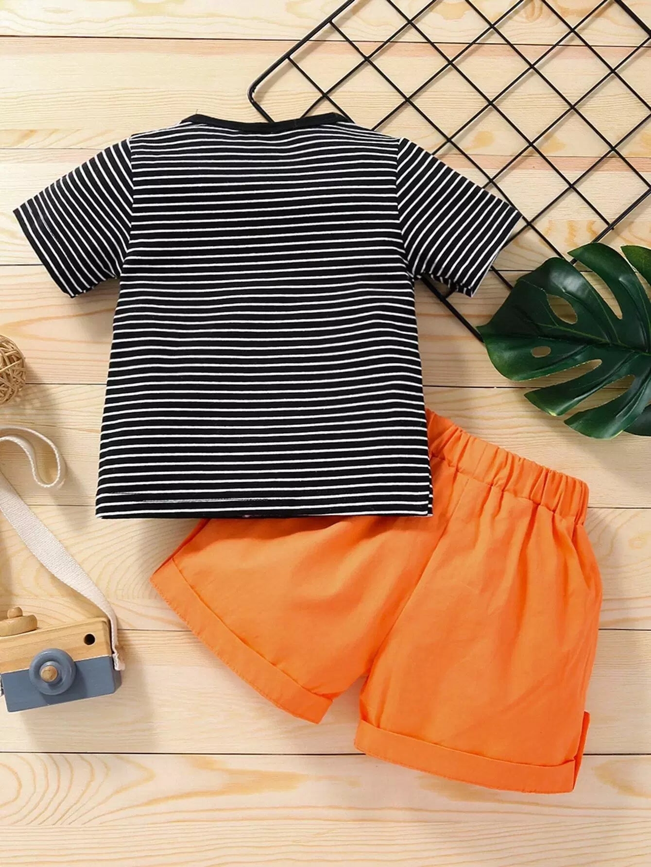 Baby Boy Striped & Cartoon Graphic Tee & Shorts