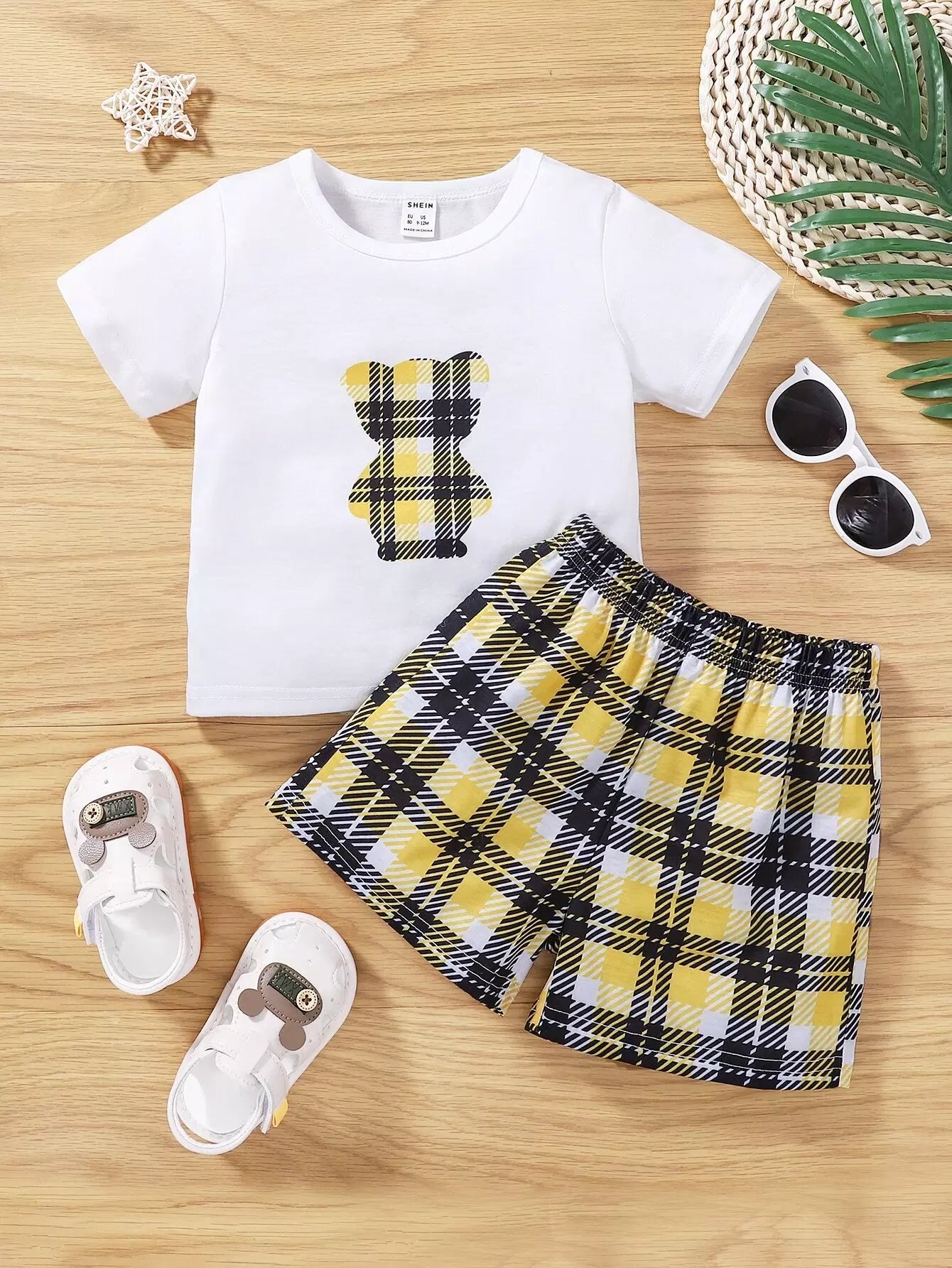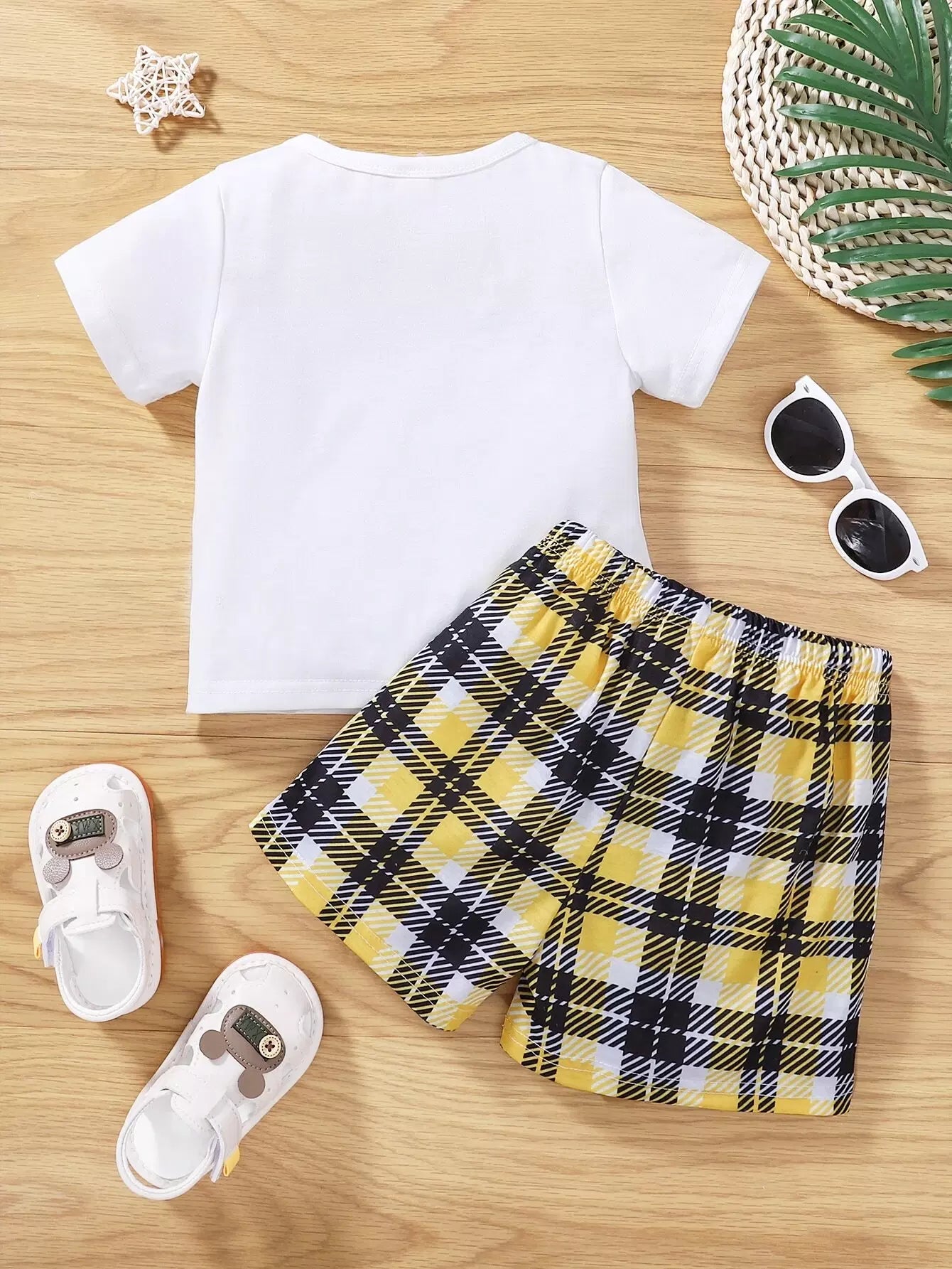 Baby Cartoon Graphic Tee & Plaid Shorts