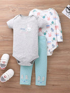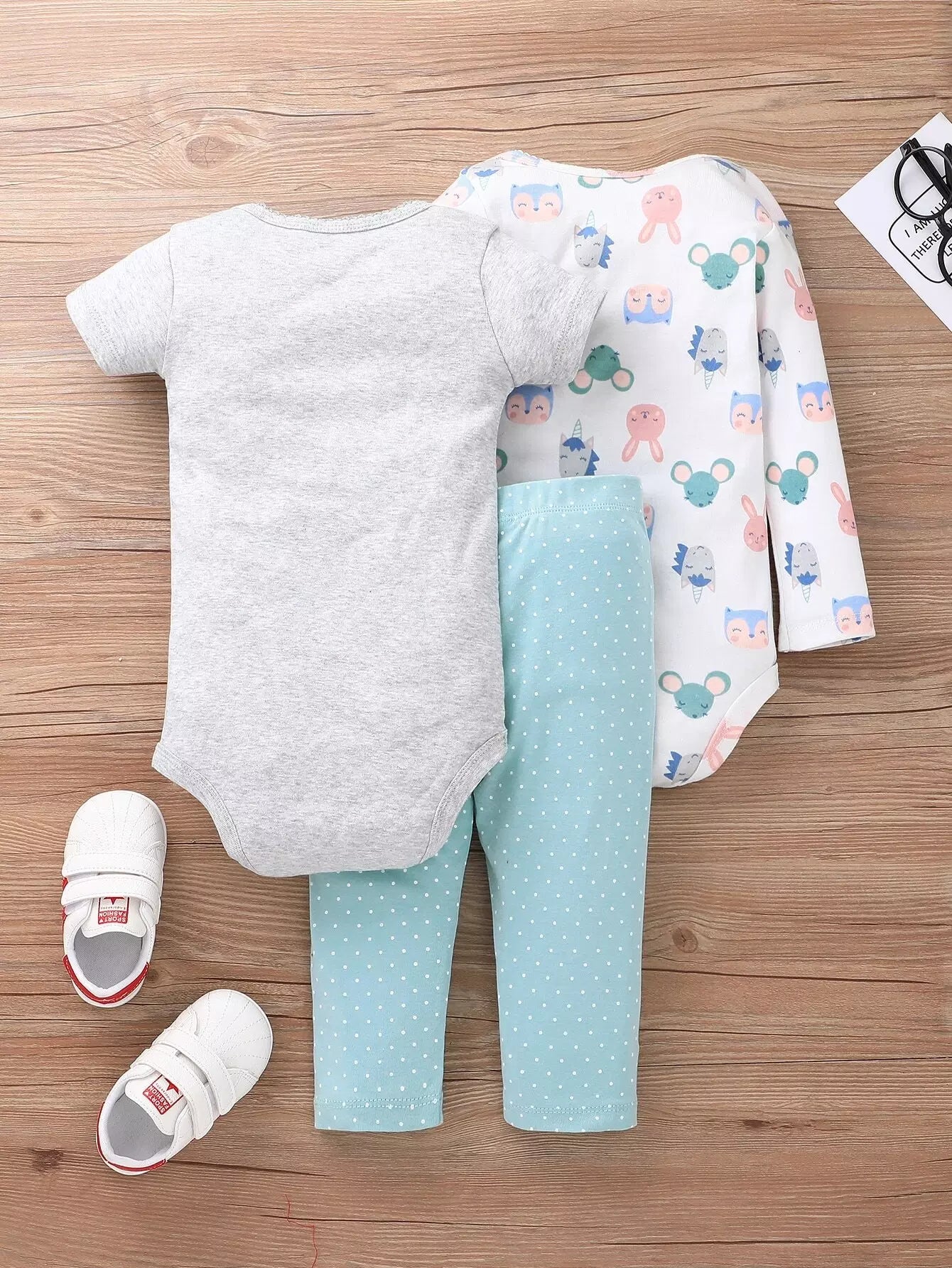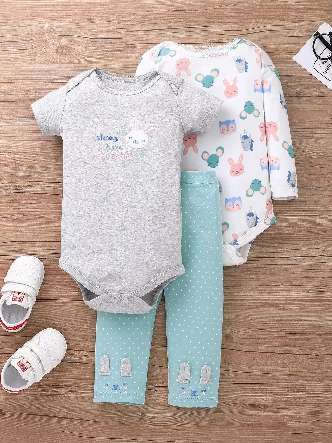 Baby Girl 3 Pack Cartoon Graphic Embroidery Bodysuit & Leggings
