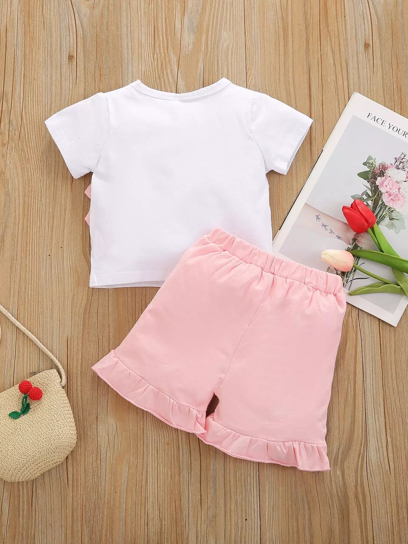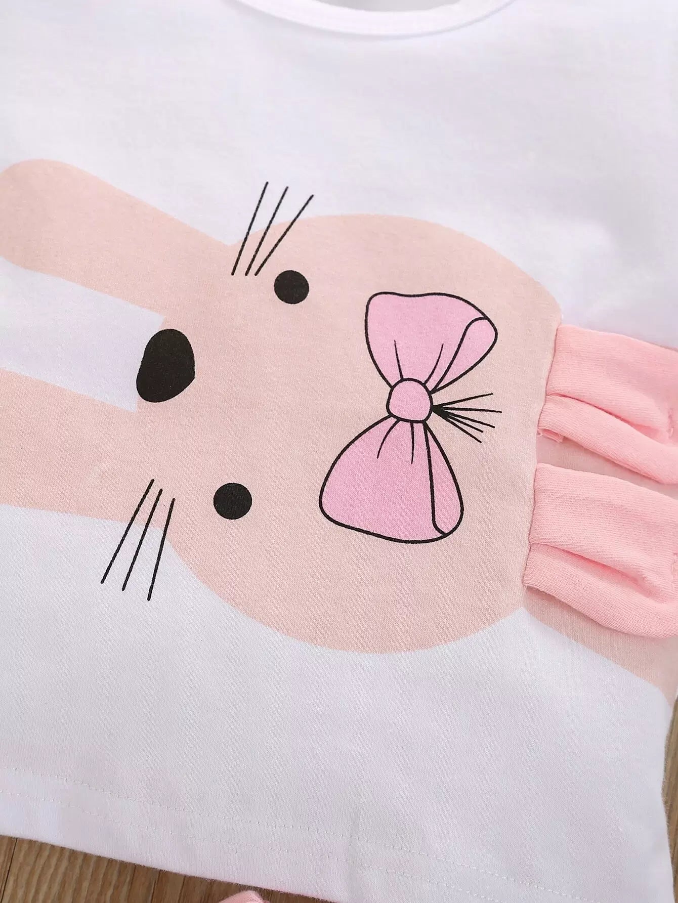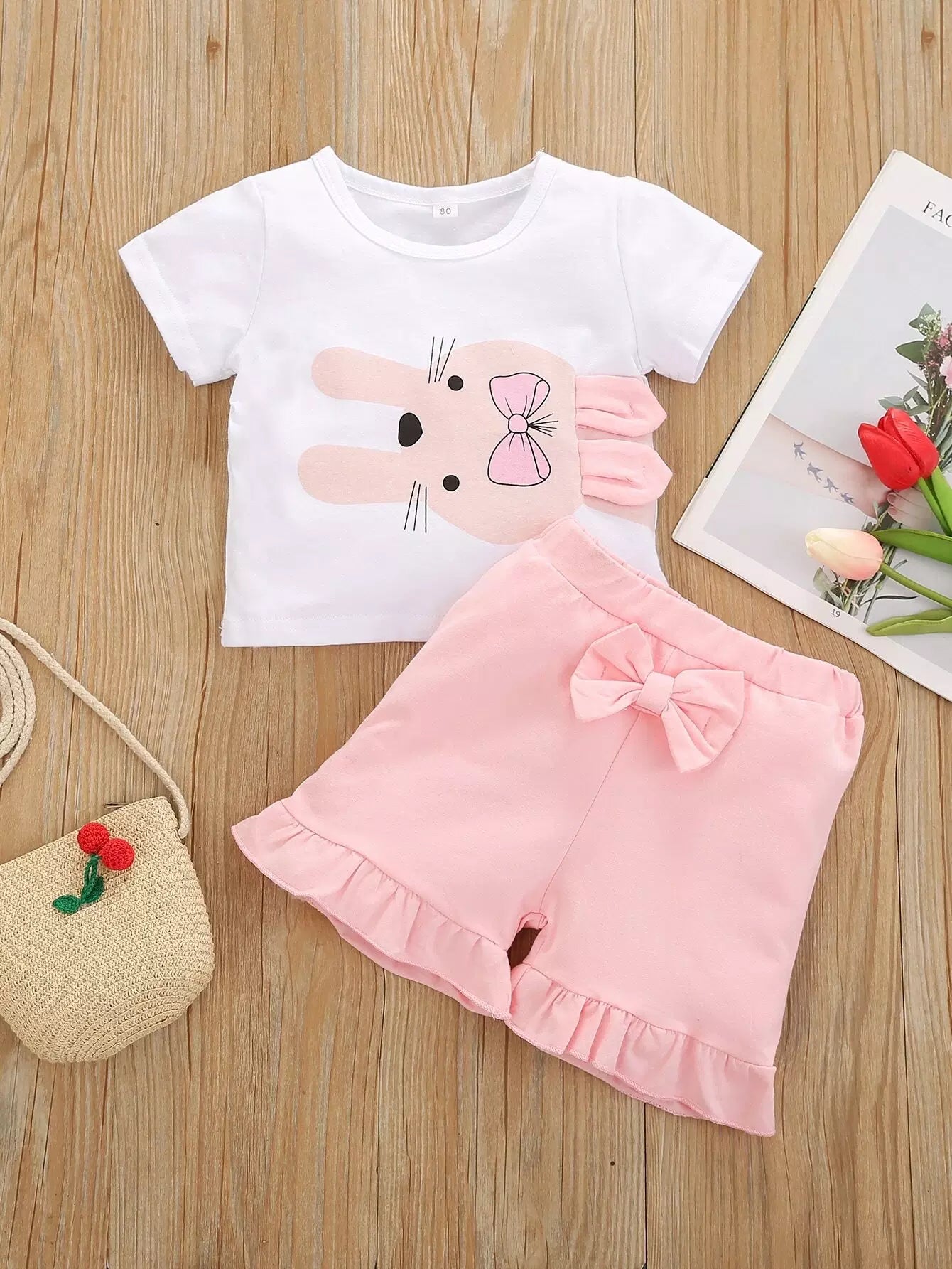 Baby Girl 3D Rabbit Ear Design Tee With Bow Front Shorts