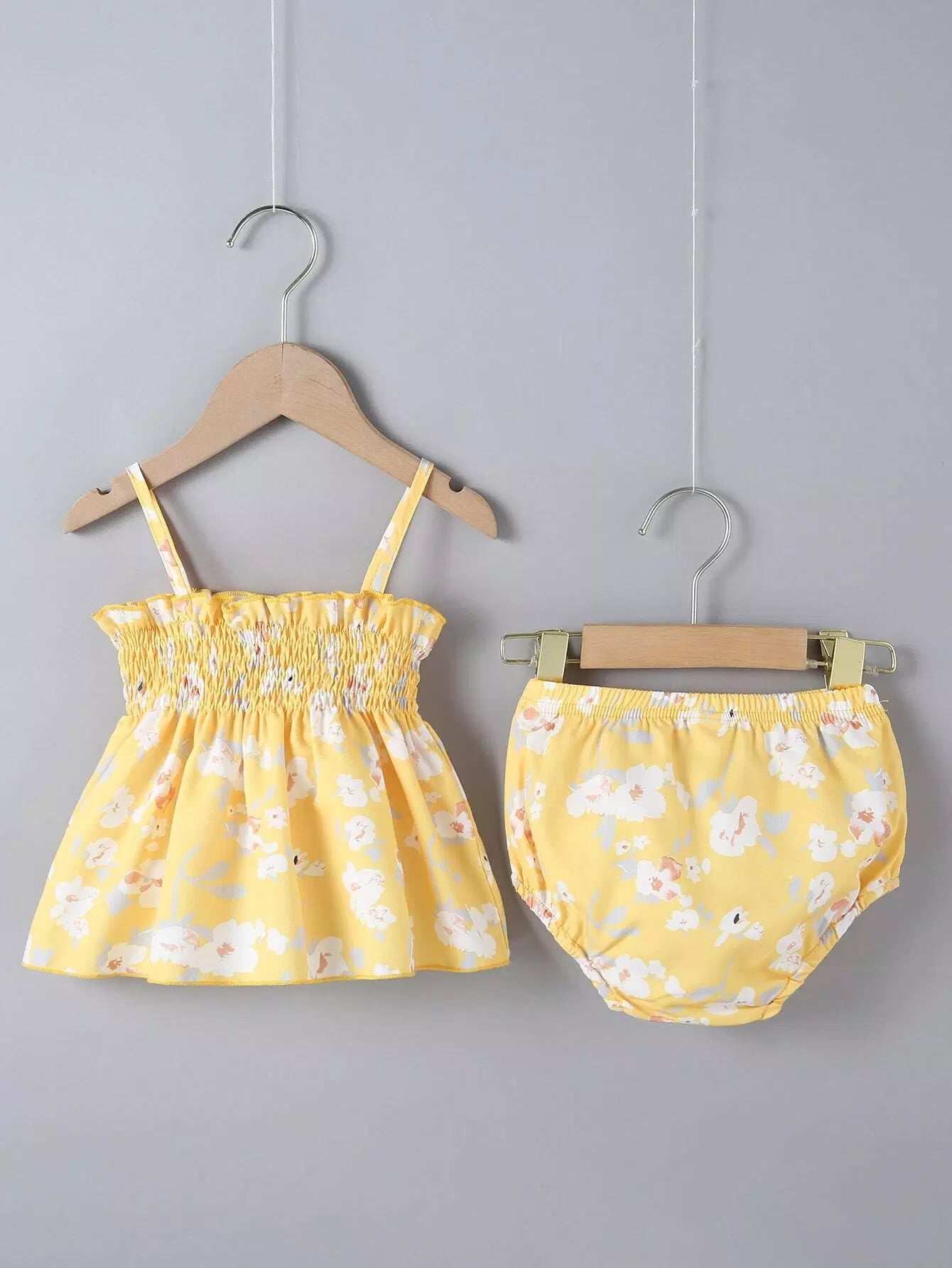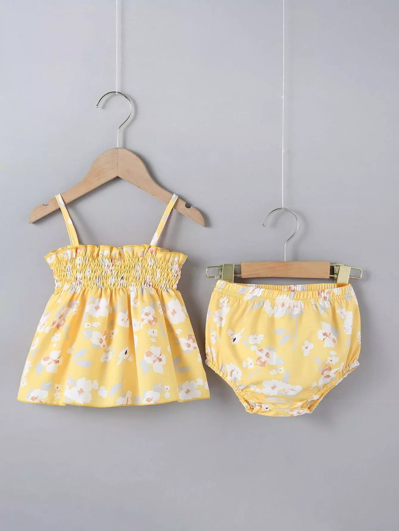 Baby Girl Allover Floral Print Frill Trim Cami Top With Shorts