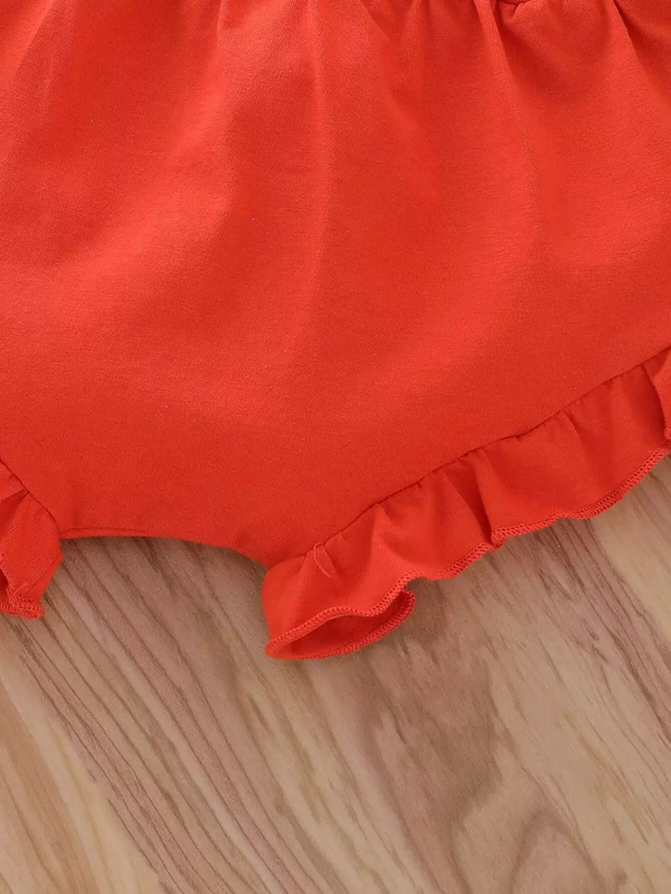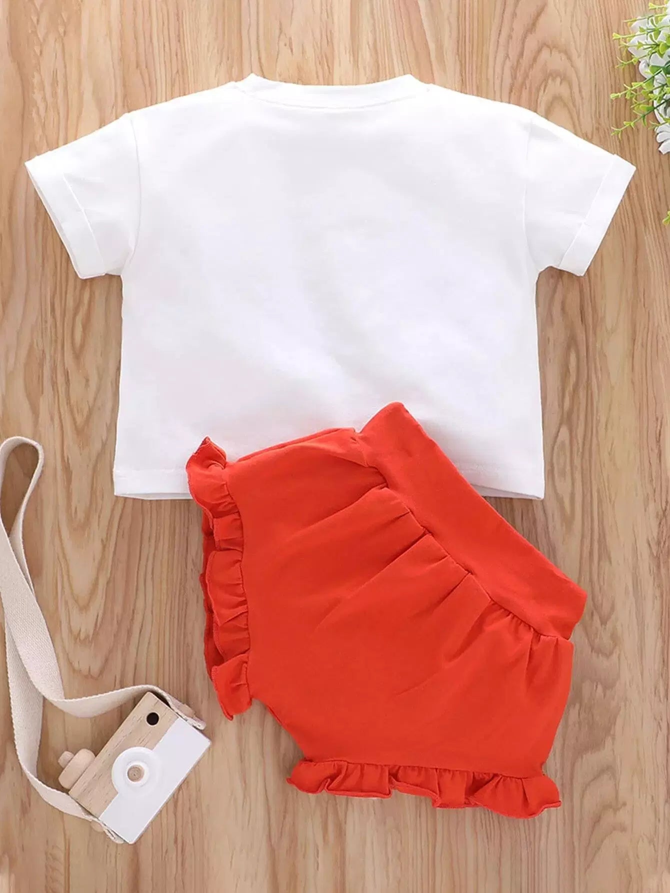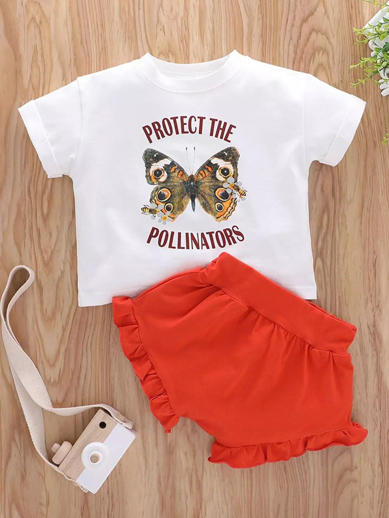 Baby Girl Butterfly And Slogan Graphic Tee & Ruffle Hem Shorts