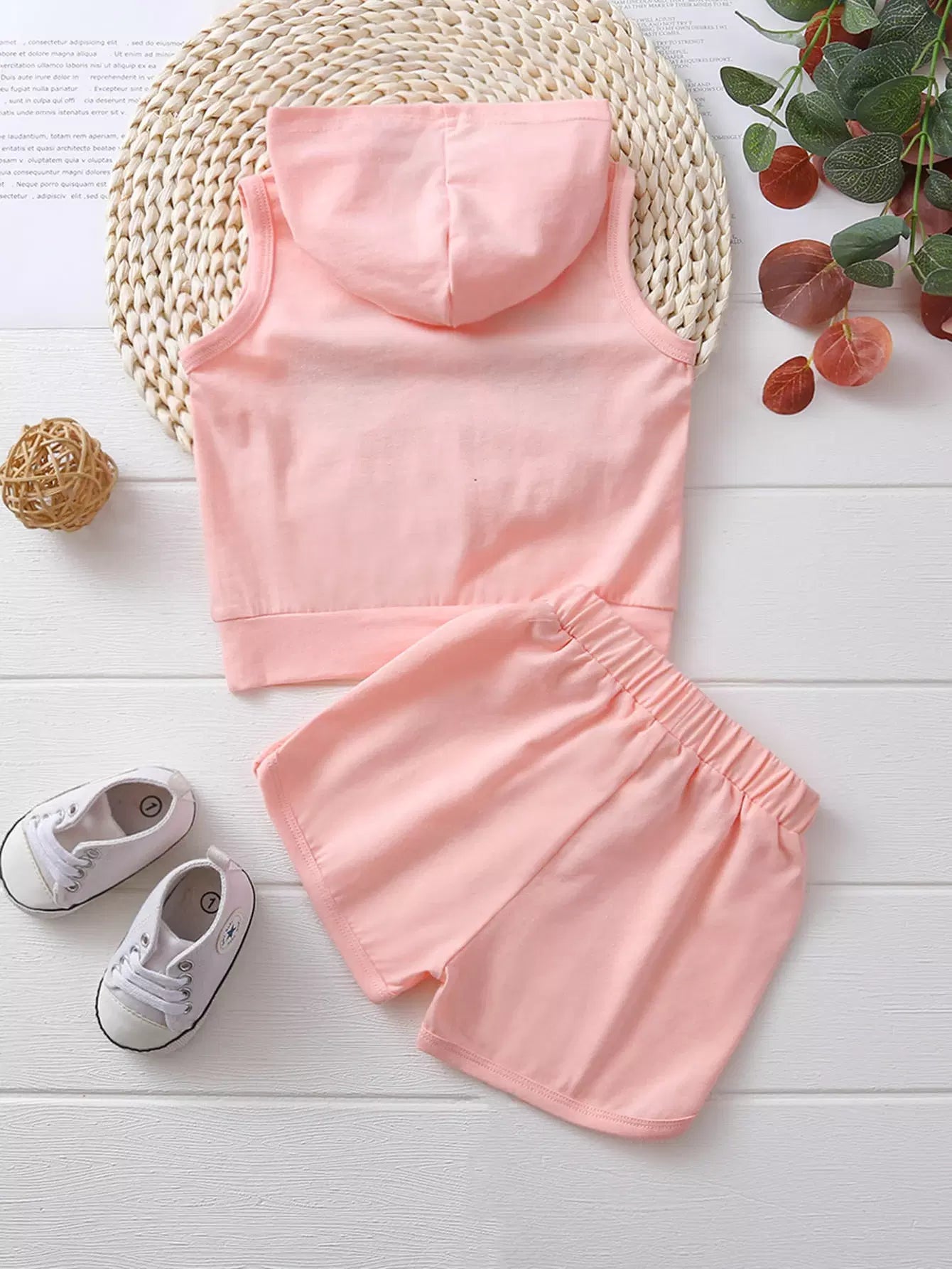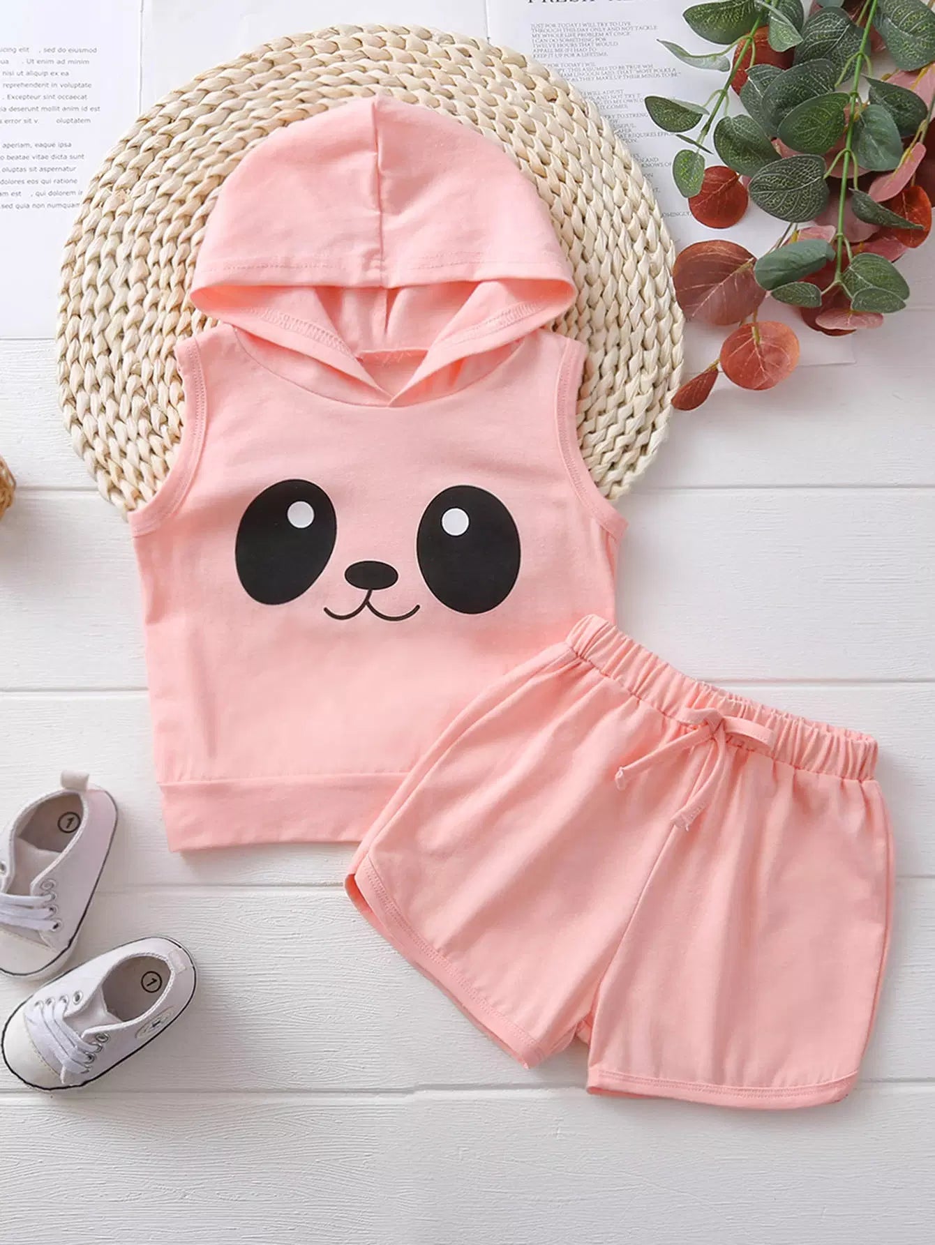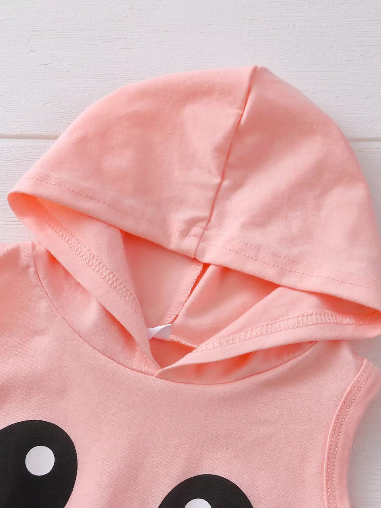 Baby Girl Cartoon Graphic Hooded Tank Top With Shorts