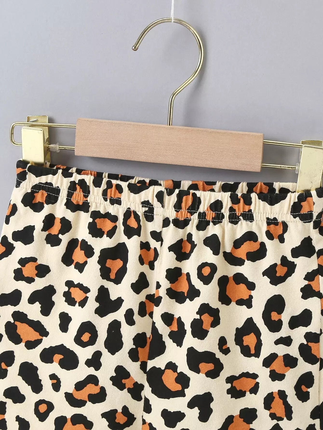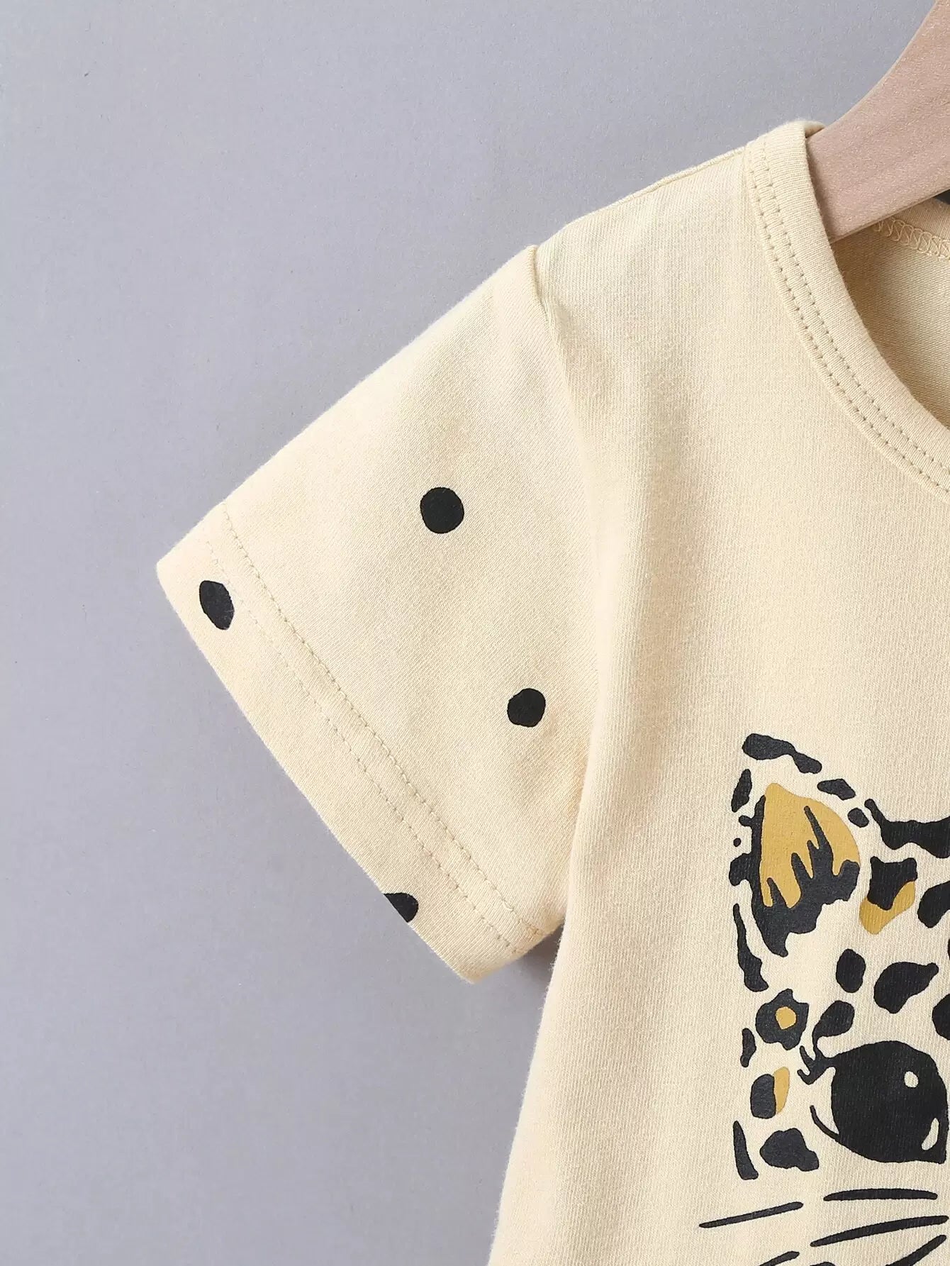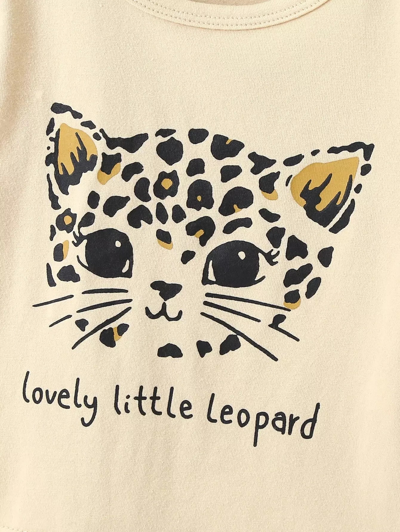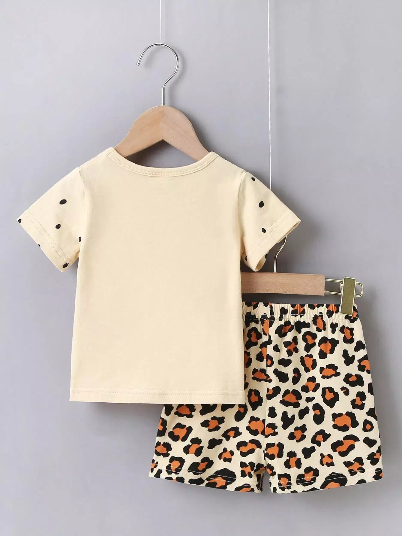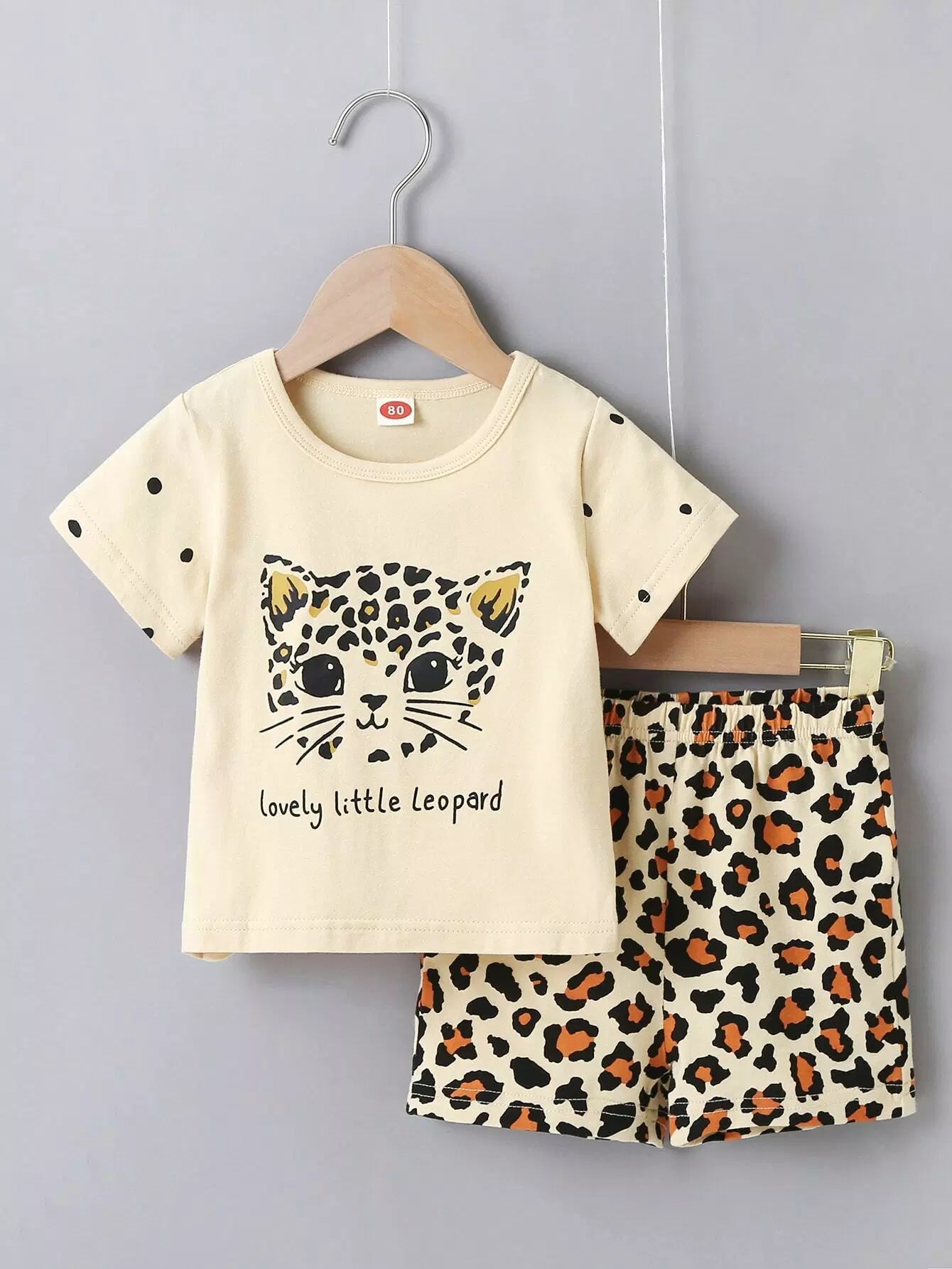 Kids - Baby Girl Cartoon Graphic Tee & Leopard Print Shorts