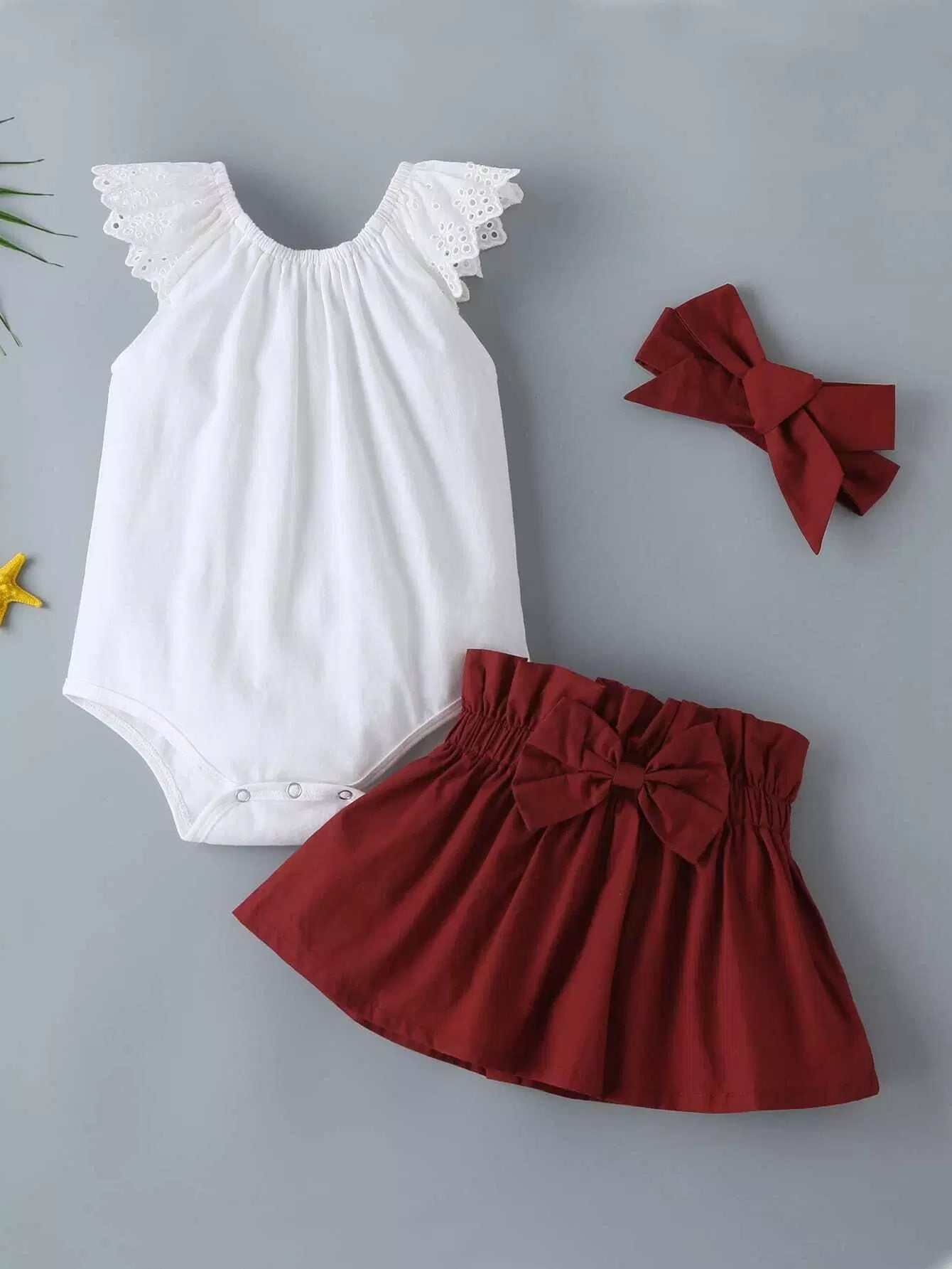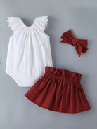 Baby Girl Contrast Schiffy Bodysuit & Paperbag Waist Skirt & Headband