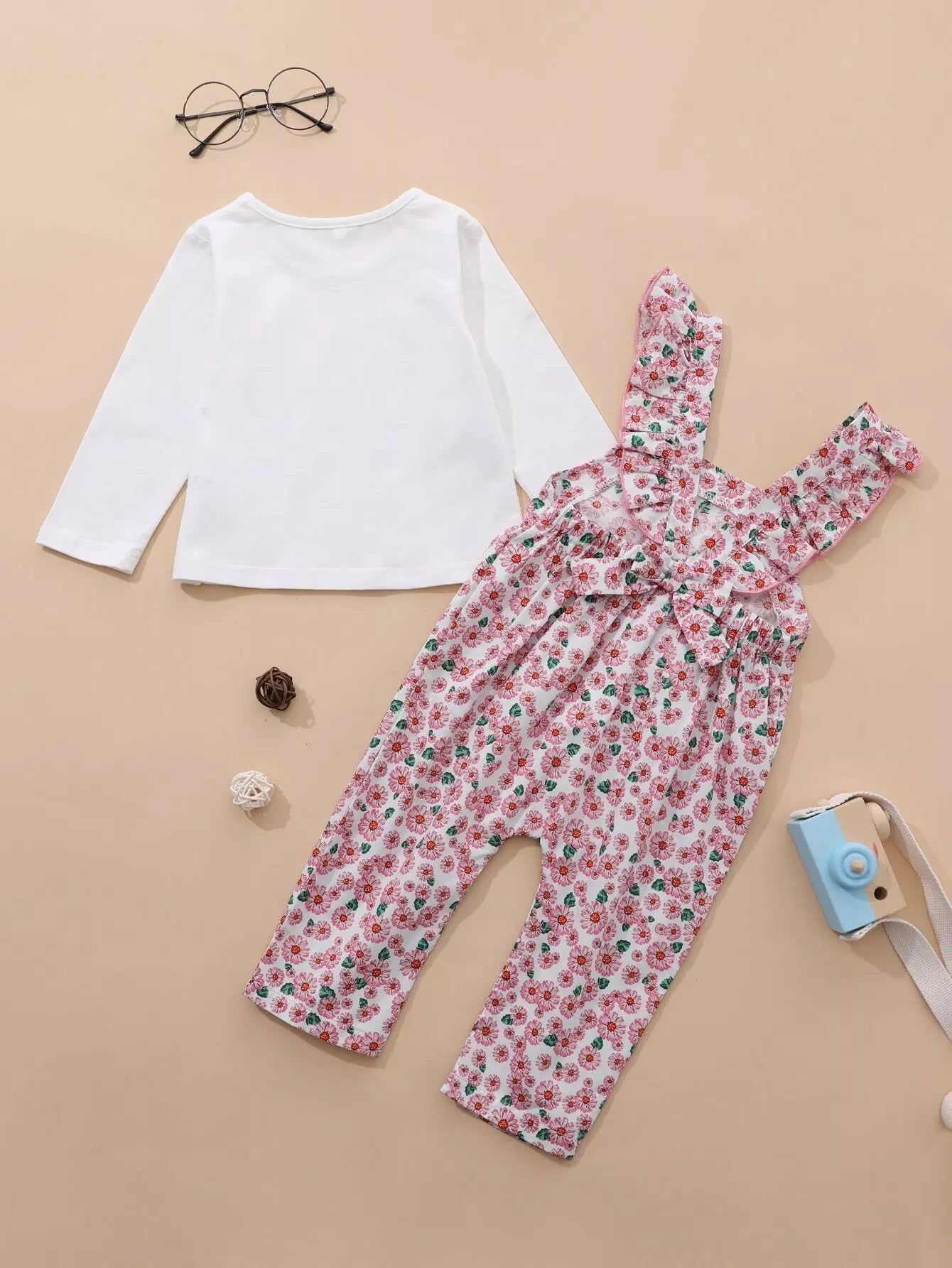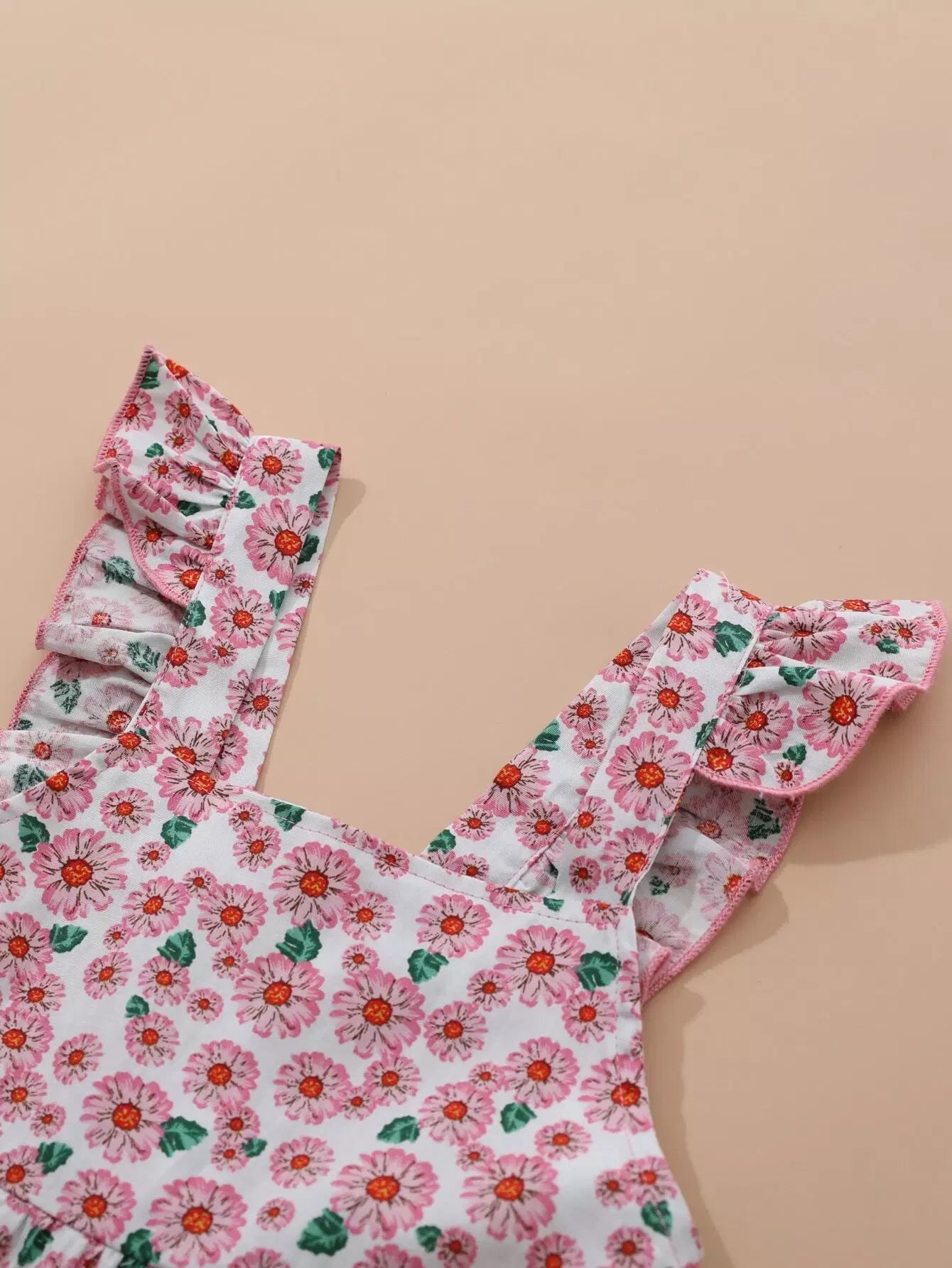 Baby Girl Daisy Floral Ruffle Bow Back Overall With Tee