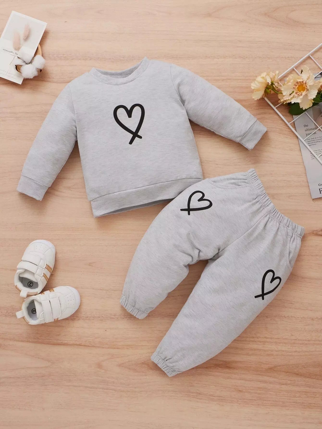 Baby Girl Heart Print Sweatshirt With Joggers