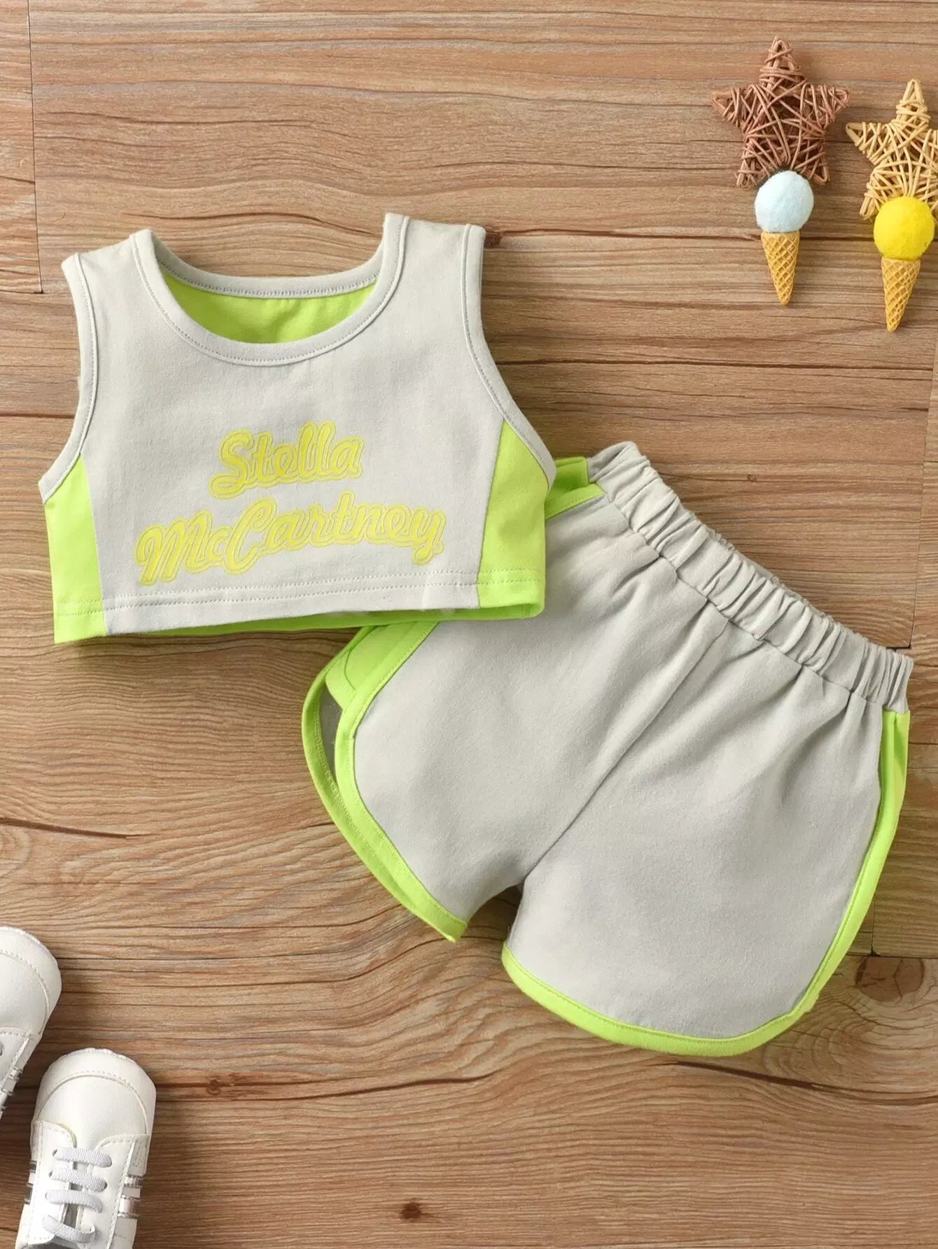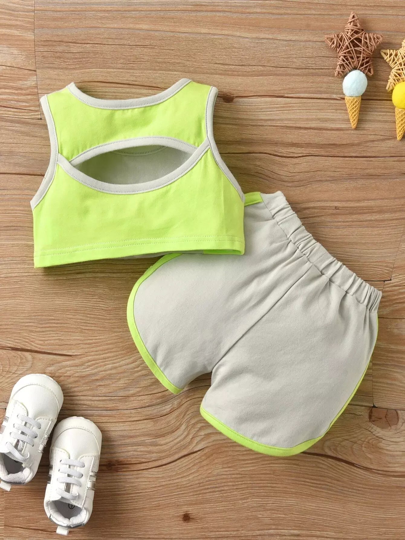 Baby Girl Letter Graphic Peekaboo Back Tank Top With Shorts