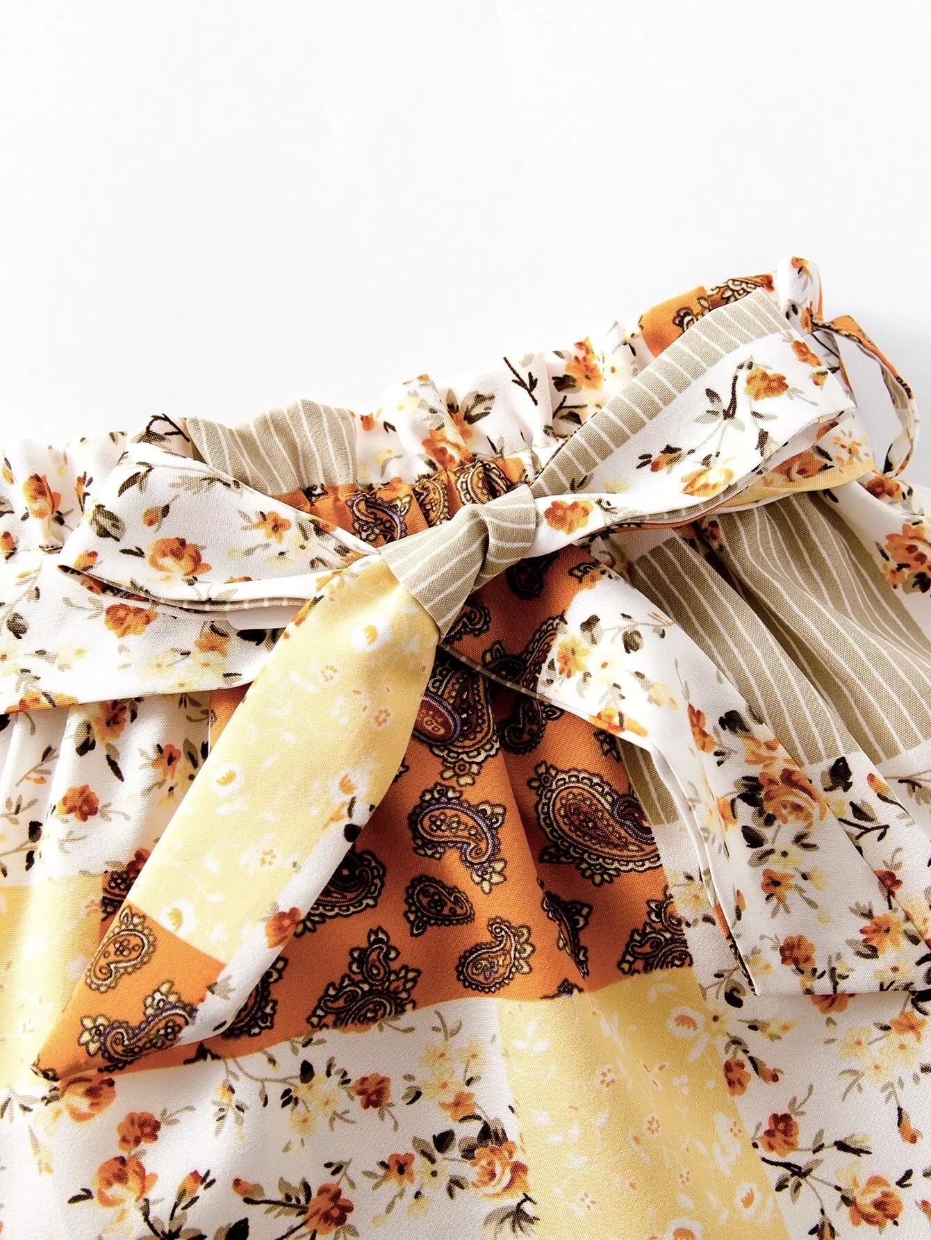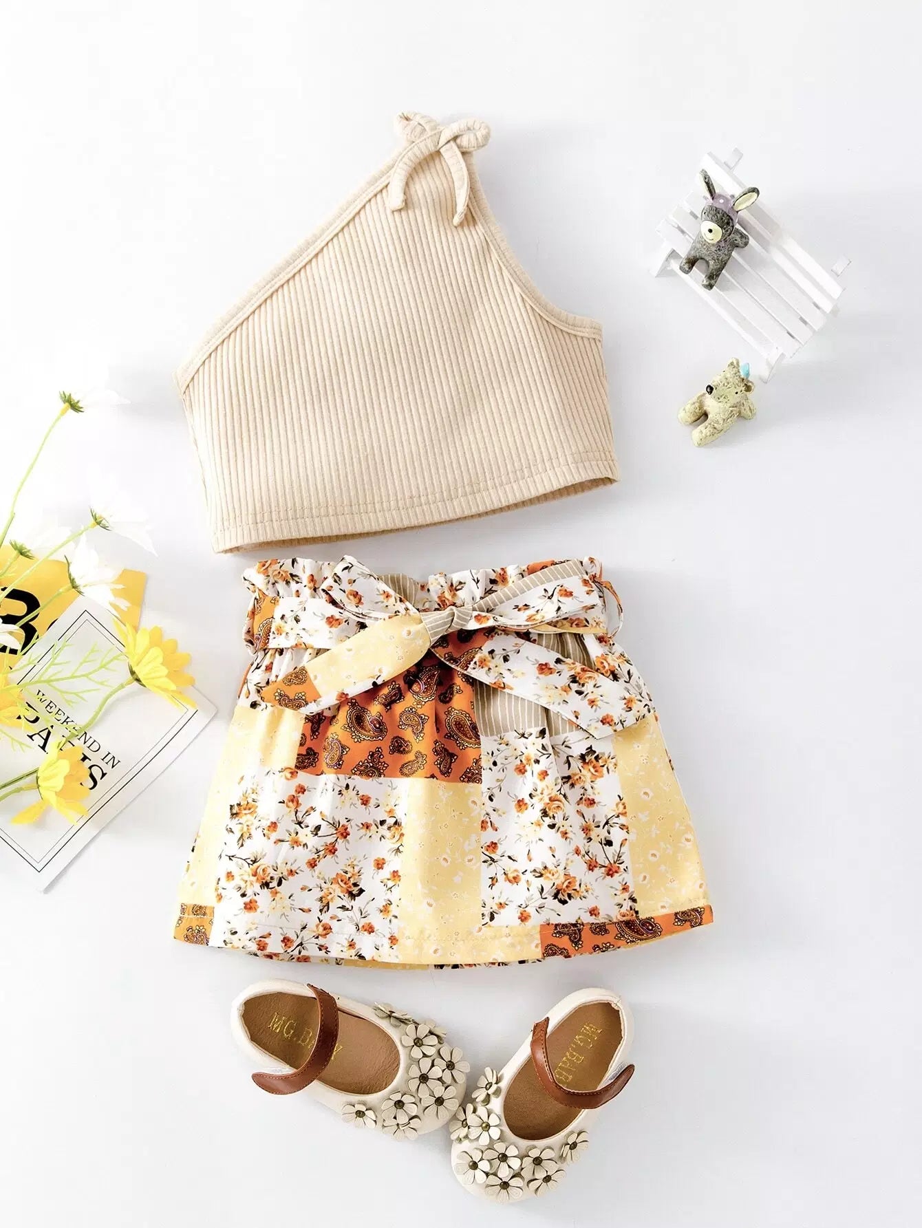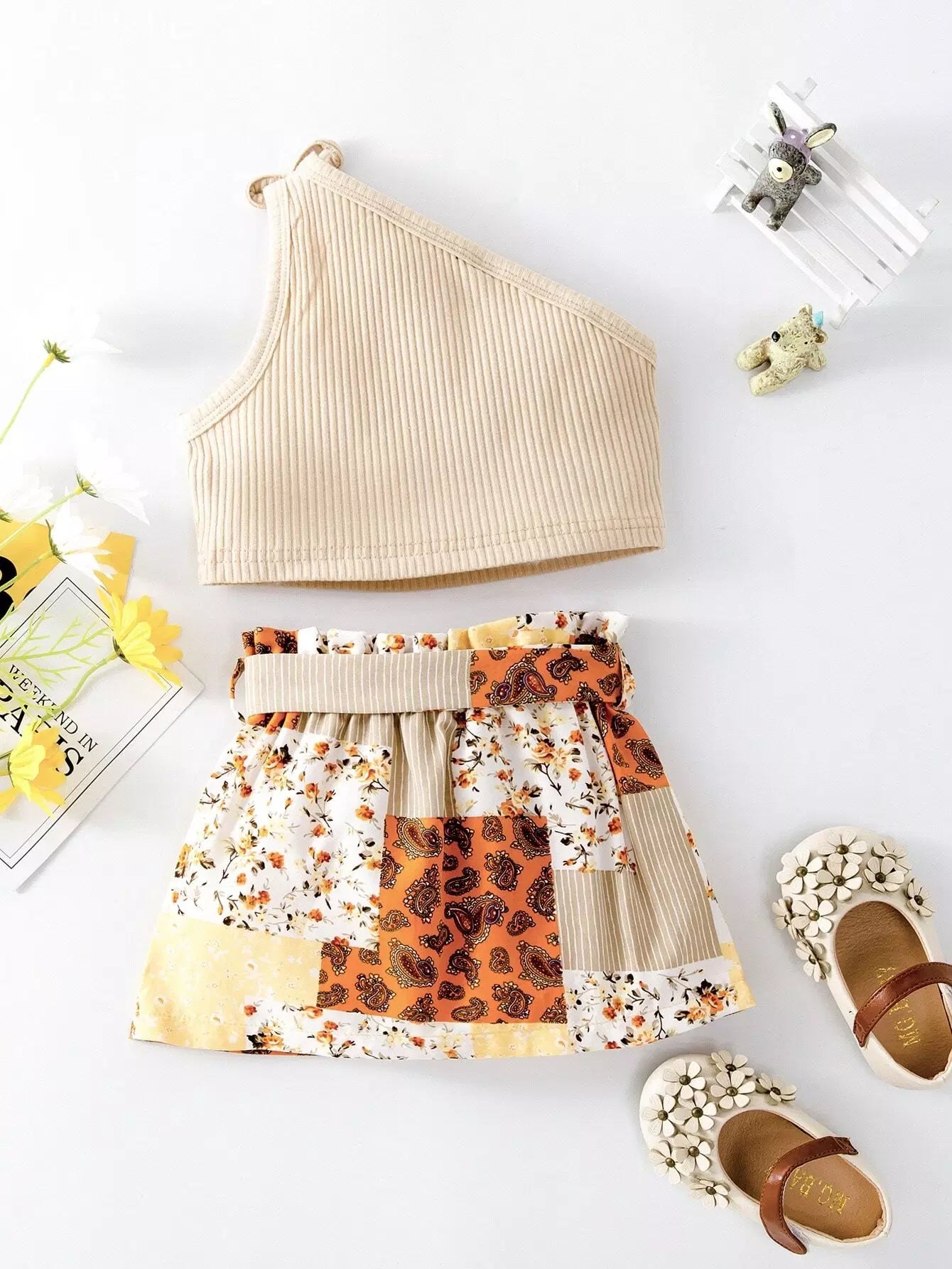 Baby Girl One Shoulder Top & Paisley Skirt Without Belt
