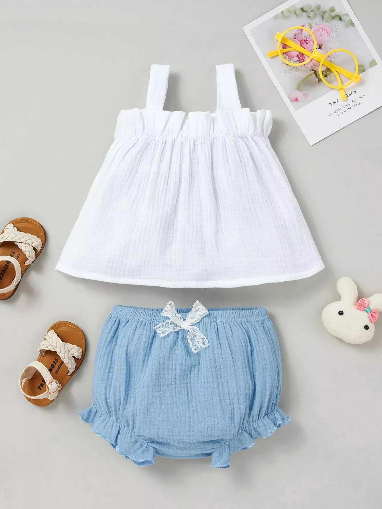 Baby Girl Ruffle Cami Top With Bow Shorts