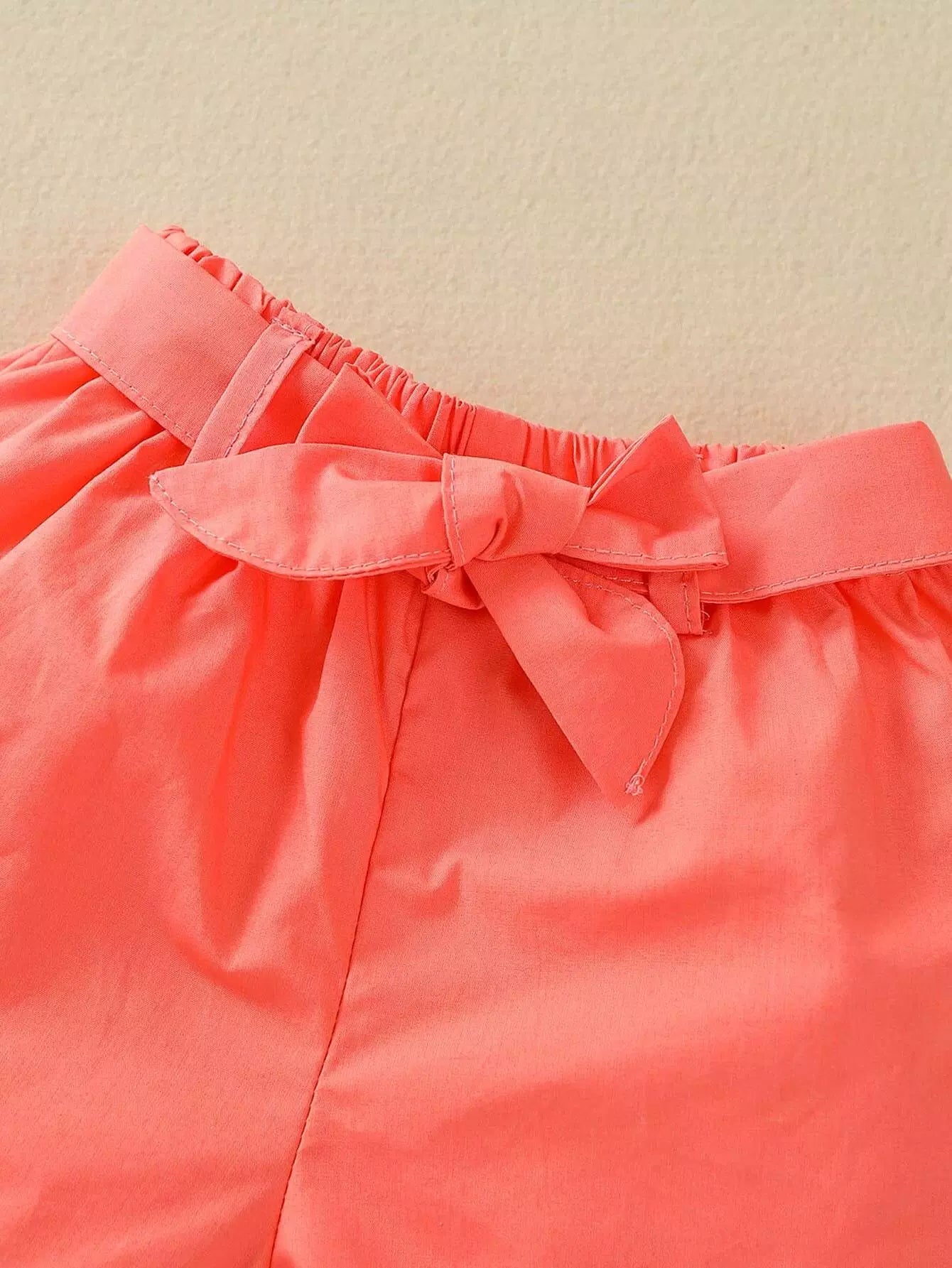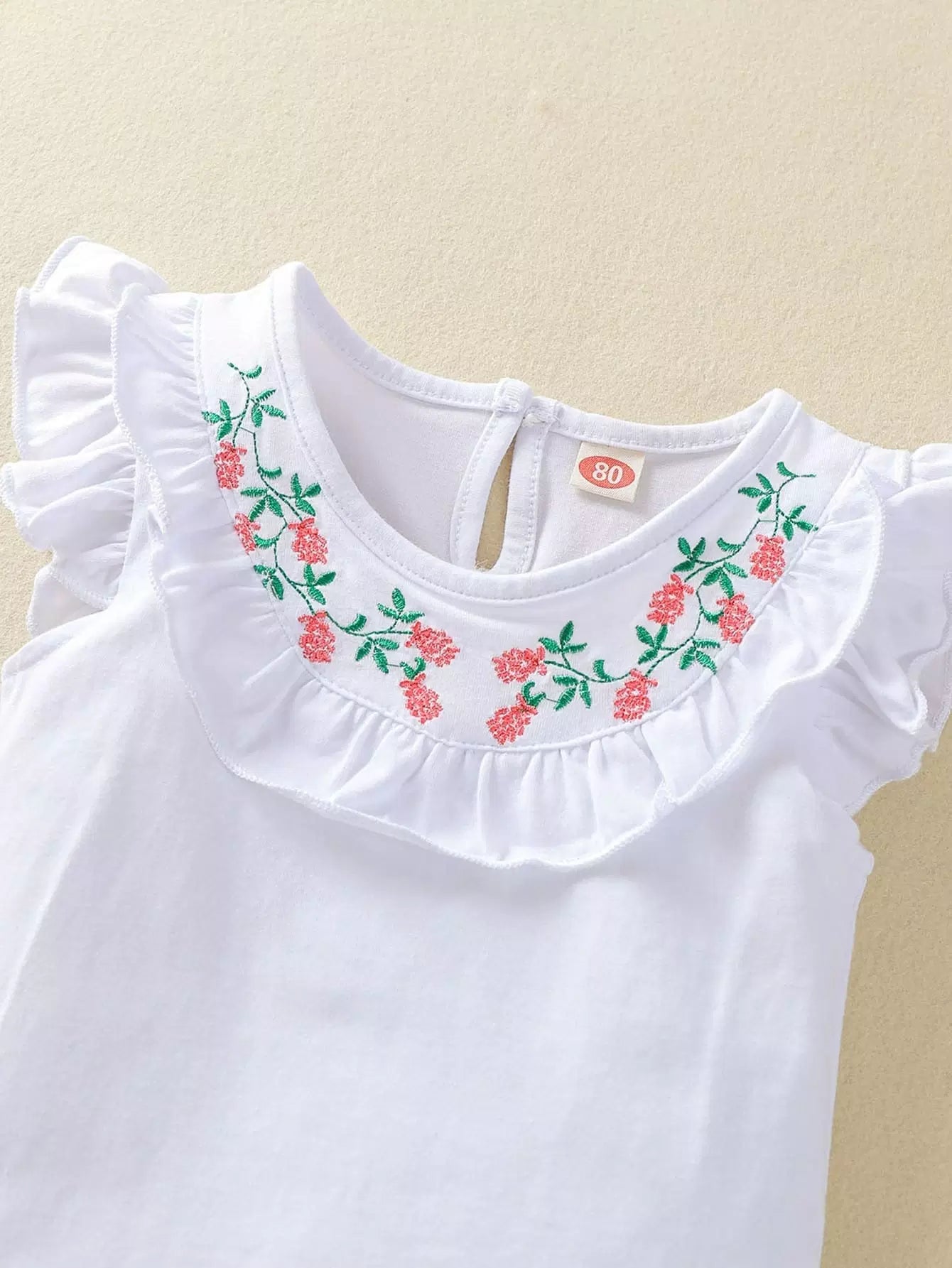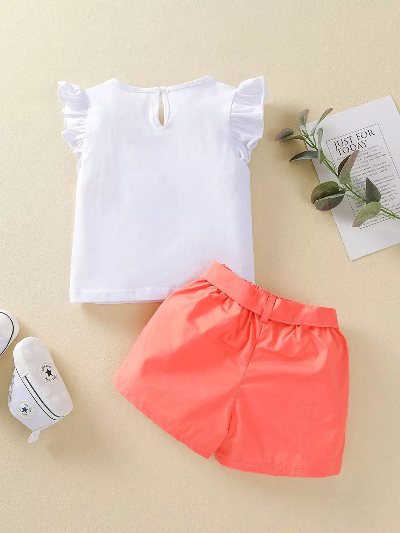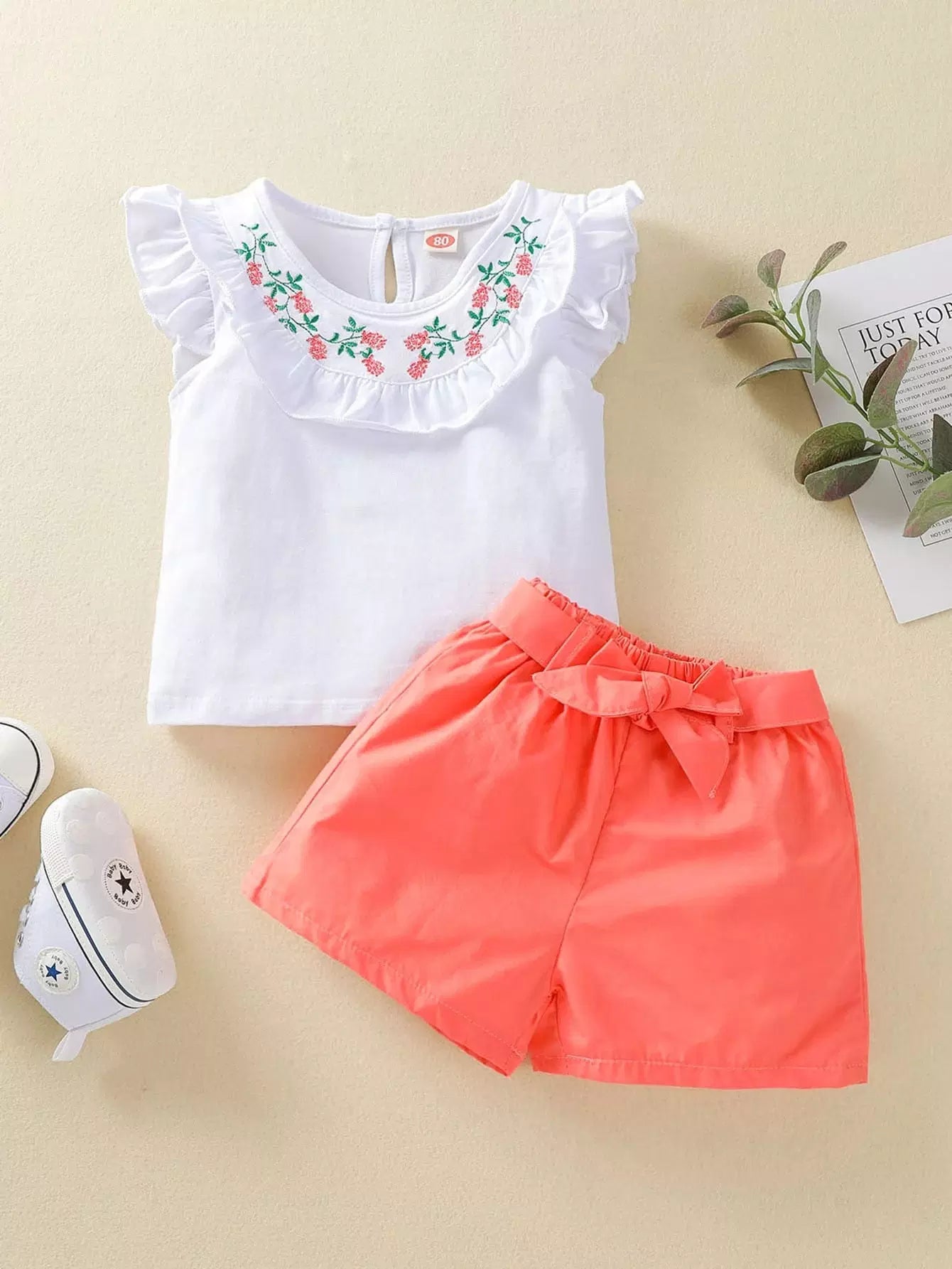 Baby Girl Ruffle Trim Embroidery Top & Shorts Without Belt