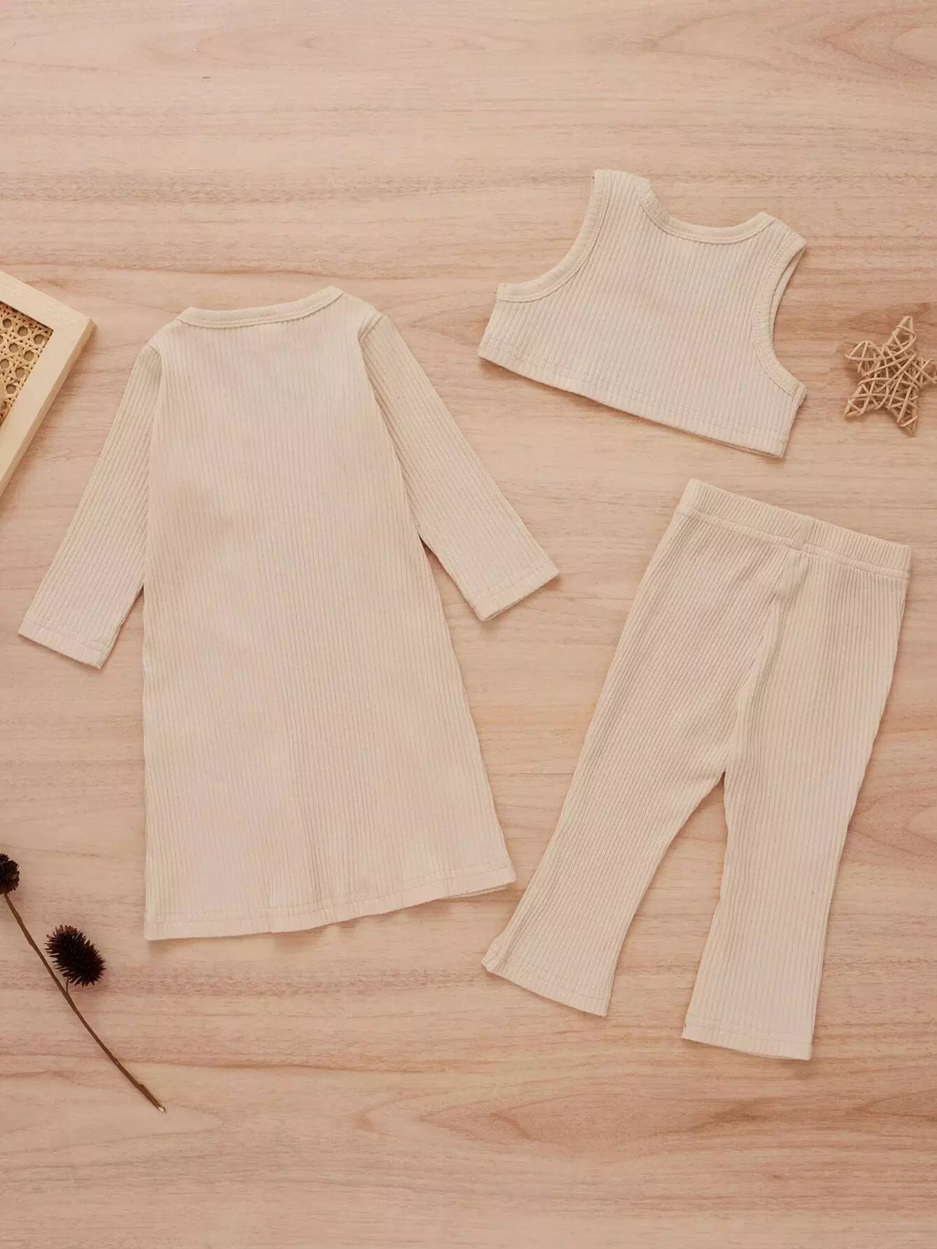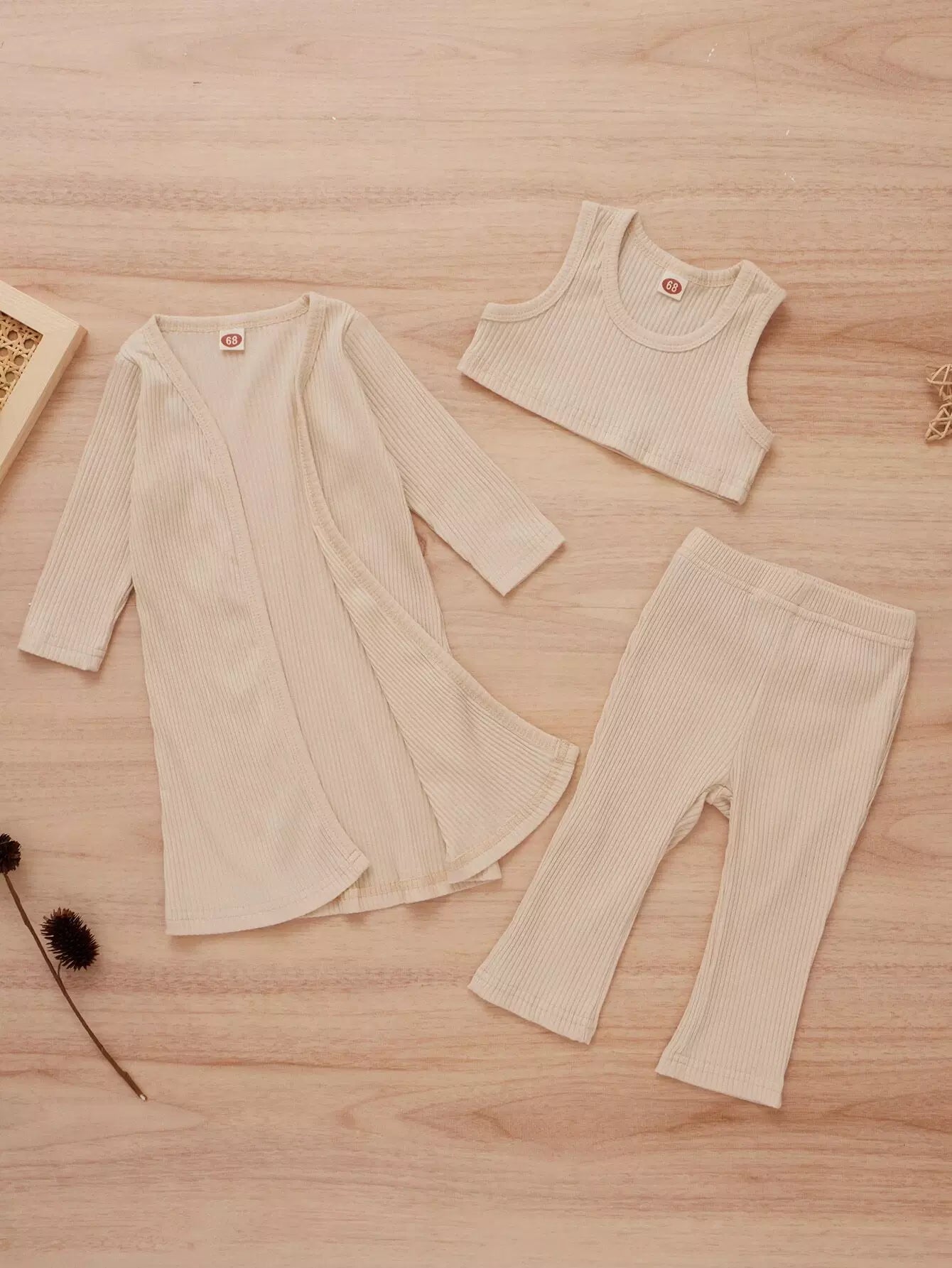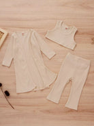 Baby Girl Solid Robe & Crop Tank Top & Pants Set