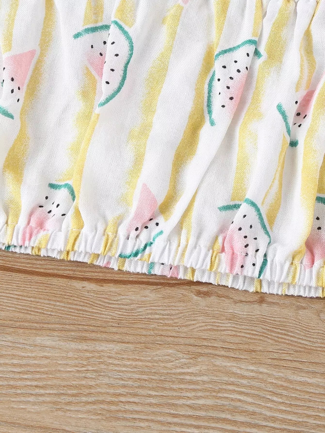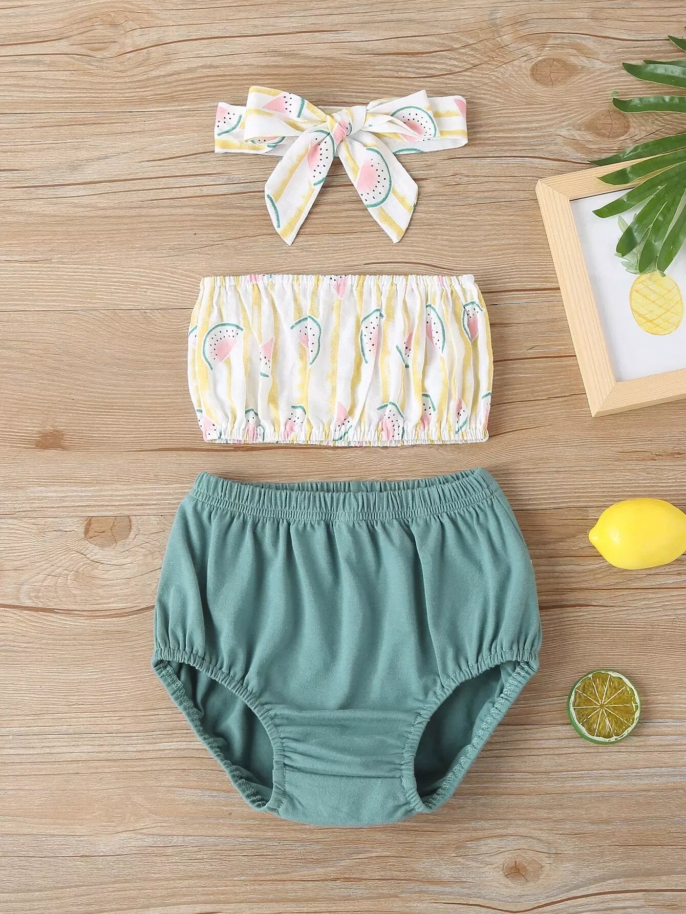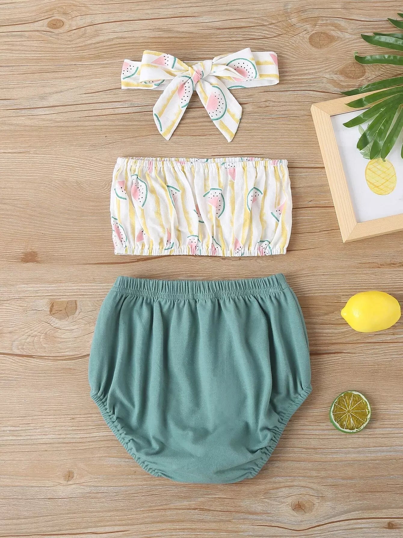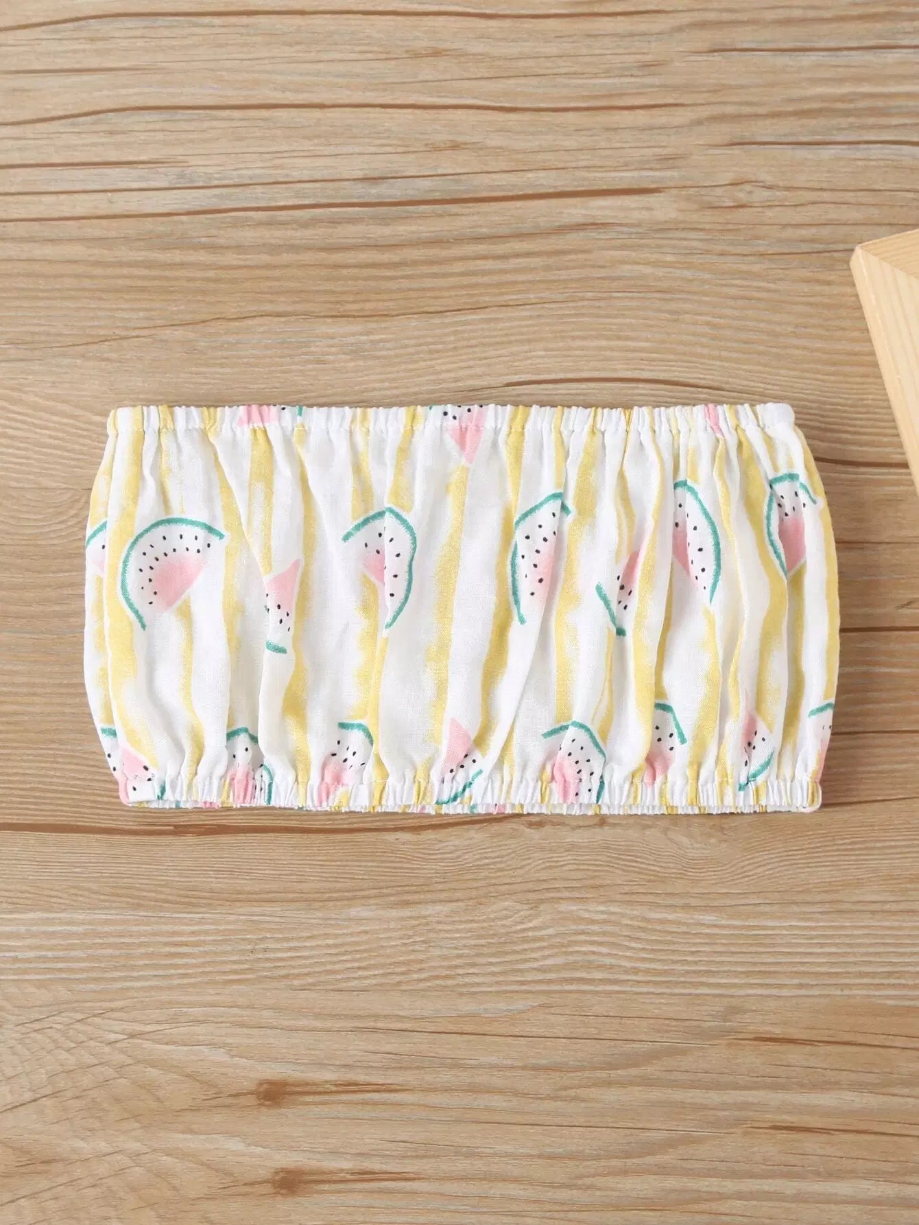 Baby Girl Watermelon Print Tube Top With Shorts With Headband