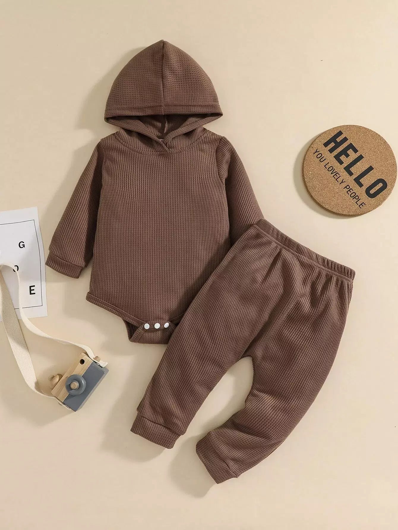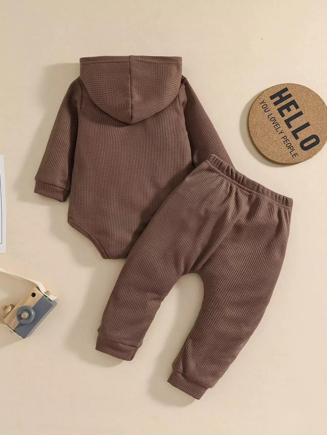 Baby Hooded Waffle Knit Bodysuit & Sweatpants