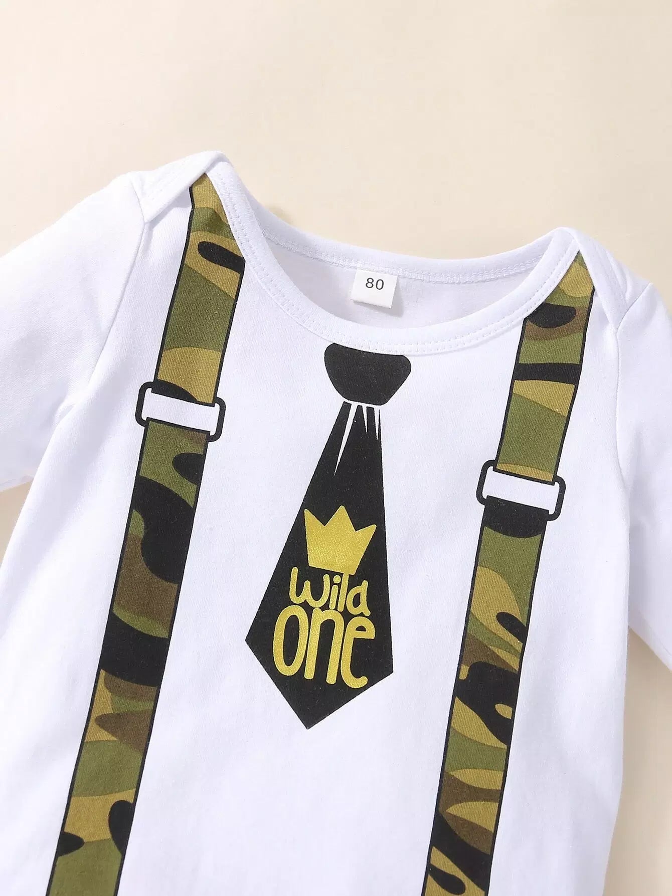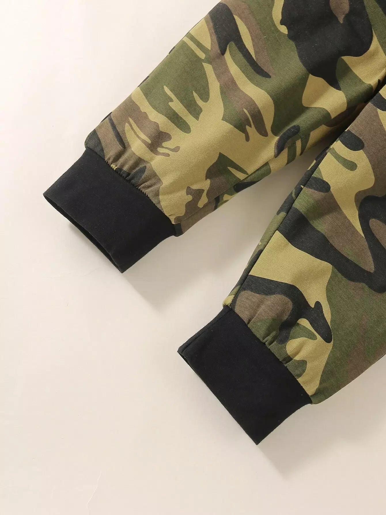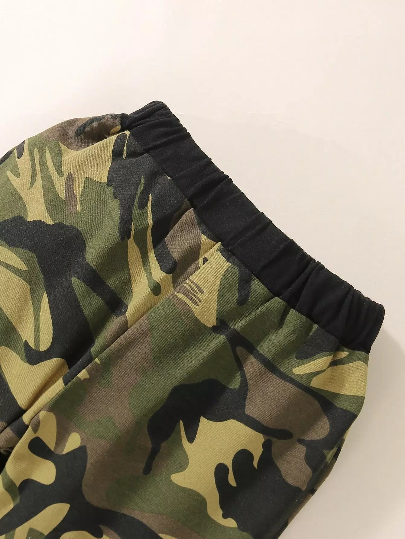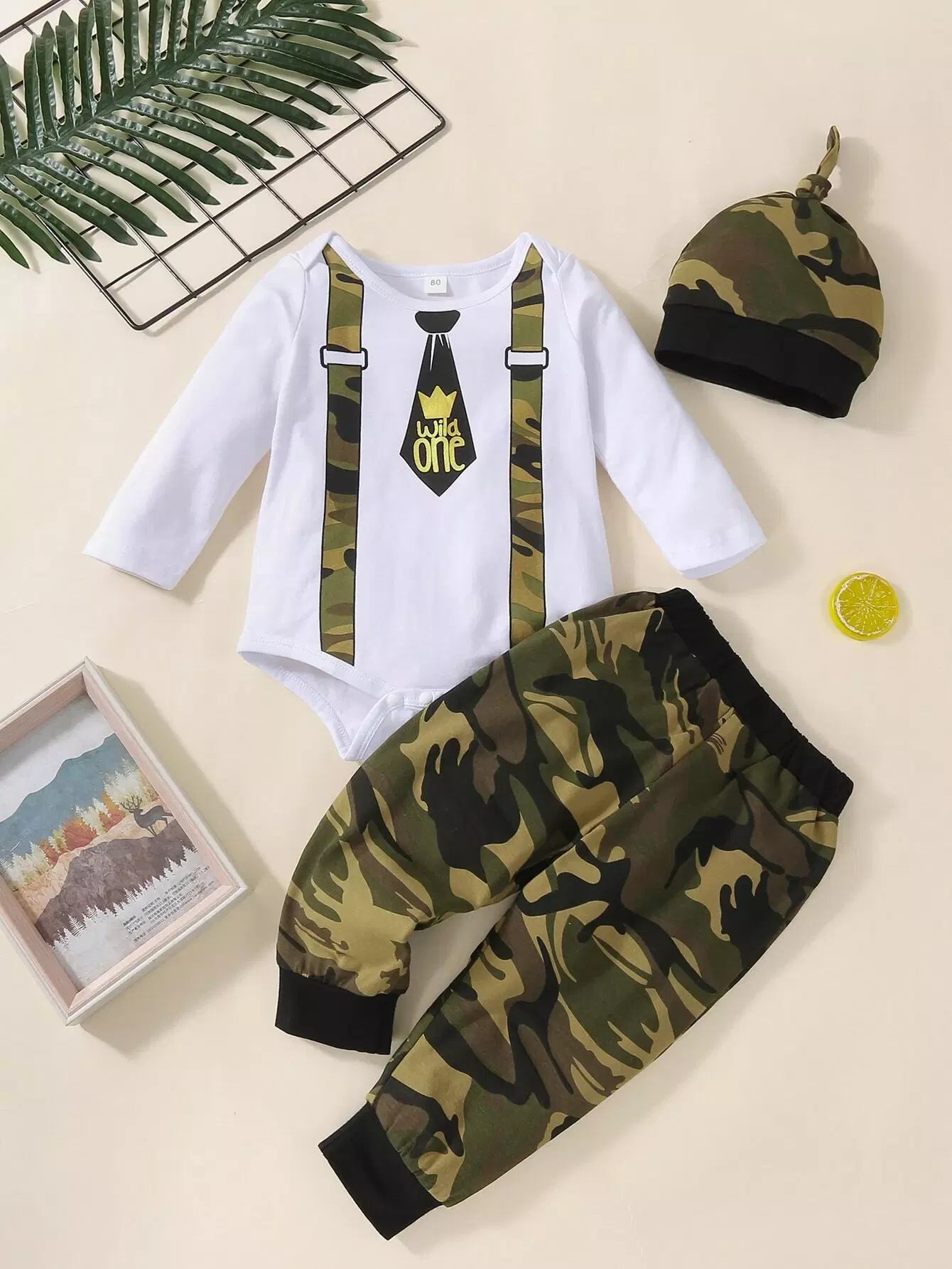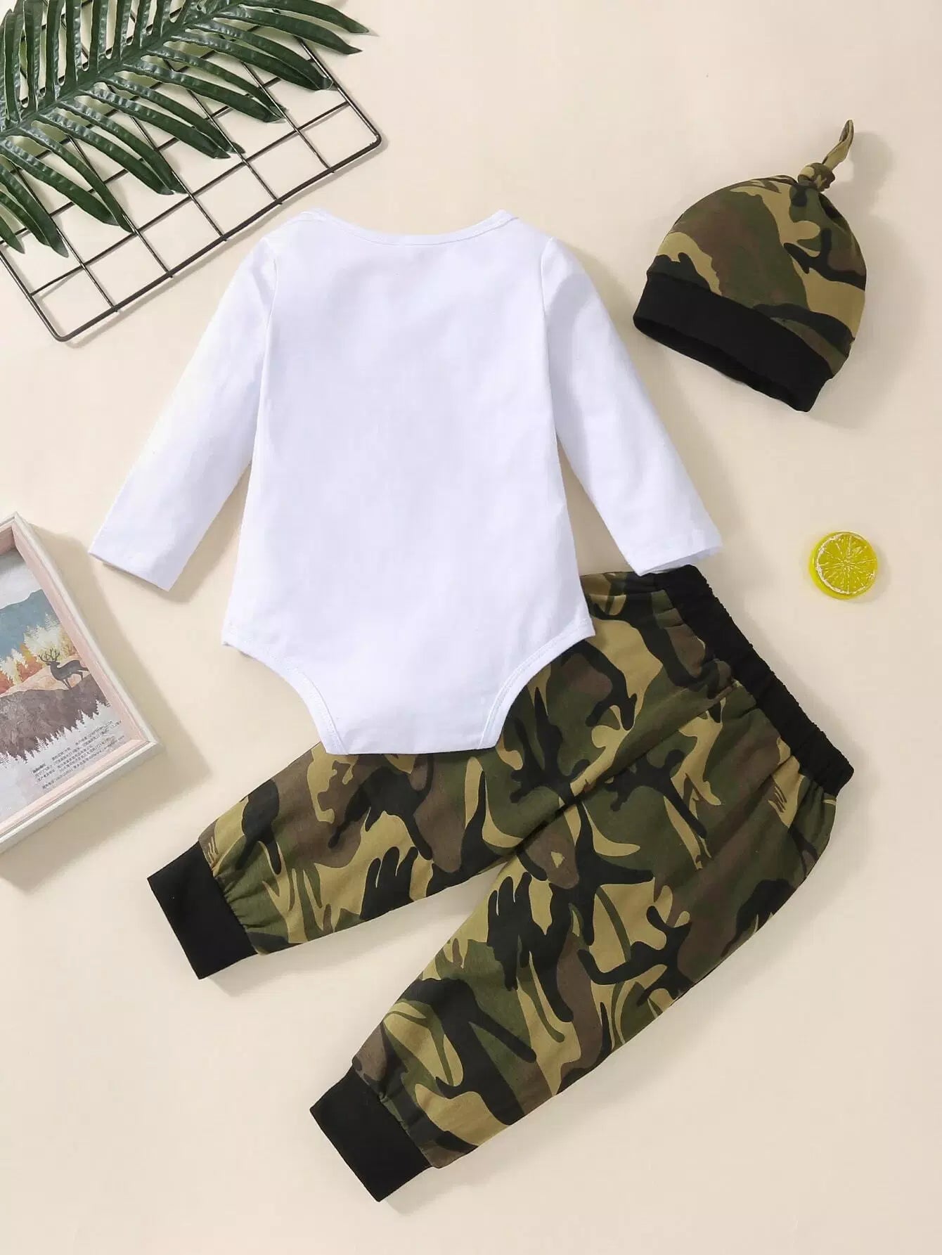 Baby Letter Graphic Bodysuit & Camo Pants & Hat