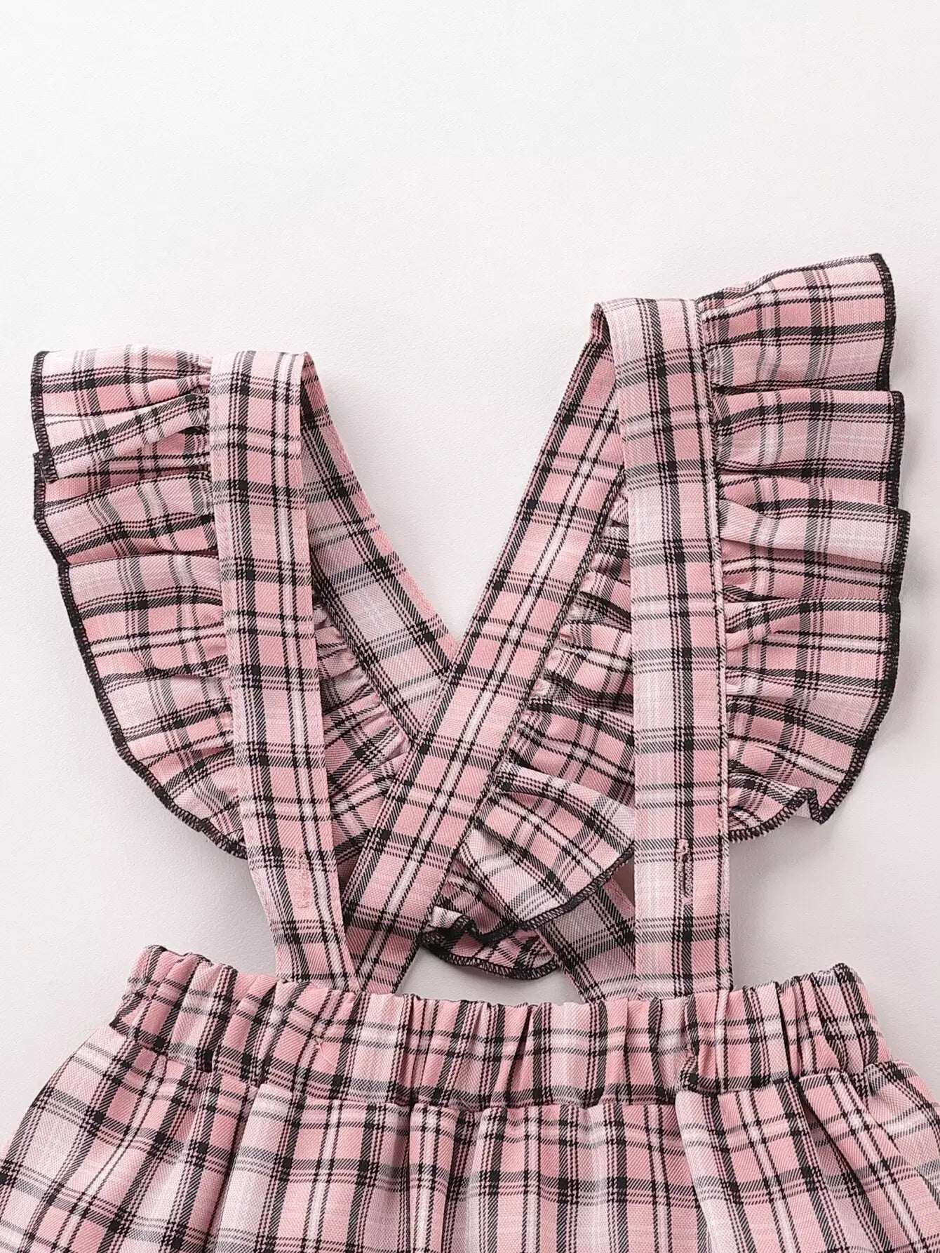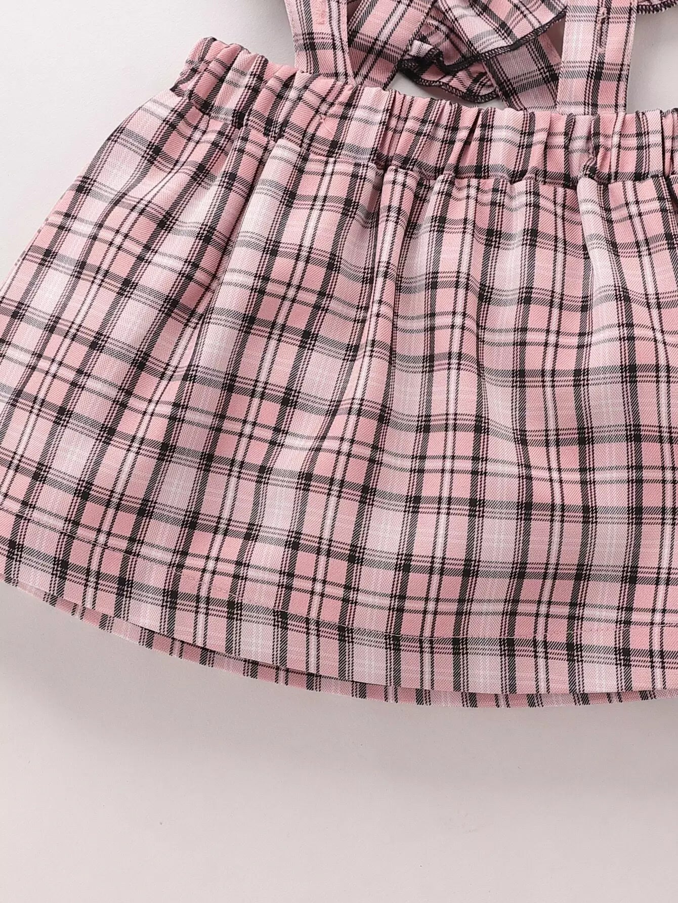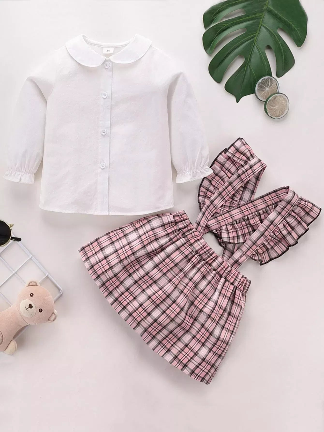 Baby Peter Pan Collar Blouse With Plaid Ruffle Pinafore Skirt