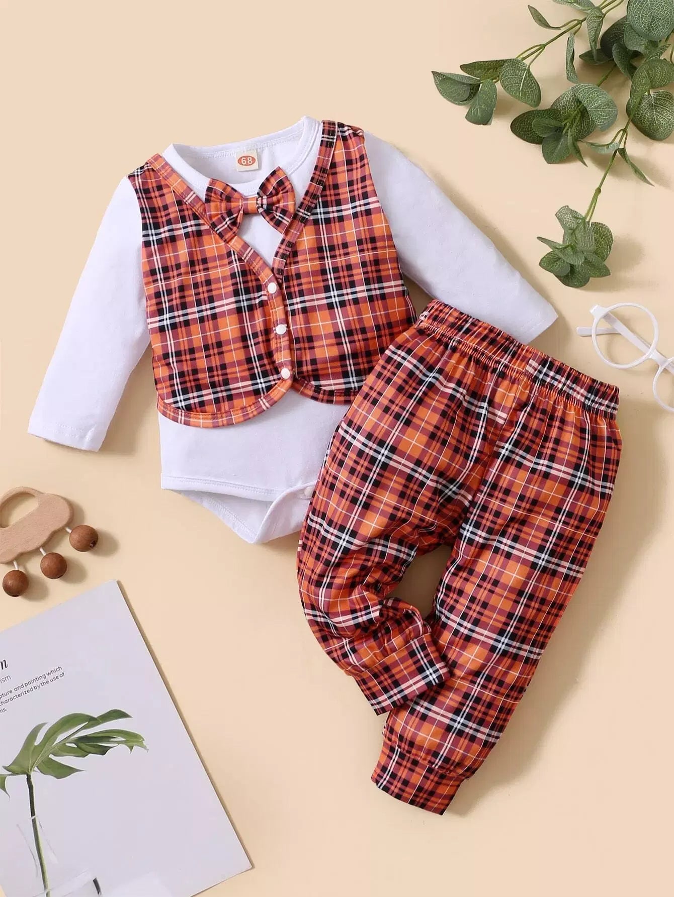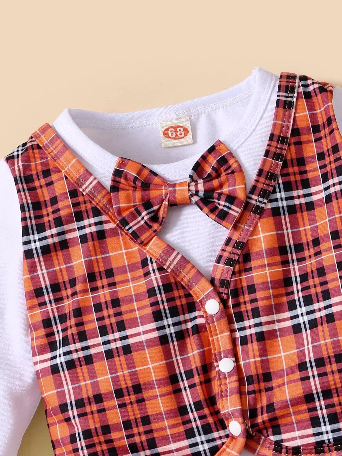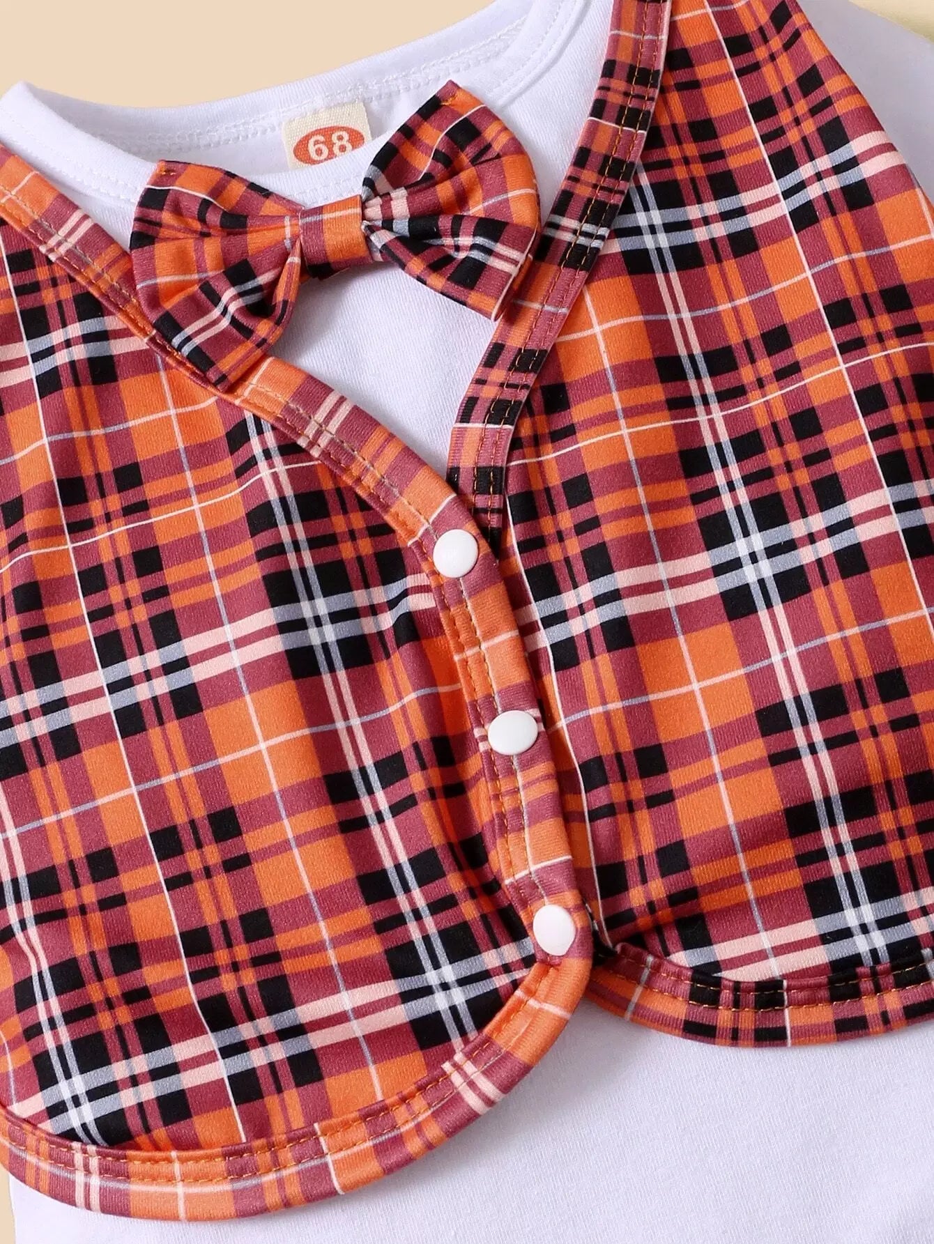 Baby Plaid Bow Front 2 In 1 Bodysuit & Pants