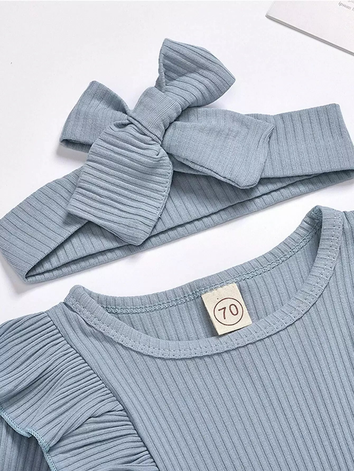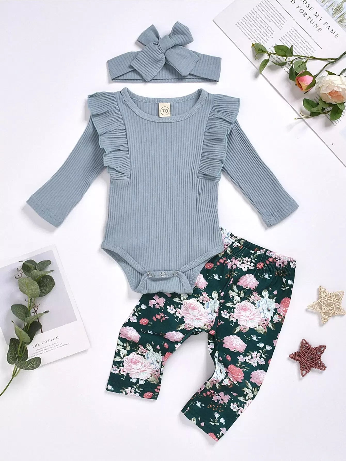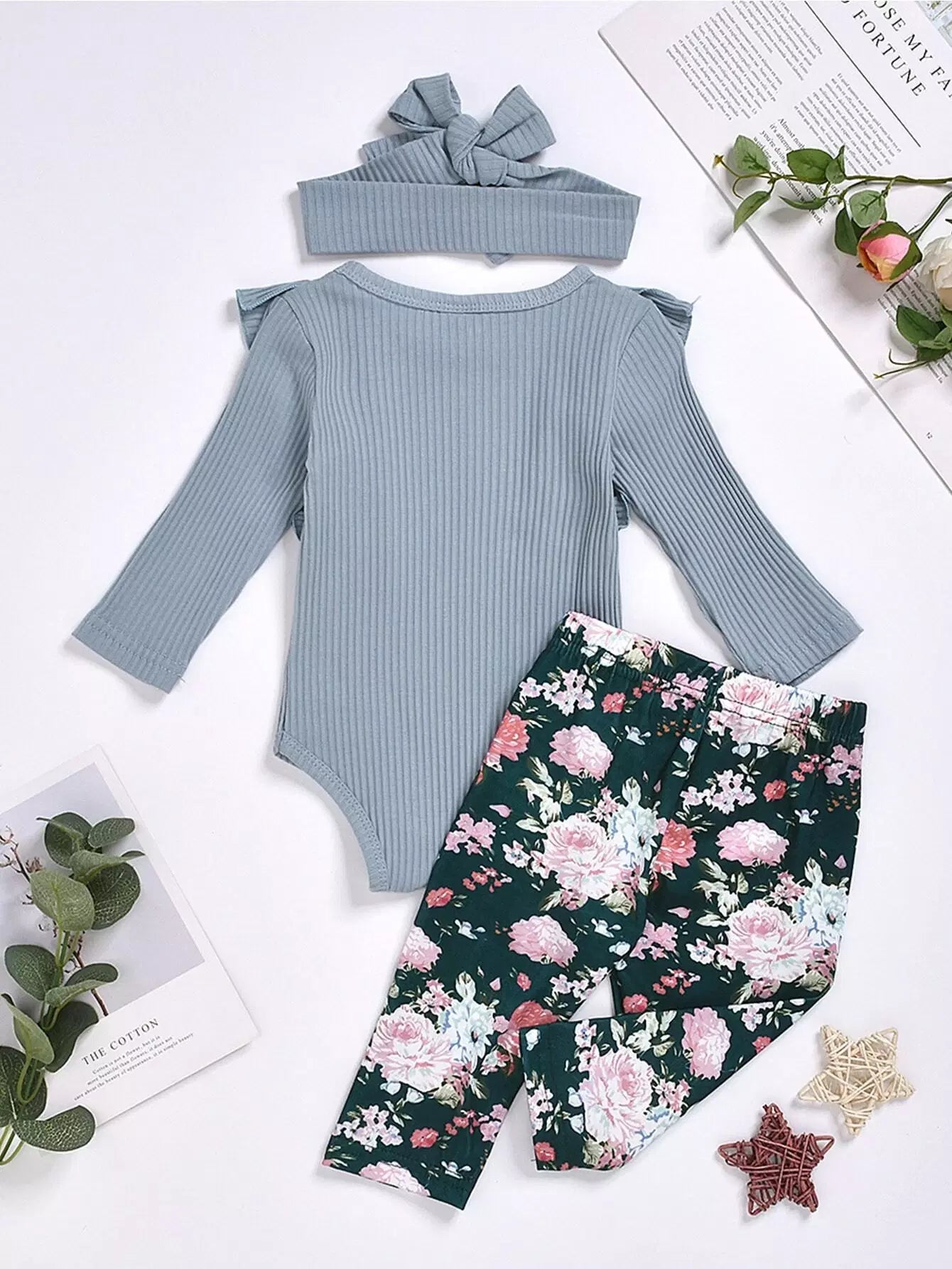 Baby Ruffle Trim 1 Bodysuit & Floral 1 Pants & 1 Headband