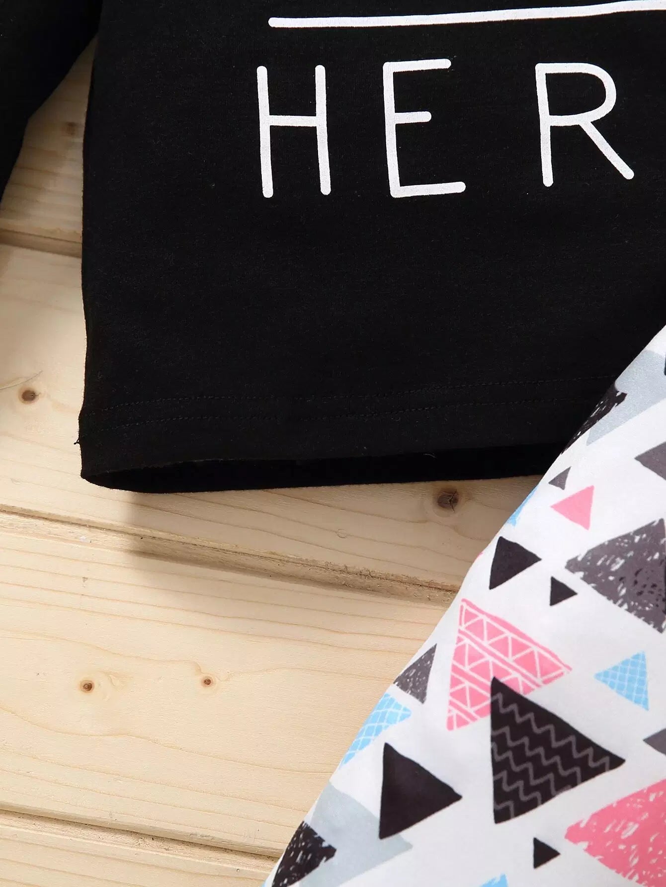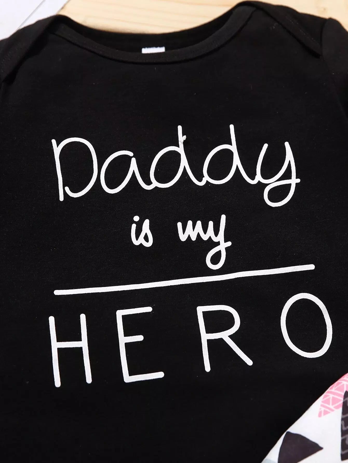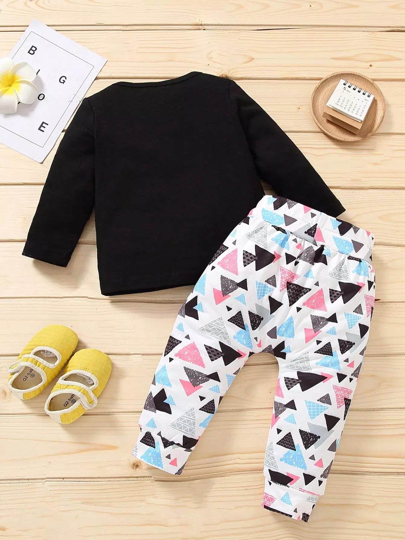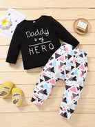 Baby Slogan Graphic Tee With Geo Print Pants