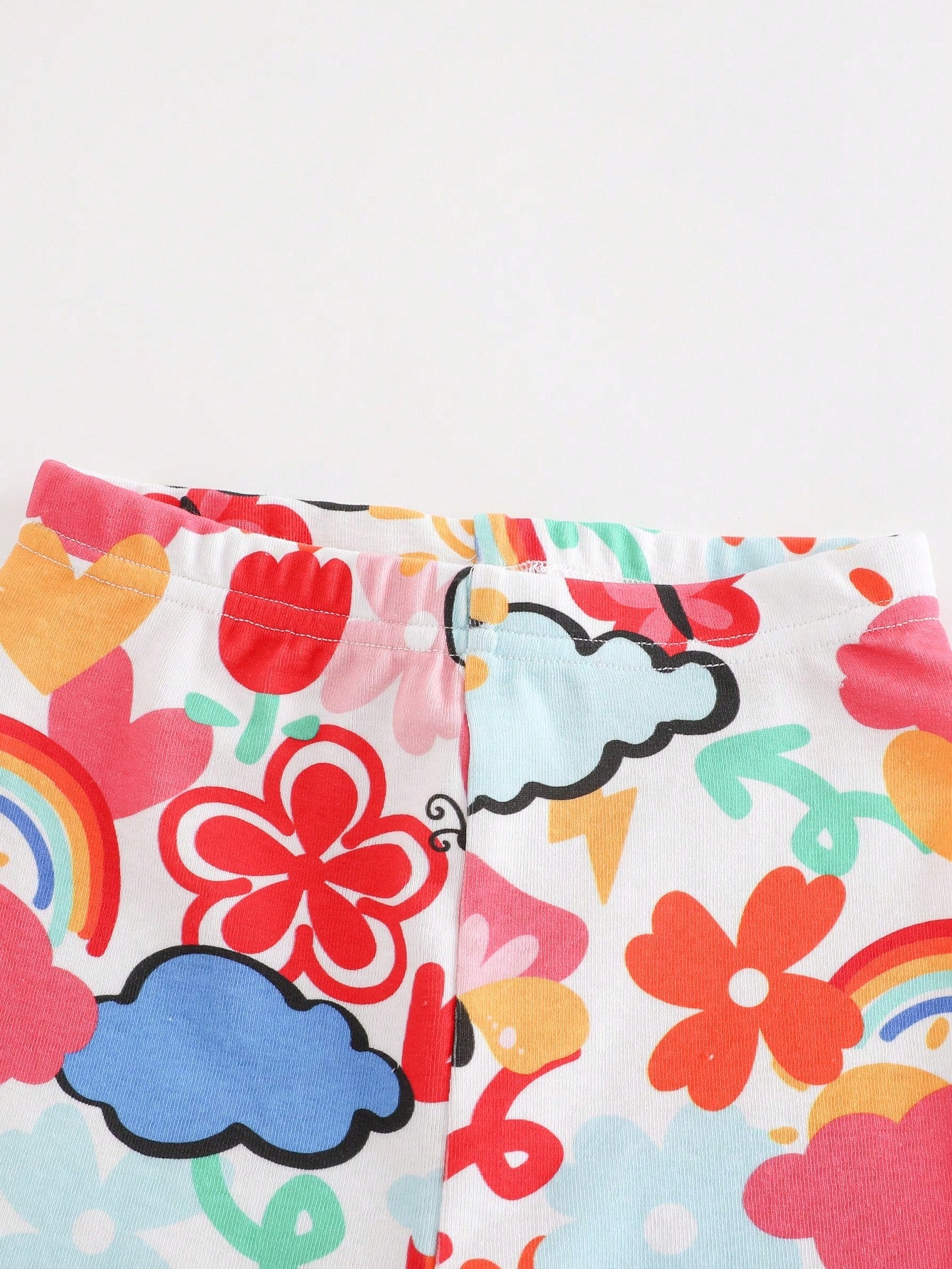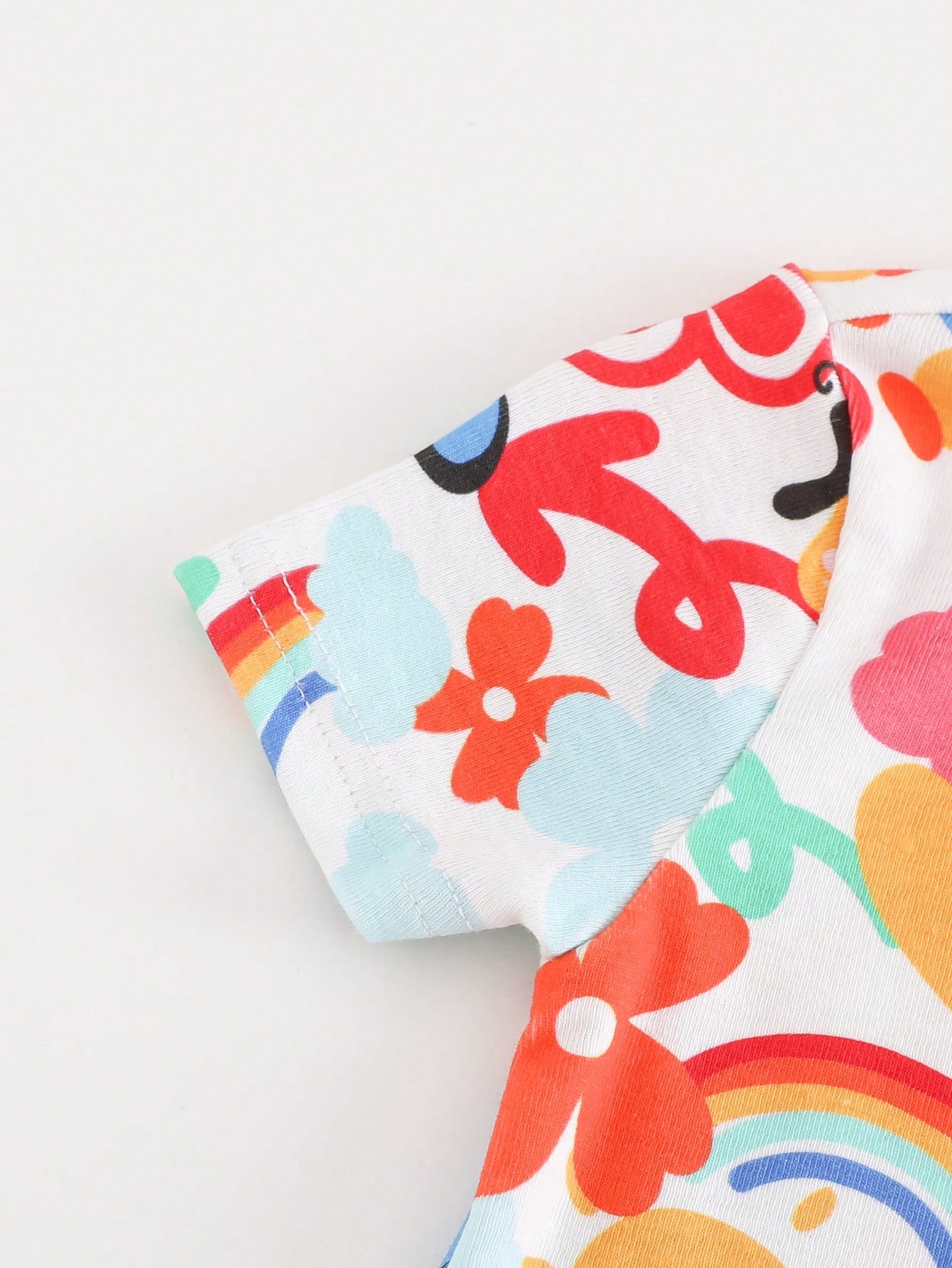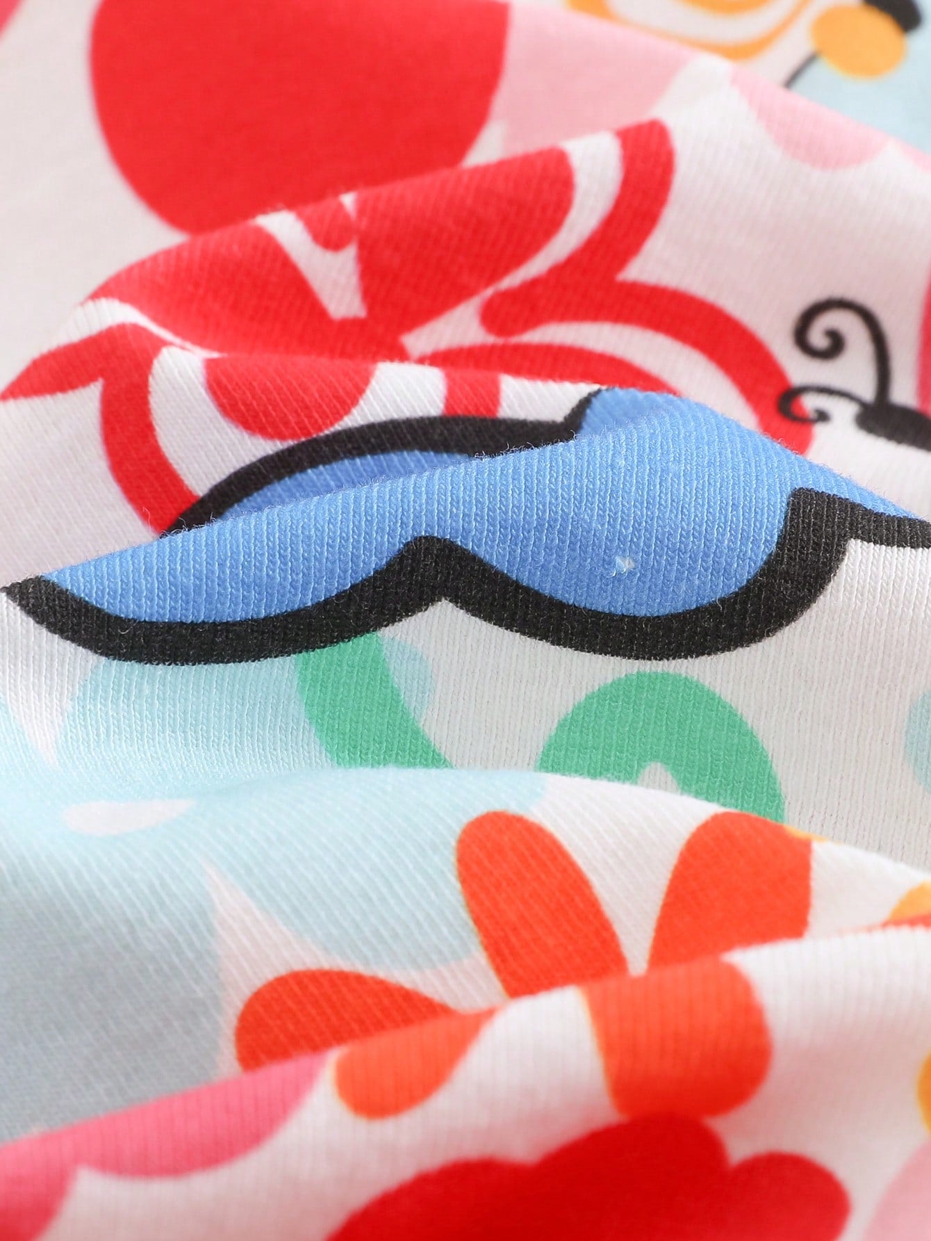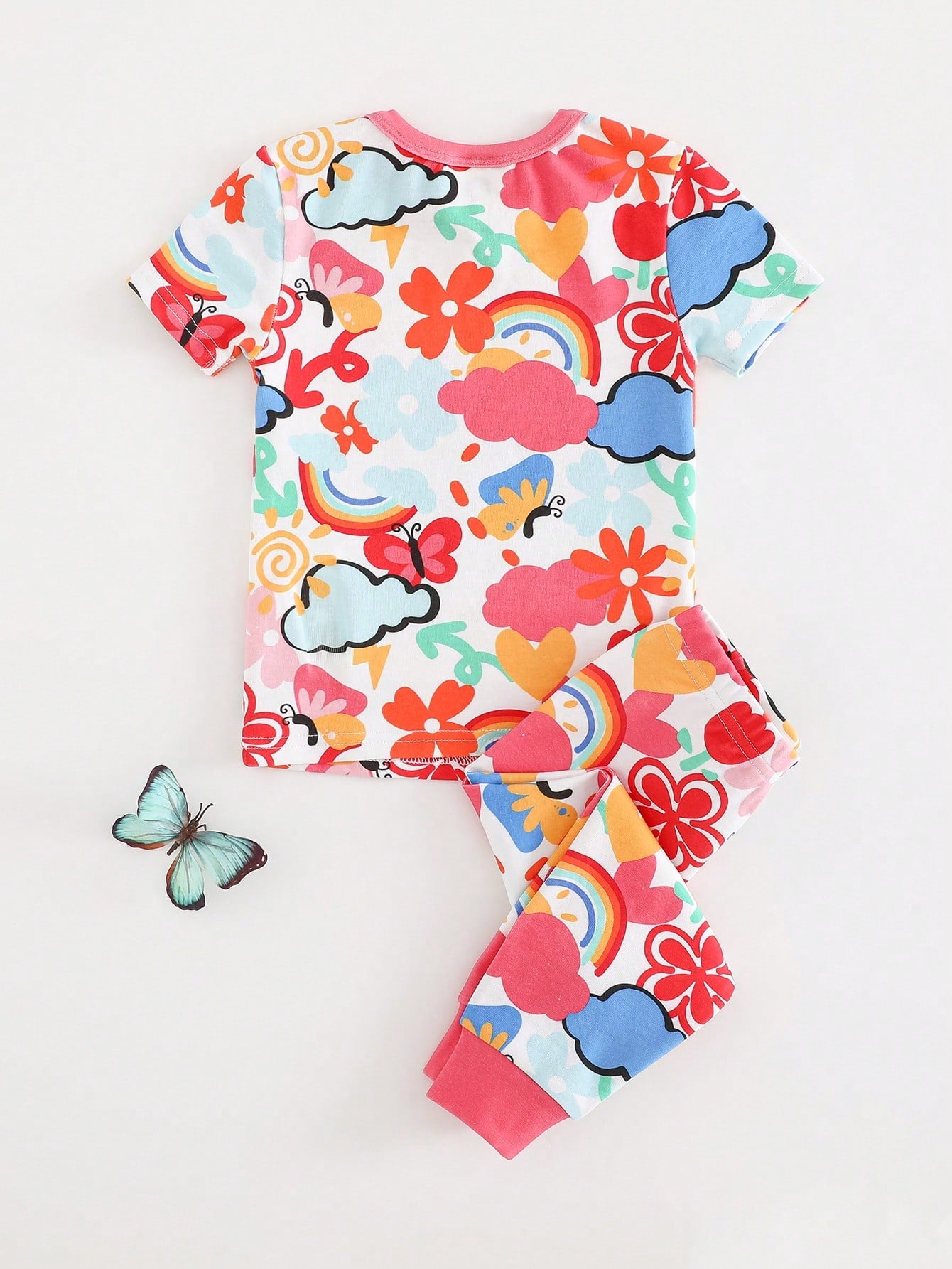 kids Cozy Pixies Toddler Girls' Cartoon Animal Print Knit Soft Round Neck Short Sleeve Top & Elastic Waist Pants 2Pcs Snug Fit Pajama Set
