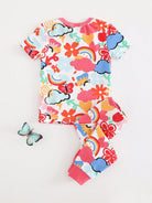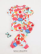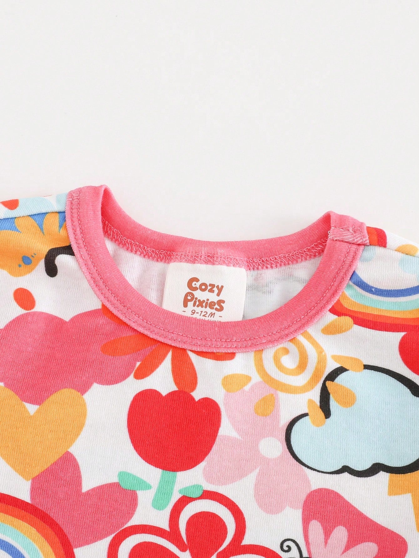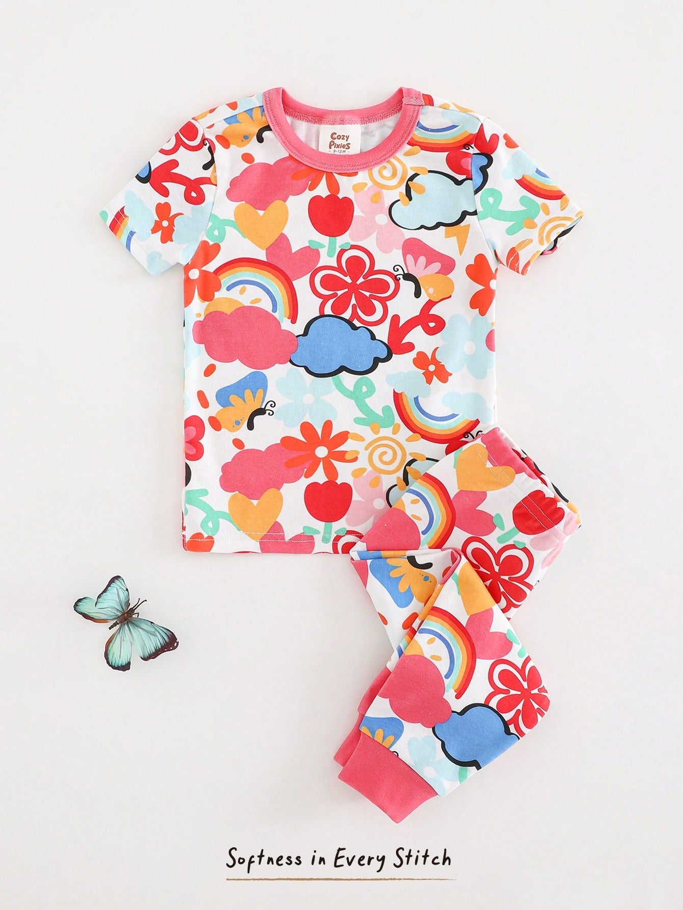 Cozy Pixies Toddler Girls' Cartoon Animal Print Knit Soft Round Neck Short Sleeve Top & Elastic Waist Pants 2Pcs Snug Fit Pajama Set