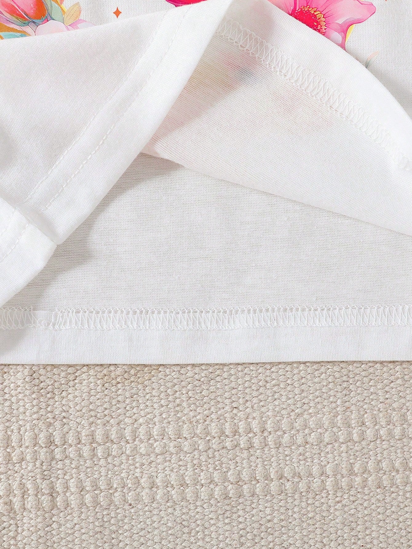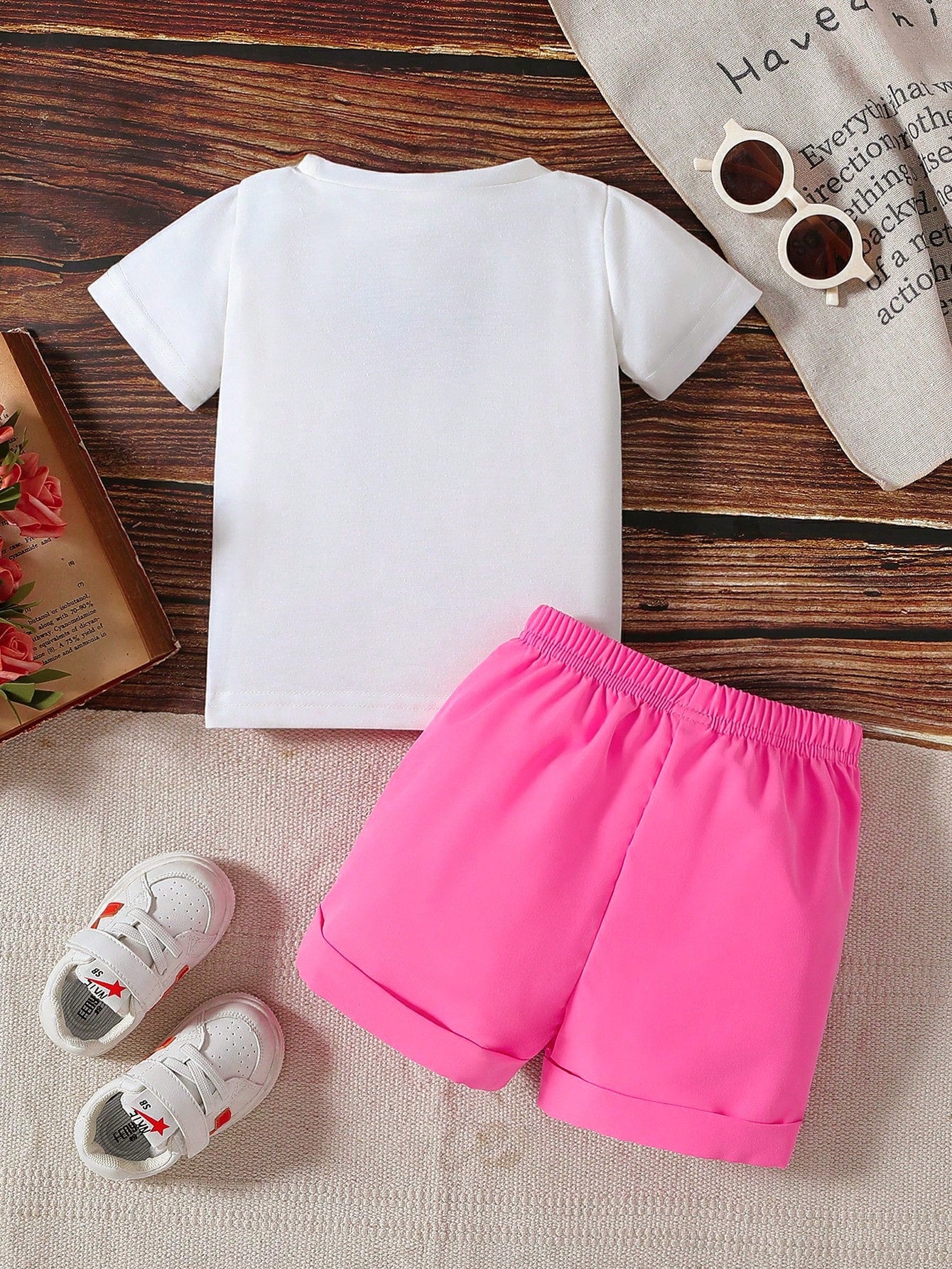 kids SHEIN Baby Girls Casual Ramadan Print Short Sleeve T-Shirt And Shorts Set