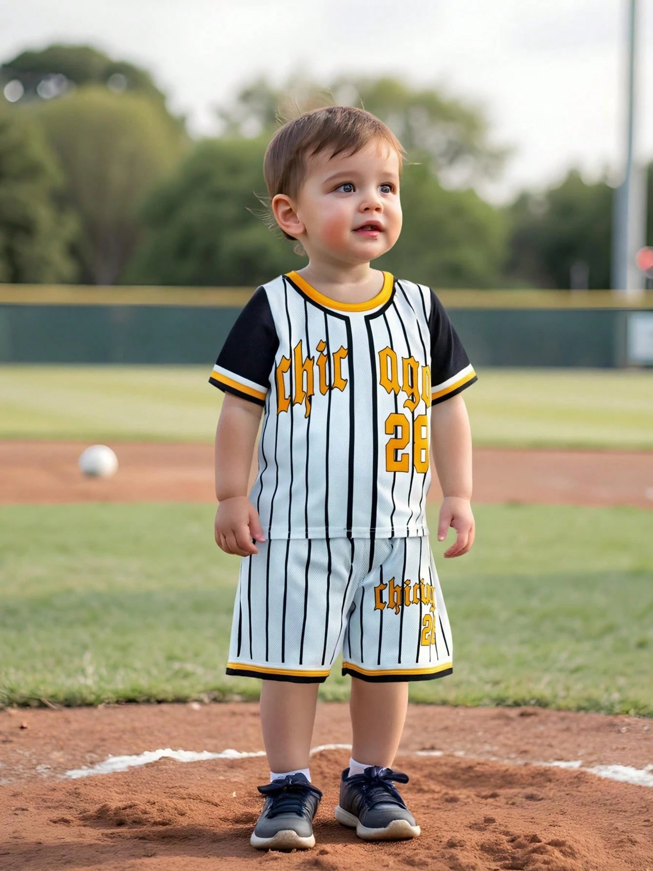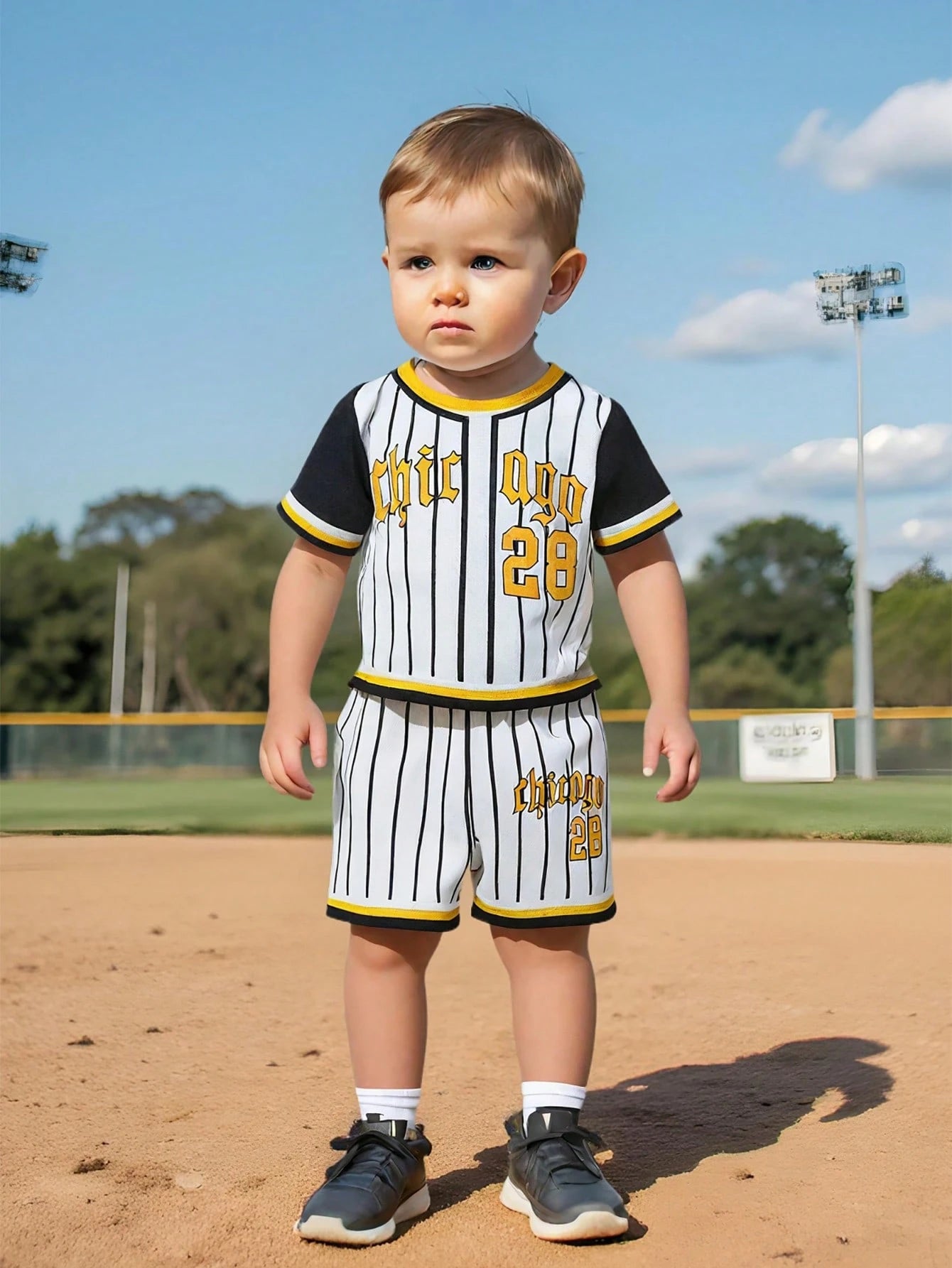 The Baby Boy's Positioning Printed Baseball Uniform Suit Is Suitable For Babies To Wear In The Summer