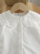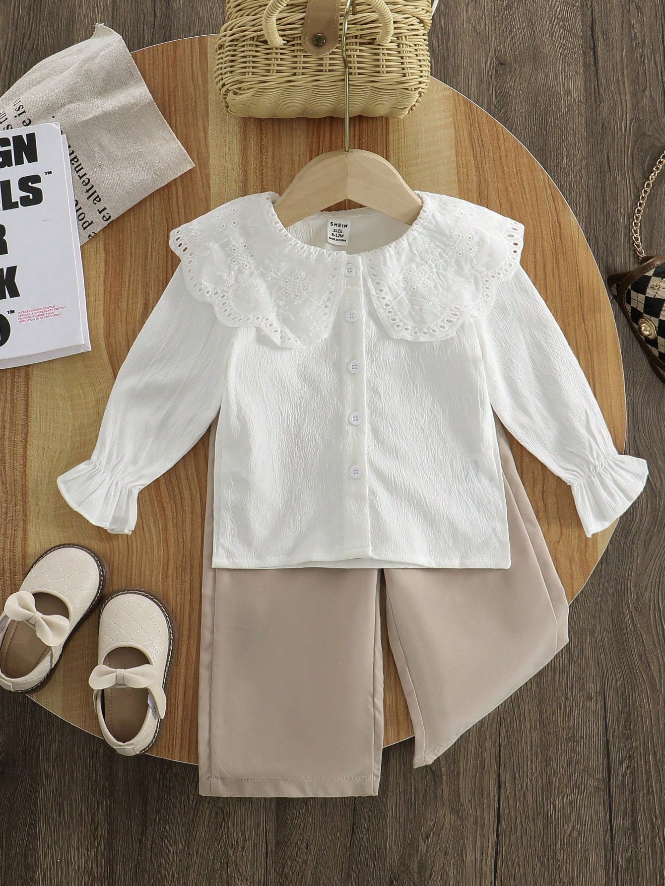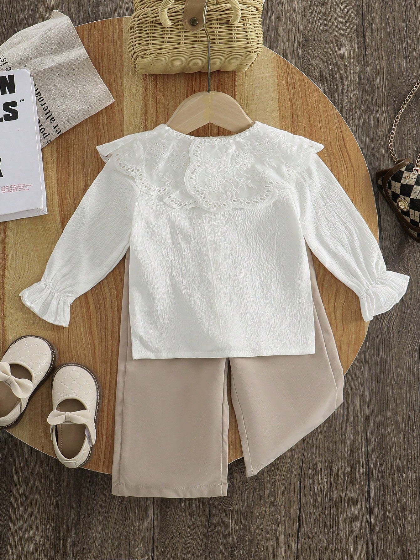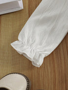 Vintaside Kids 1 Set Baby Girl Casual White Puff Collar Blouse & Khaki Loose Pants, Fall