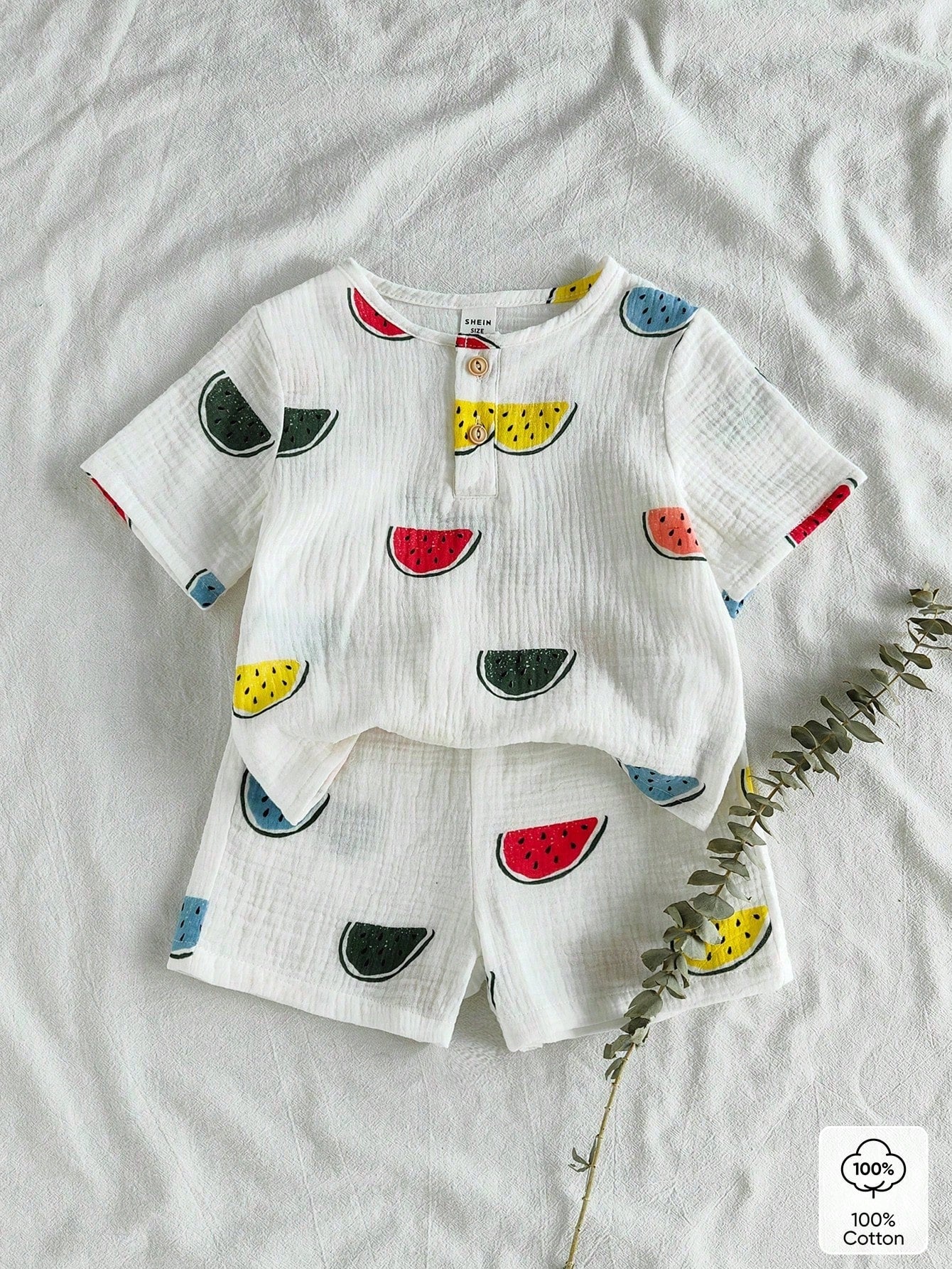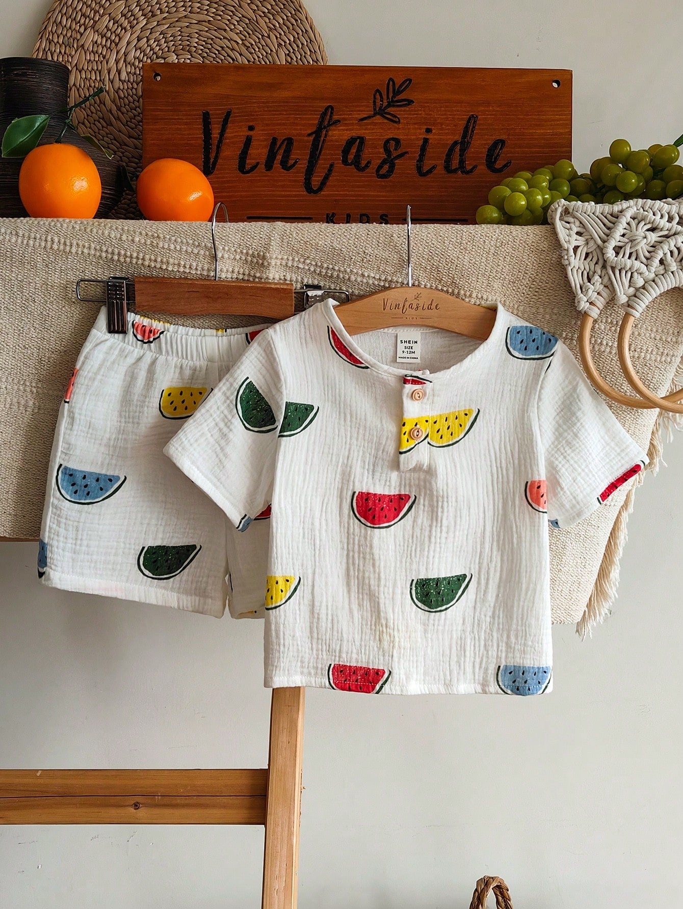 Vintaside Kids 2pcs/Set Baby Boys' Cute Watermelon Pattern Short Sleeve T-Shirt And Shorts Set