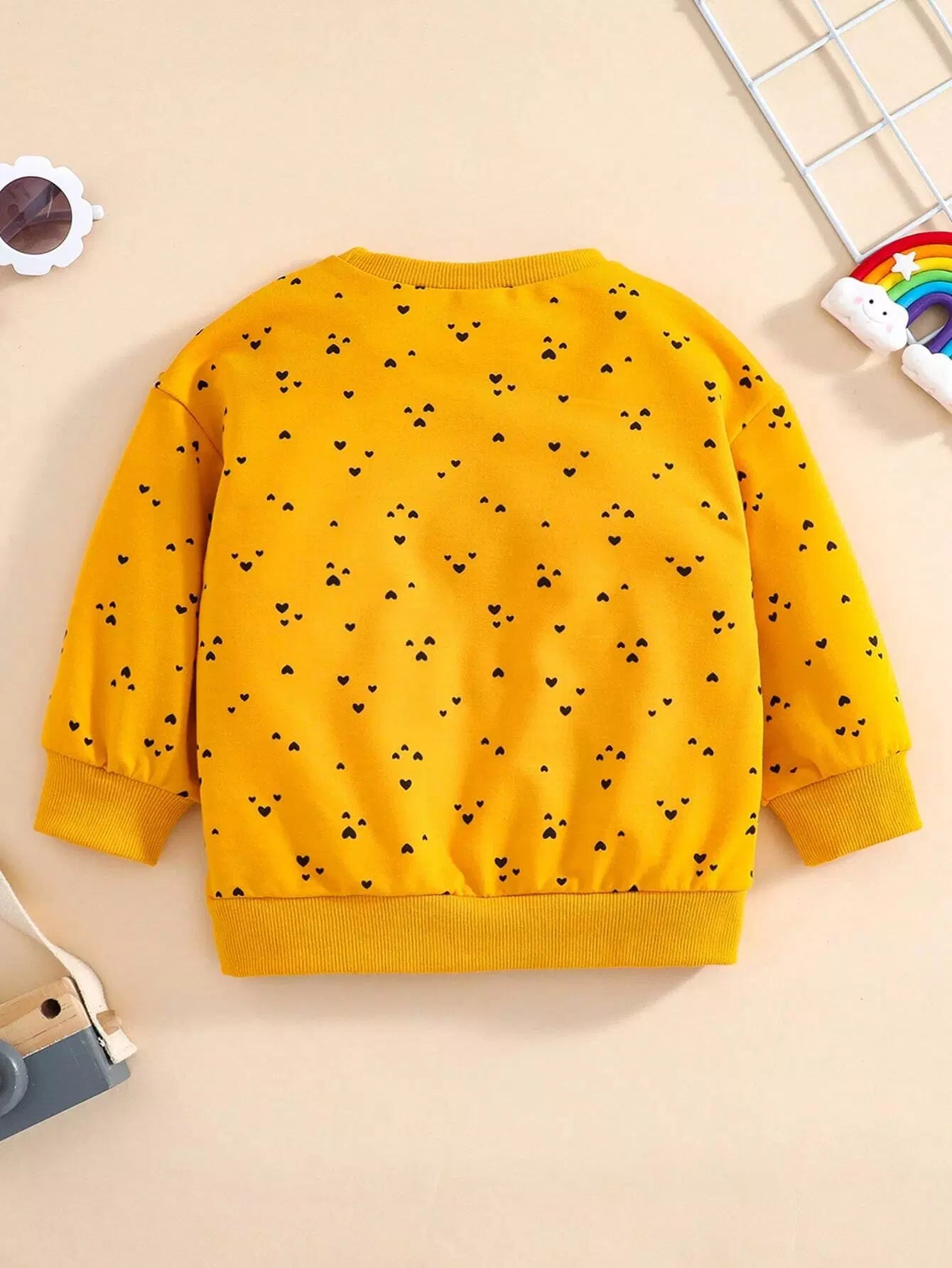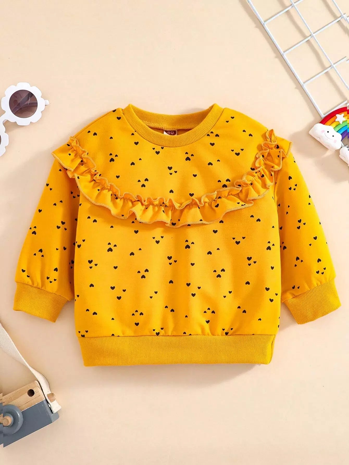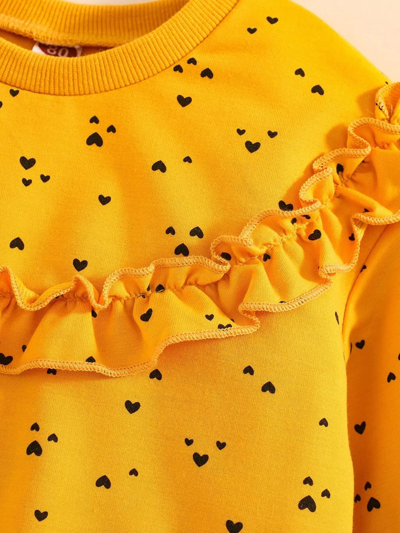 Baby Heart Print Ruffle Trimed Sweatshirt