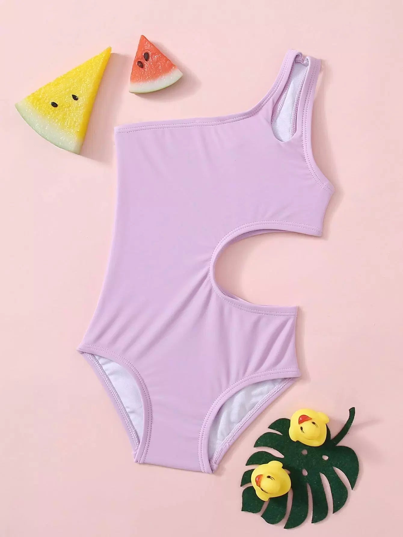 Baby Girl Cut-out One Shoulder One Piece Swimsuit