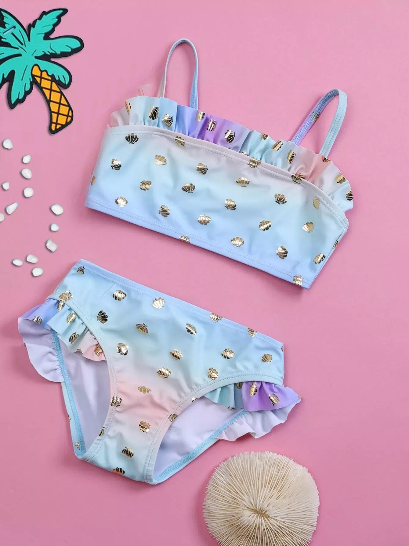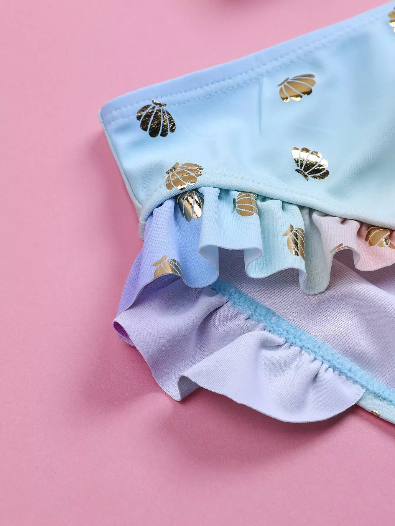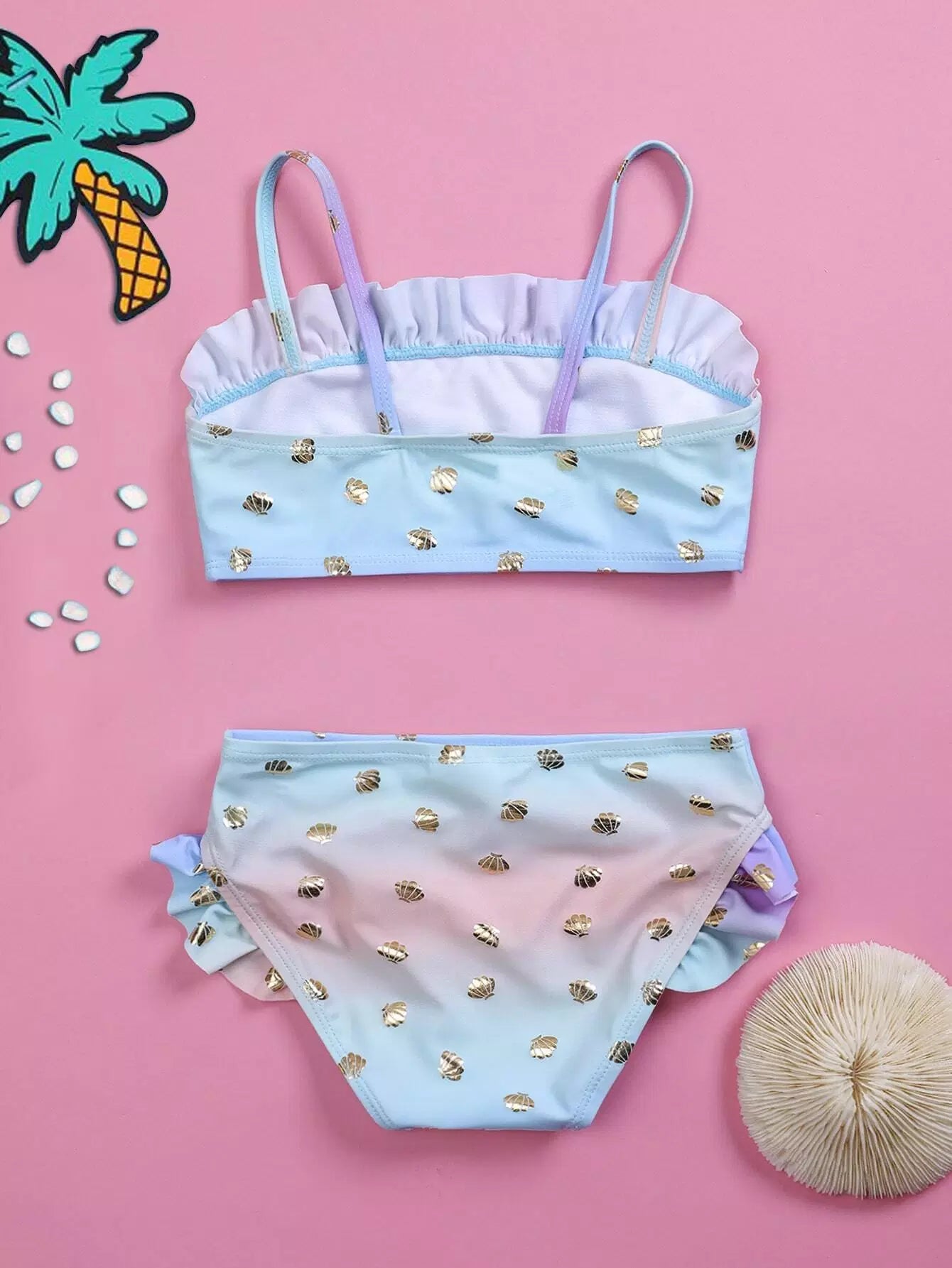 Baby Girl Ombre Shell Pattern Ruffle Bikini Swimsuit