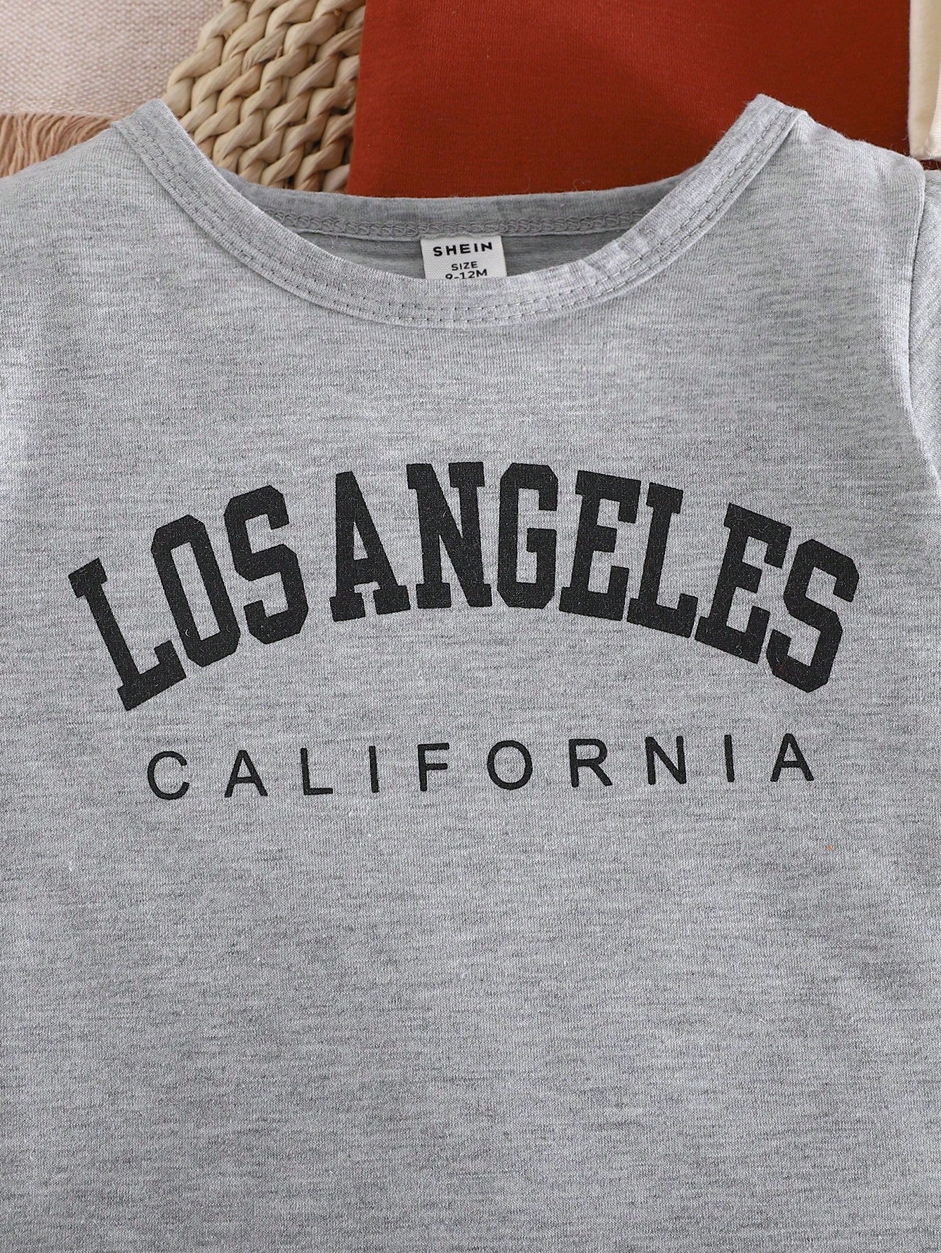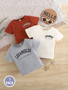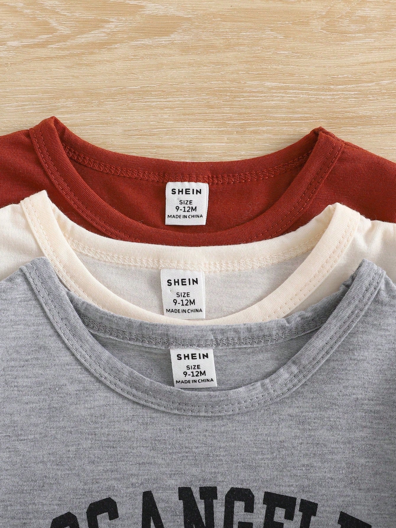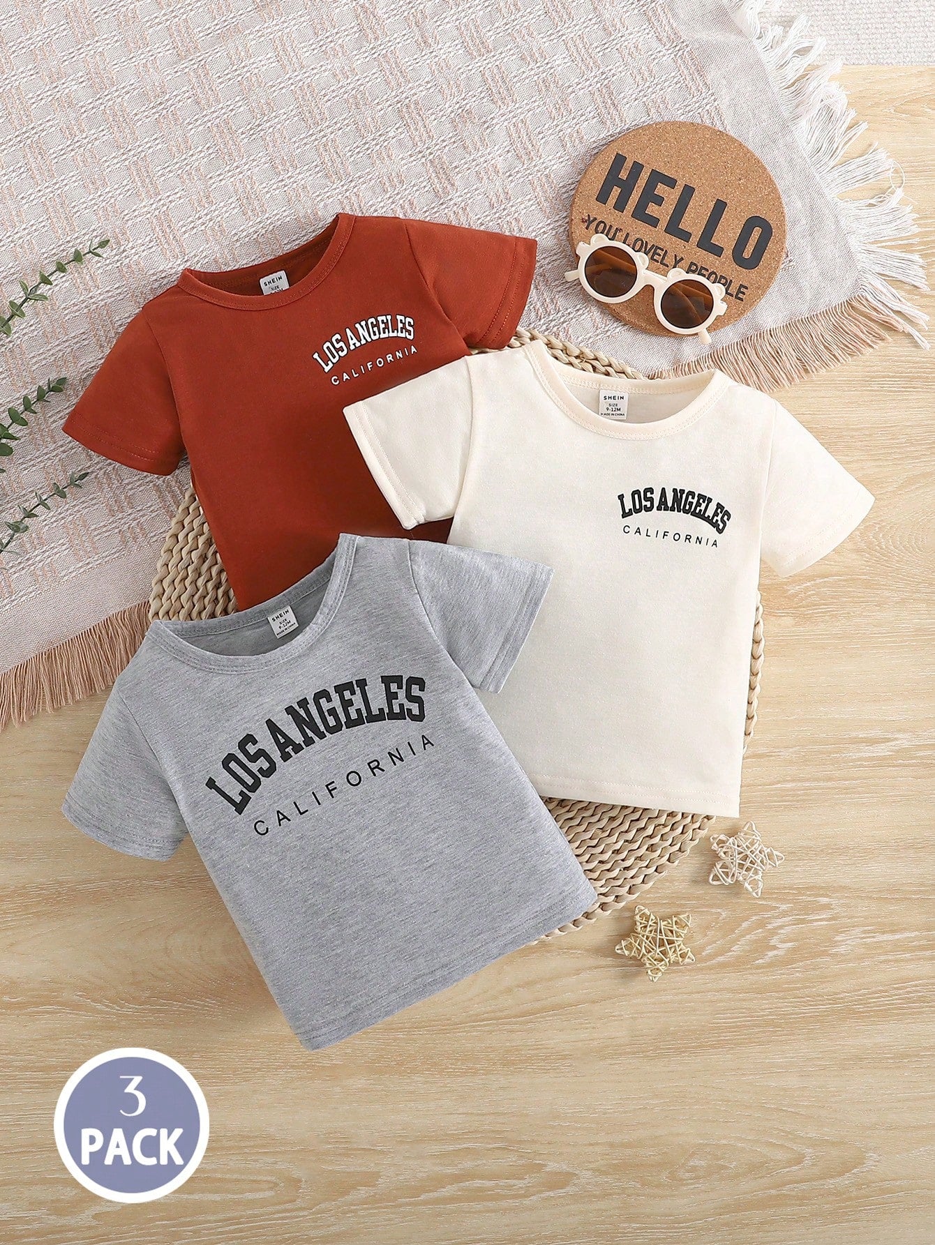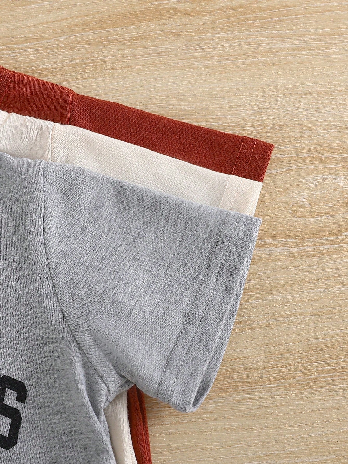 3pcs Baby/Toddler Boys Casual Letter Print Short Sleeve Top, Street Style, Spring/Summer