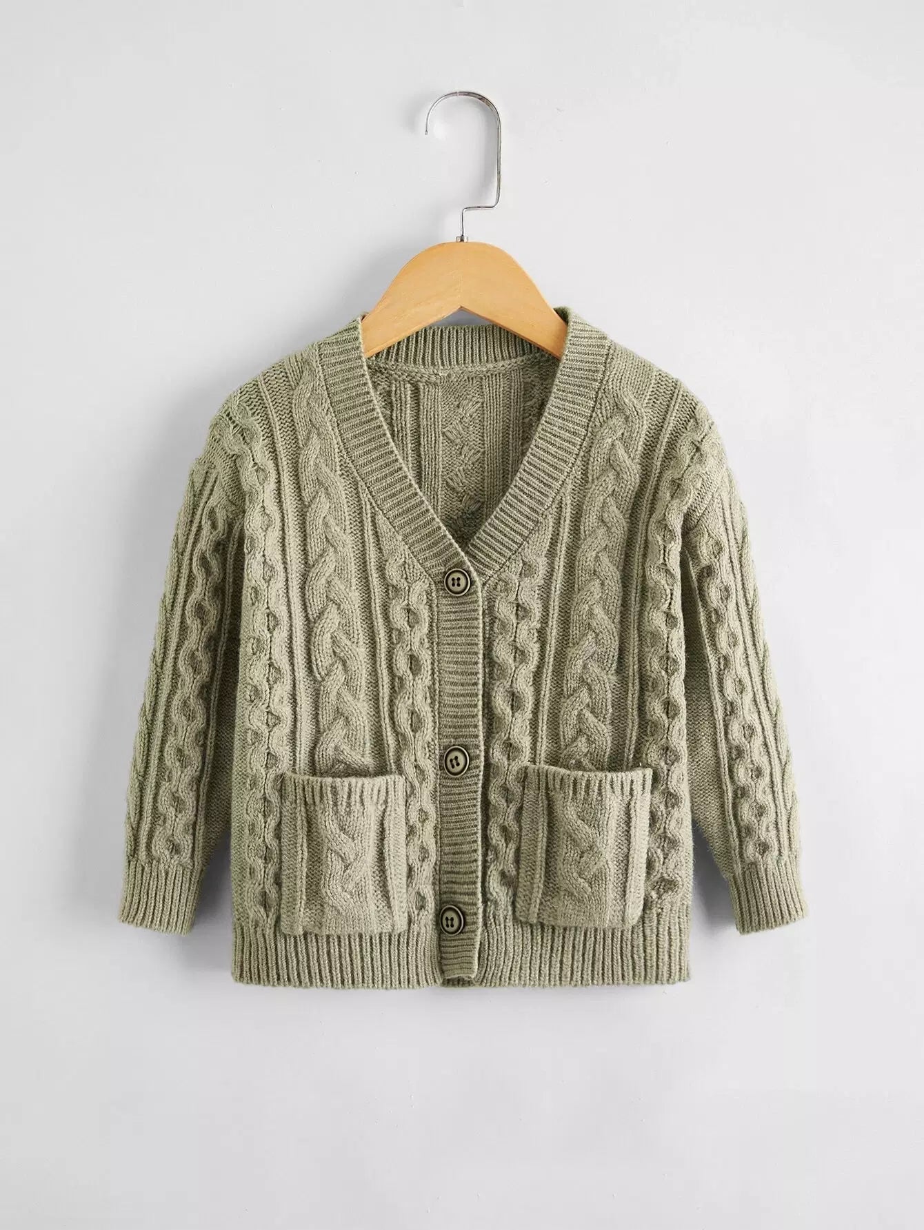 Baby Boy V-neck Dual Pockets Cable Knit Cardigan