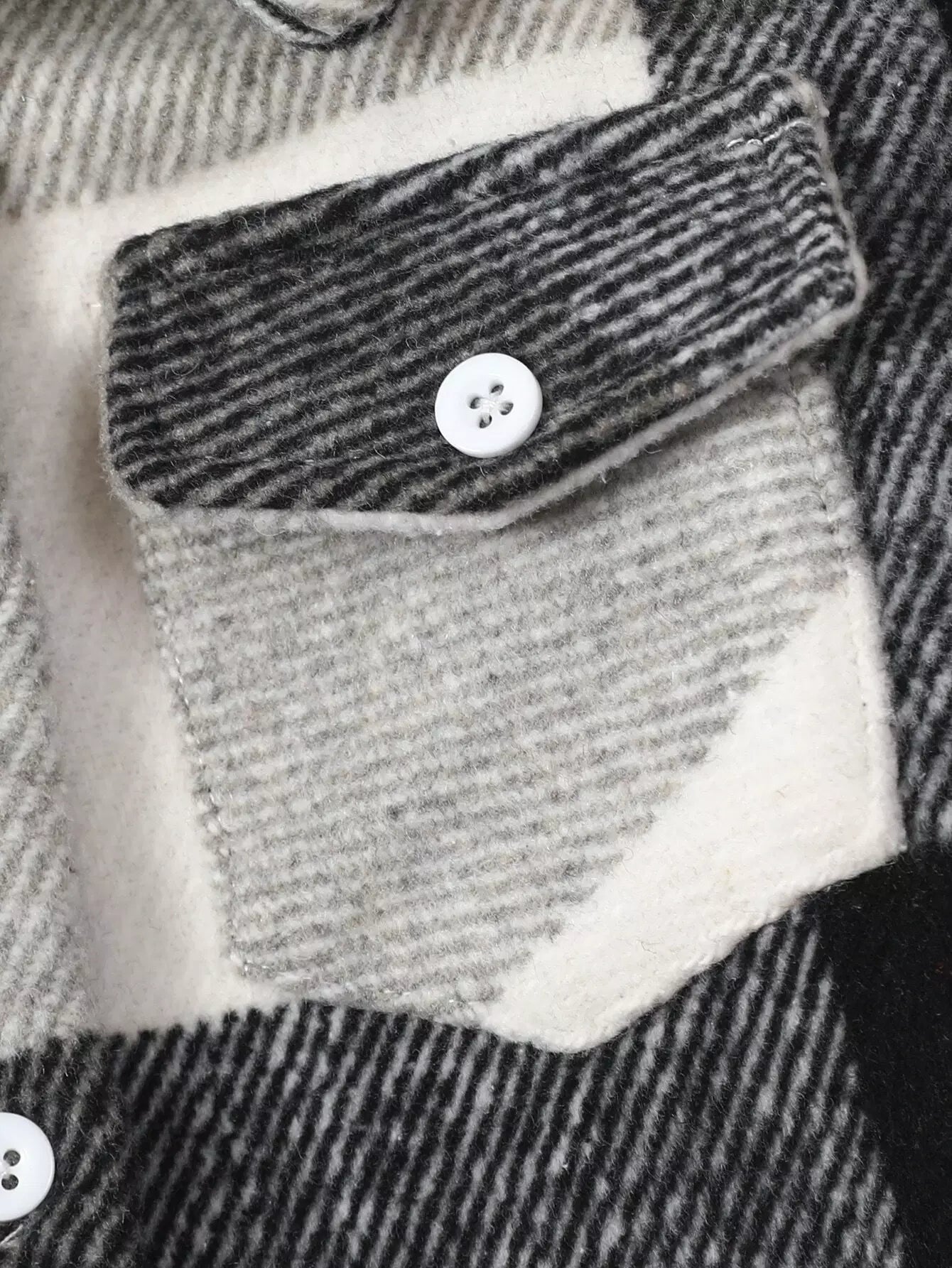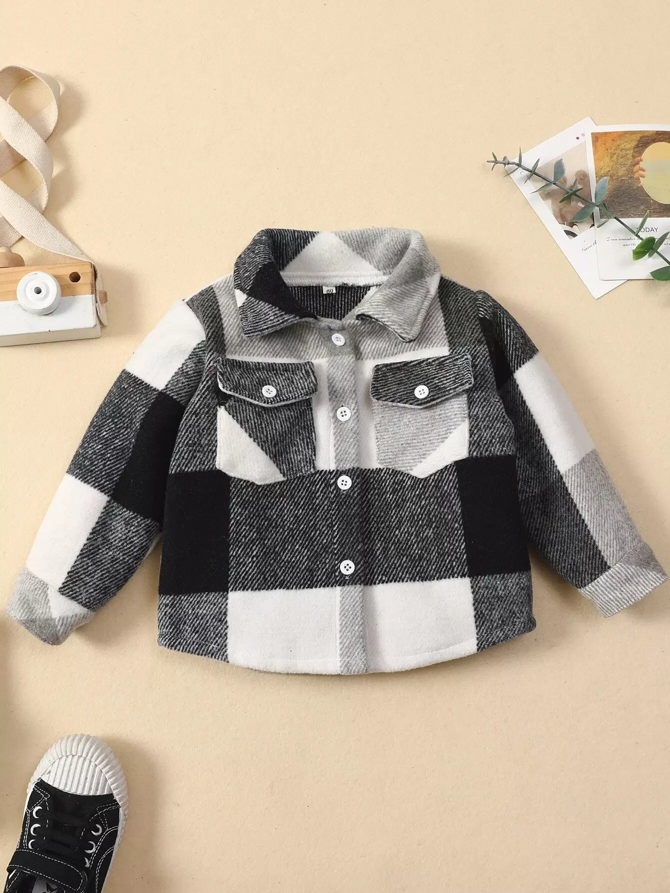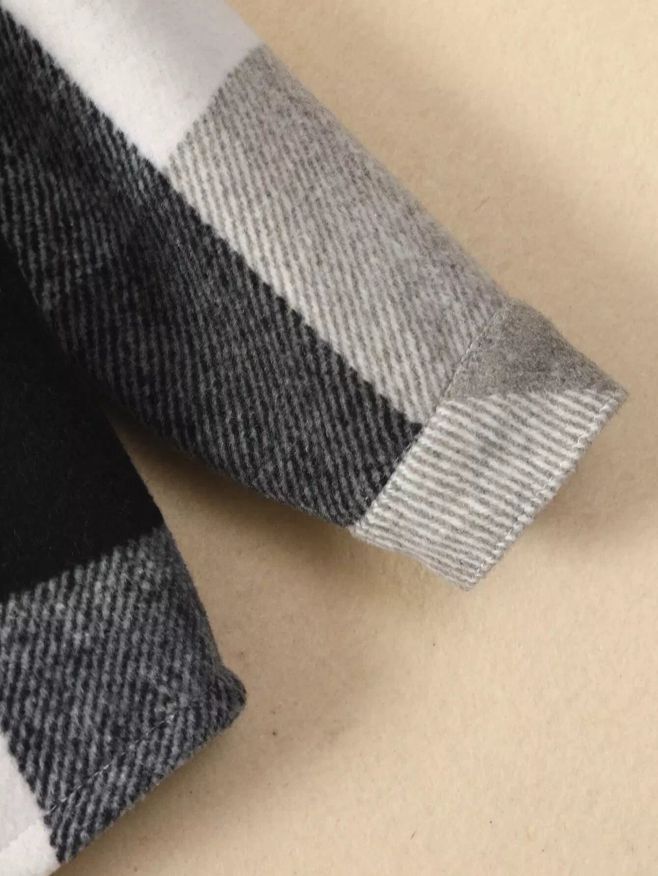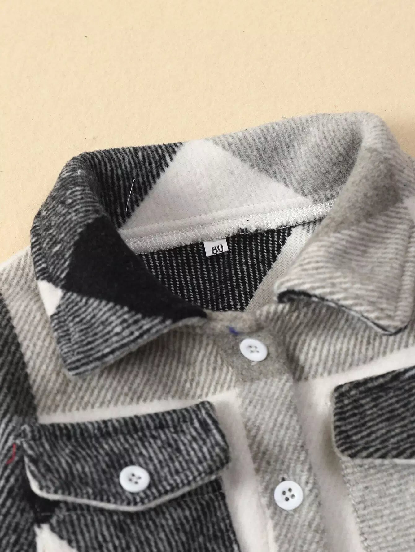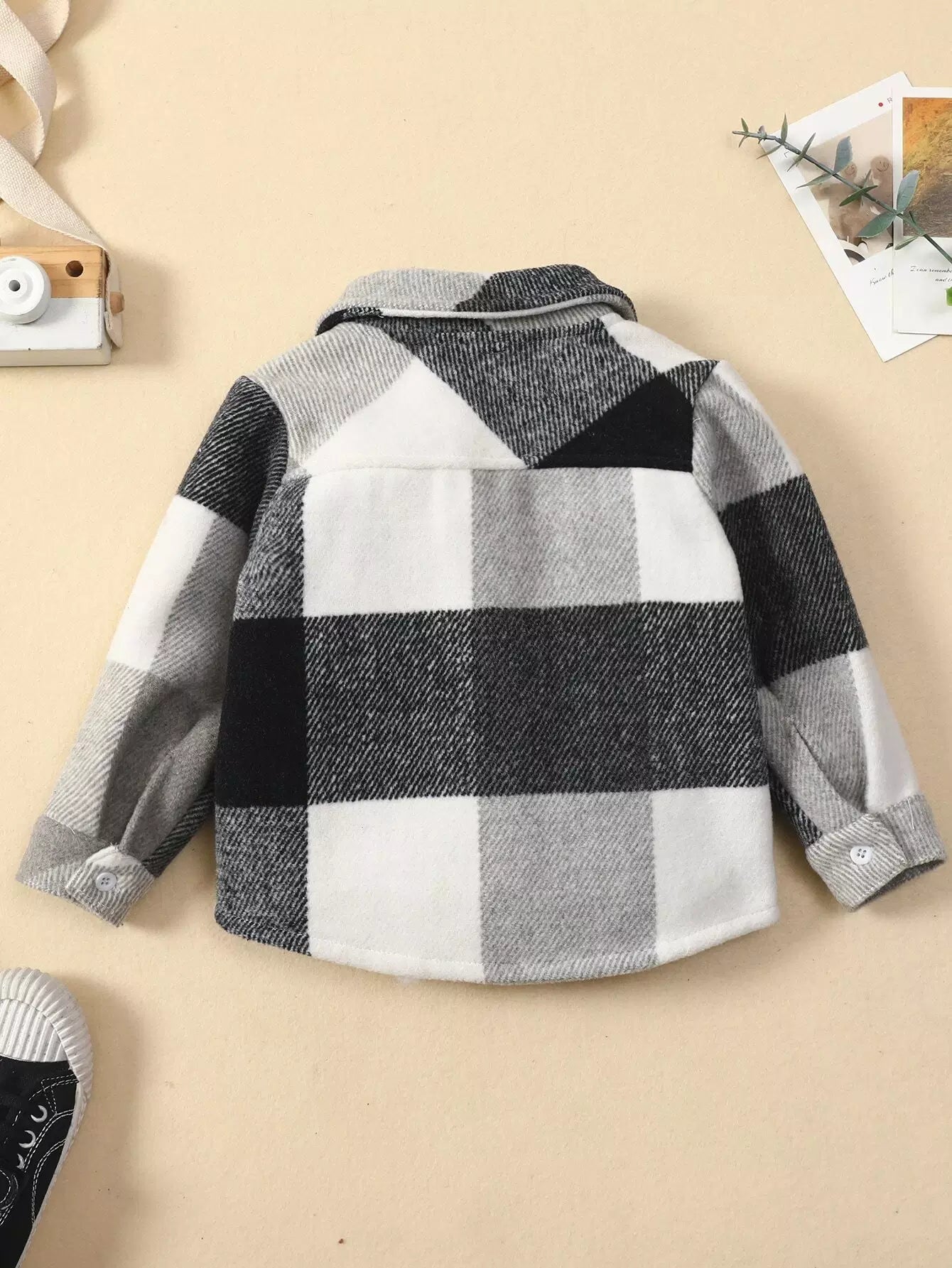 Baby Buffalo Plaid Flap Pockets Overcoat
