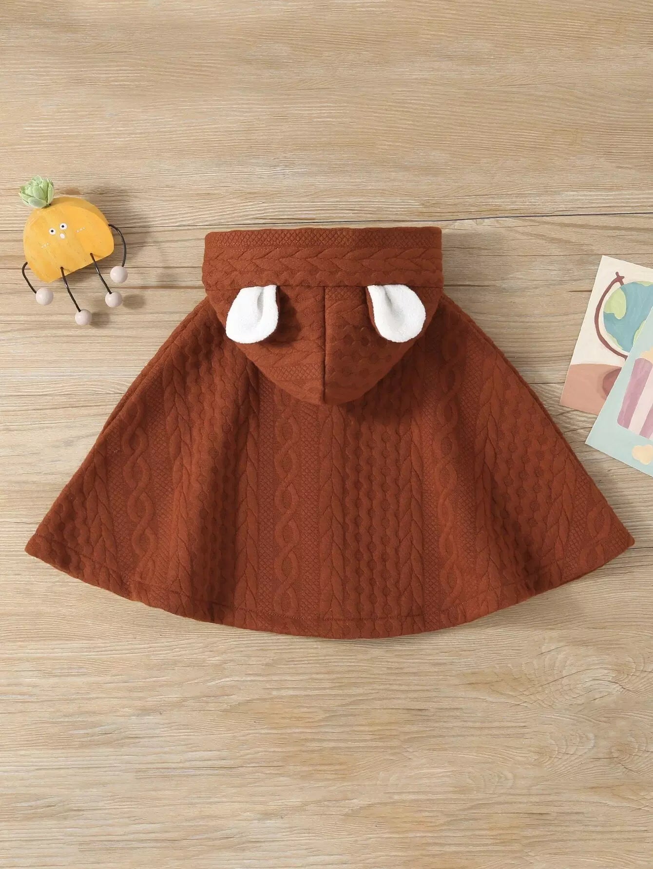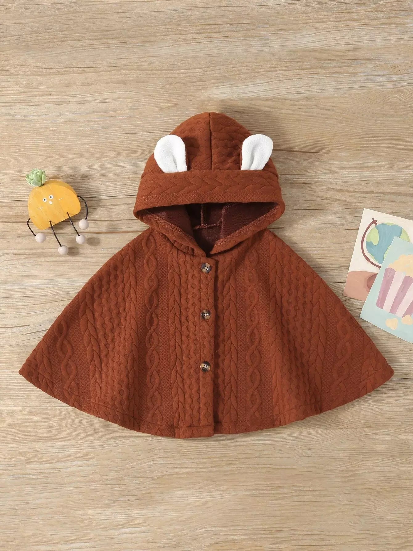 Baby Cable Textured 3D Ear Design Hooded Cape Coat
