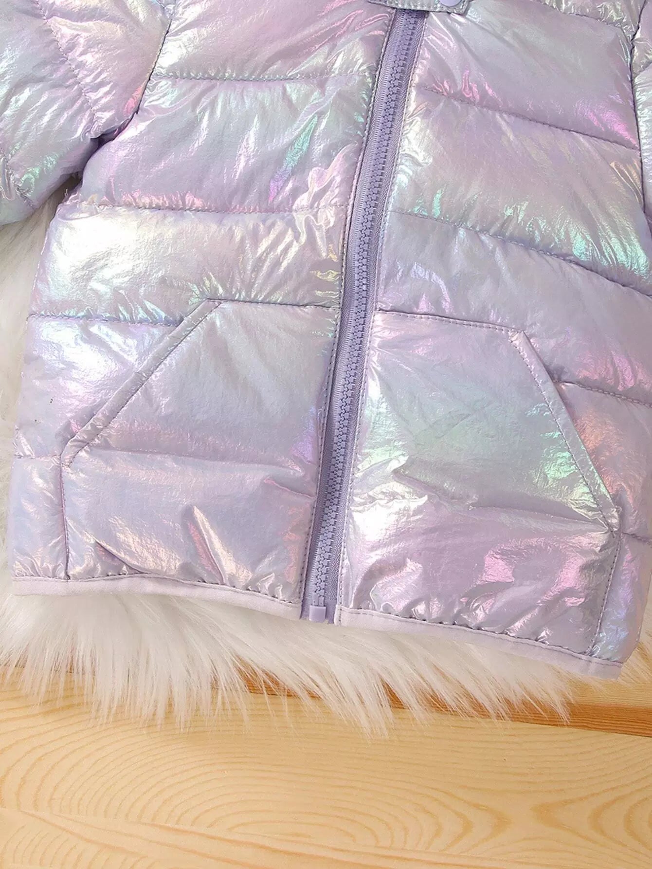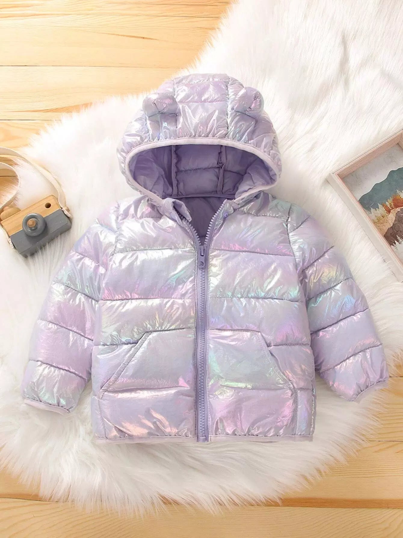 Baby Holographic Kangaroo Pocket 3D Patched Hooded Coat