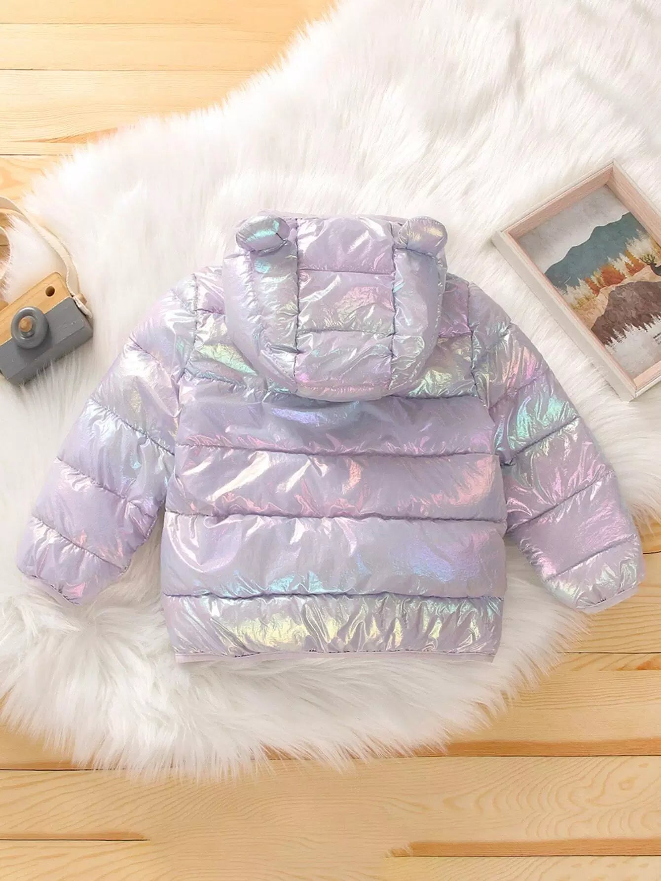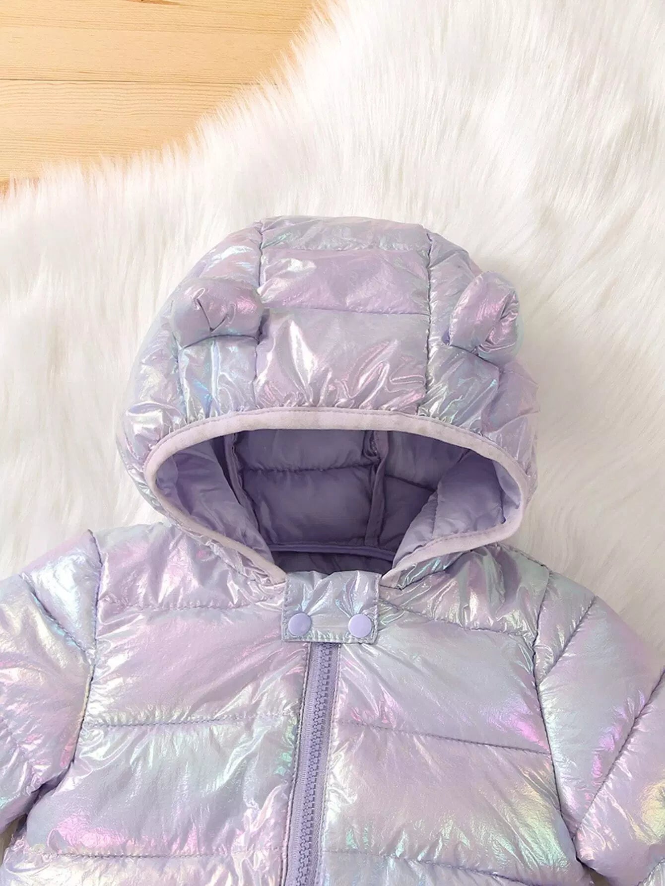 Kids - Baby Holographic Kangaroo Pocket 3D Patched Hooded Coat