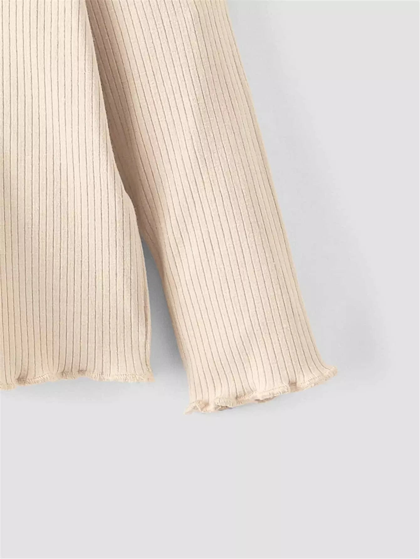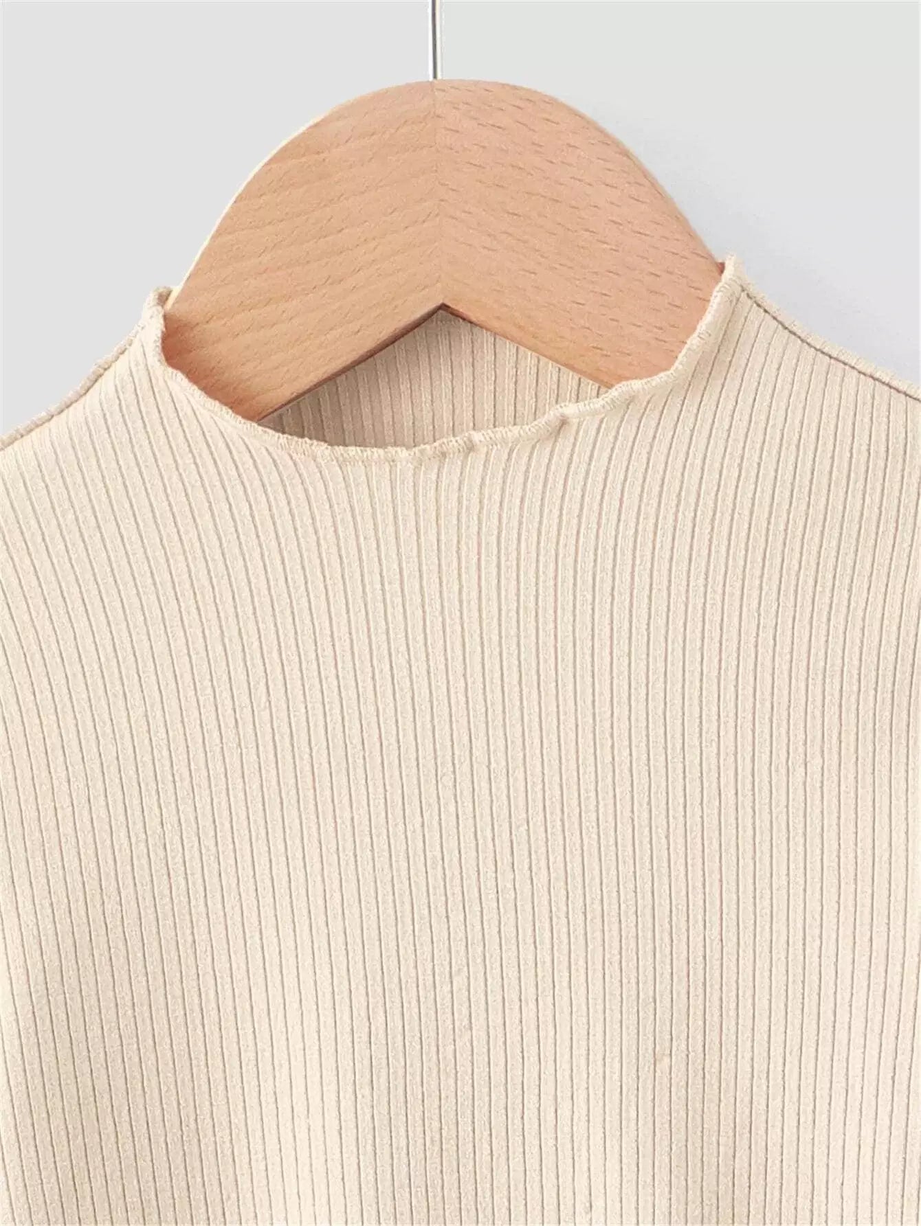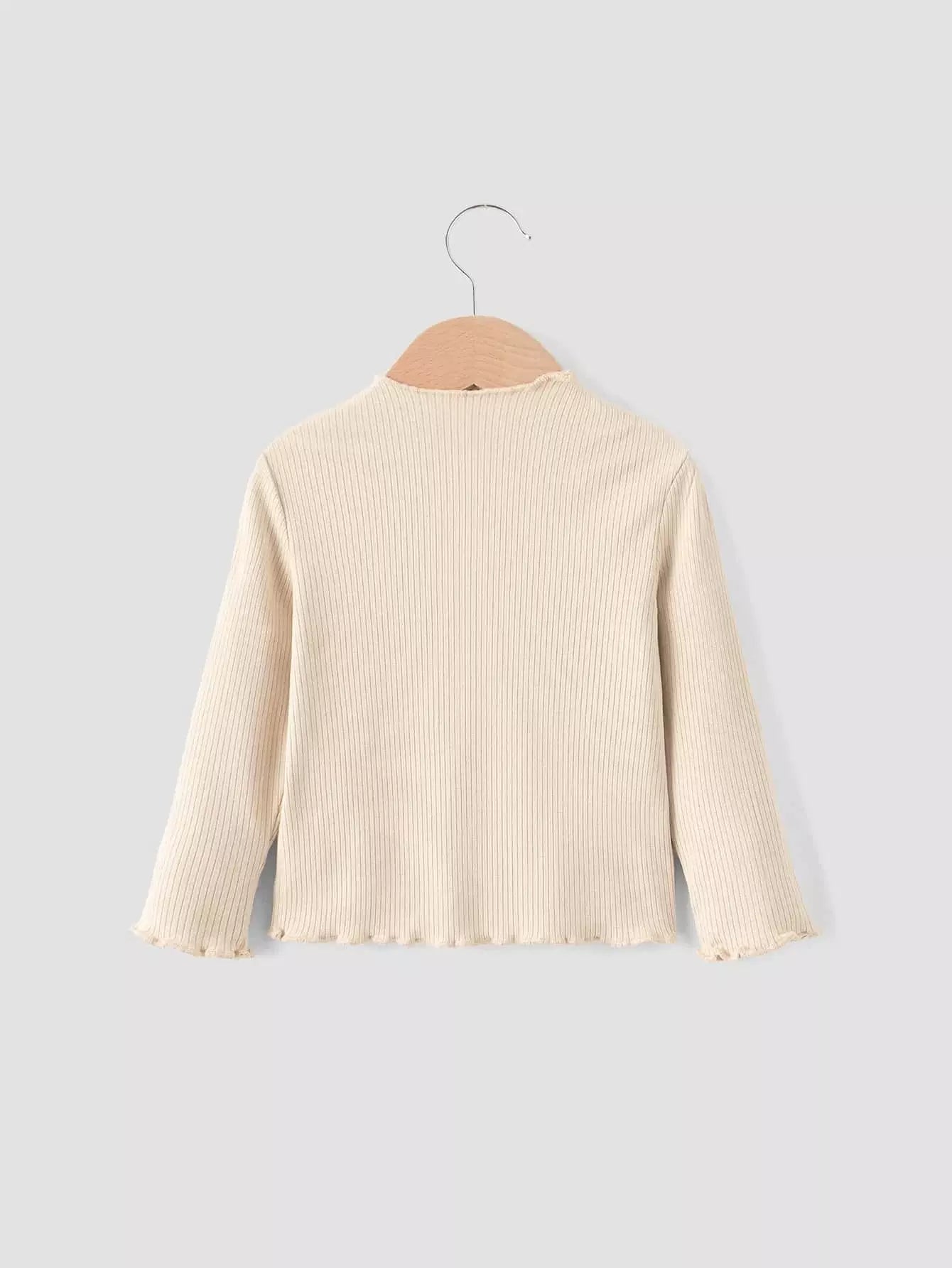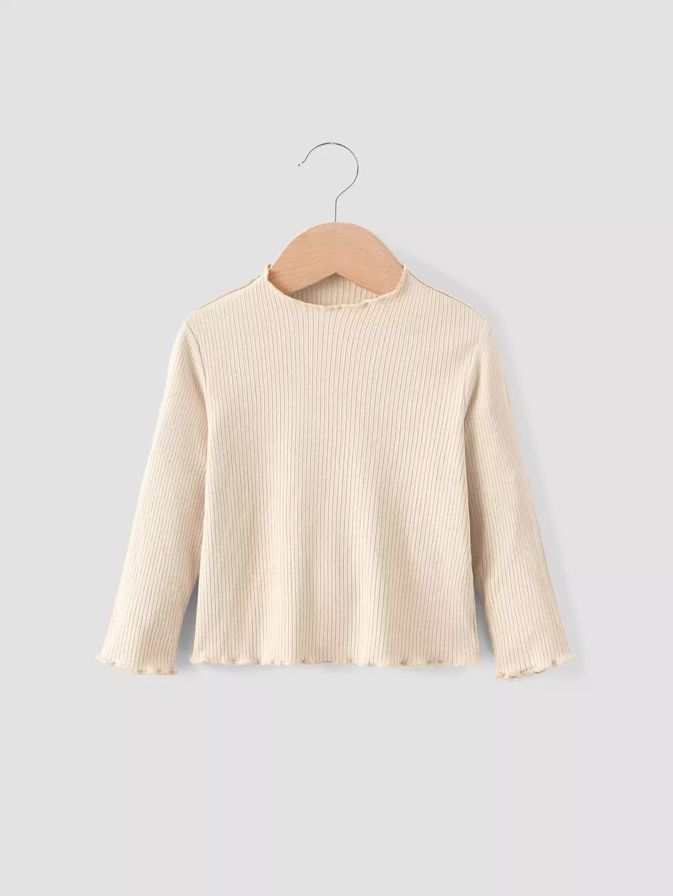 Baby Mock Neck Lettuce Trim Rib-Knit Top