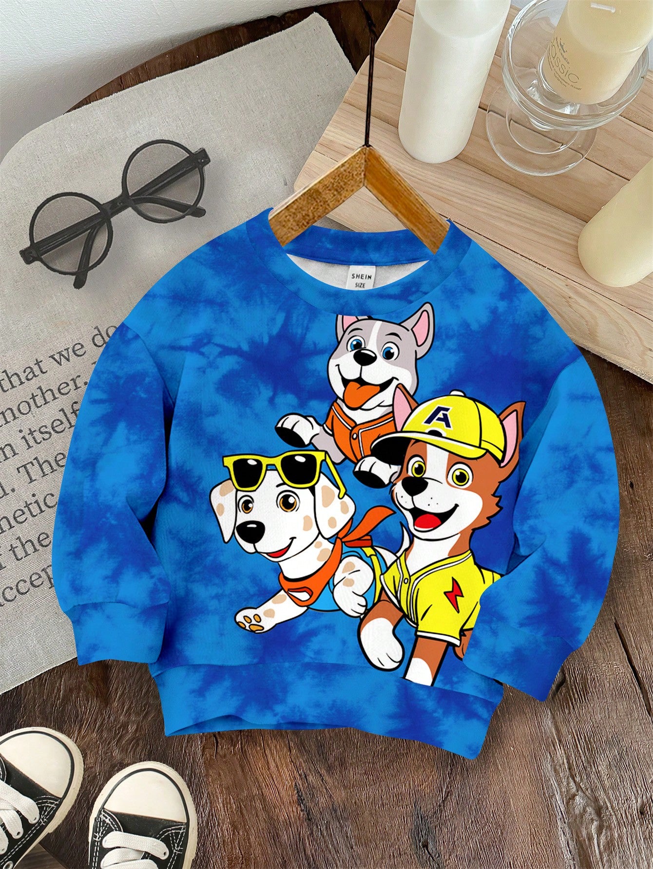 SHEIN Baby Boys' Casual Soft Knit Loose Round Neck Long Sleeve Cartoon Dog Print Pullover Sweatshirt