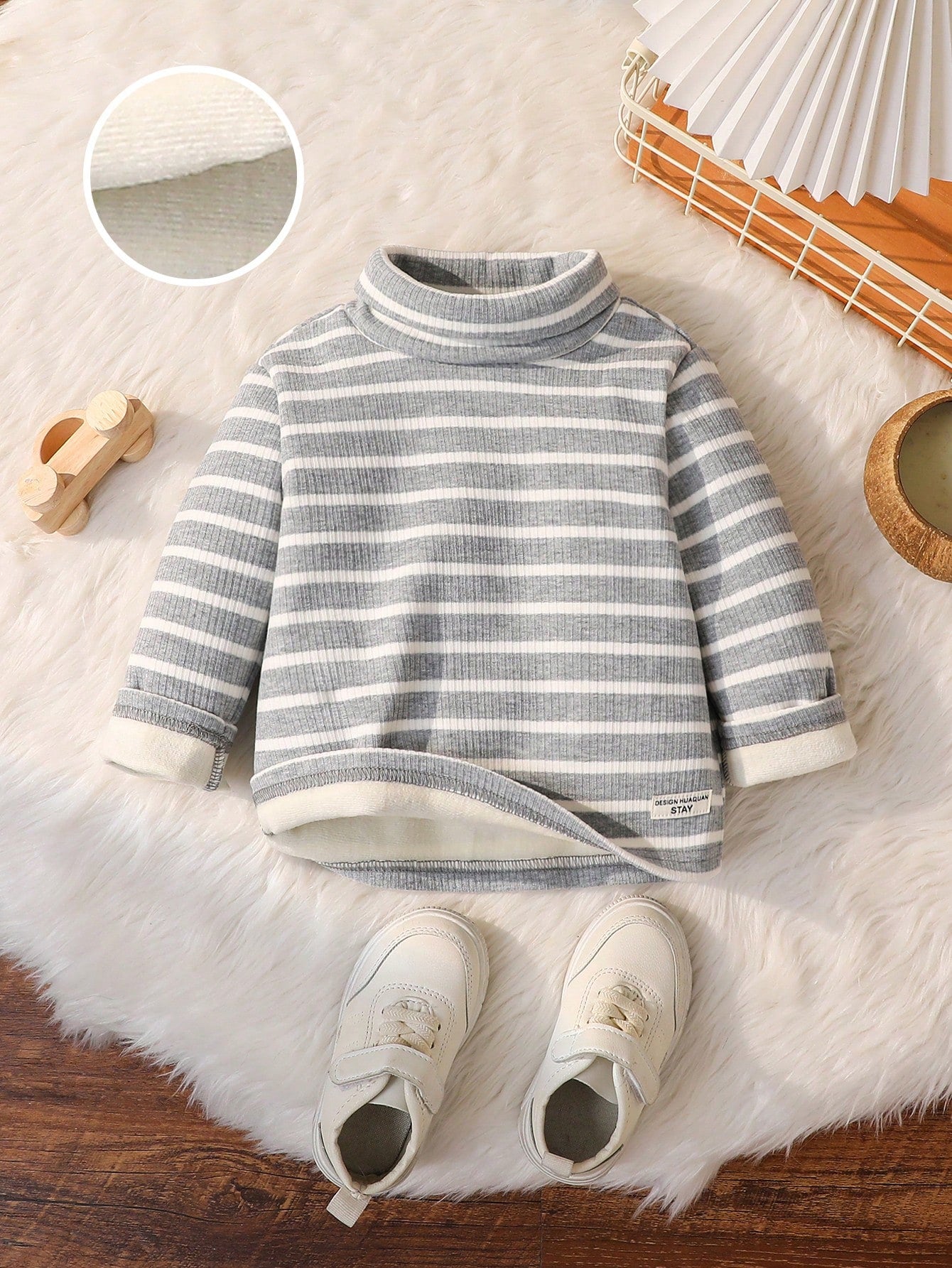 Unisex Gray Striped High-Neck Fleece Loose All-Match Casual Warm Soft Comfortable For Baby Boys And Girls,