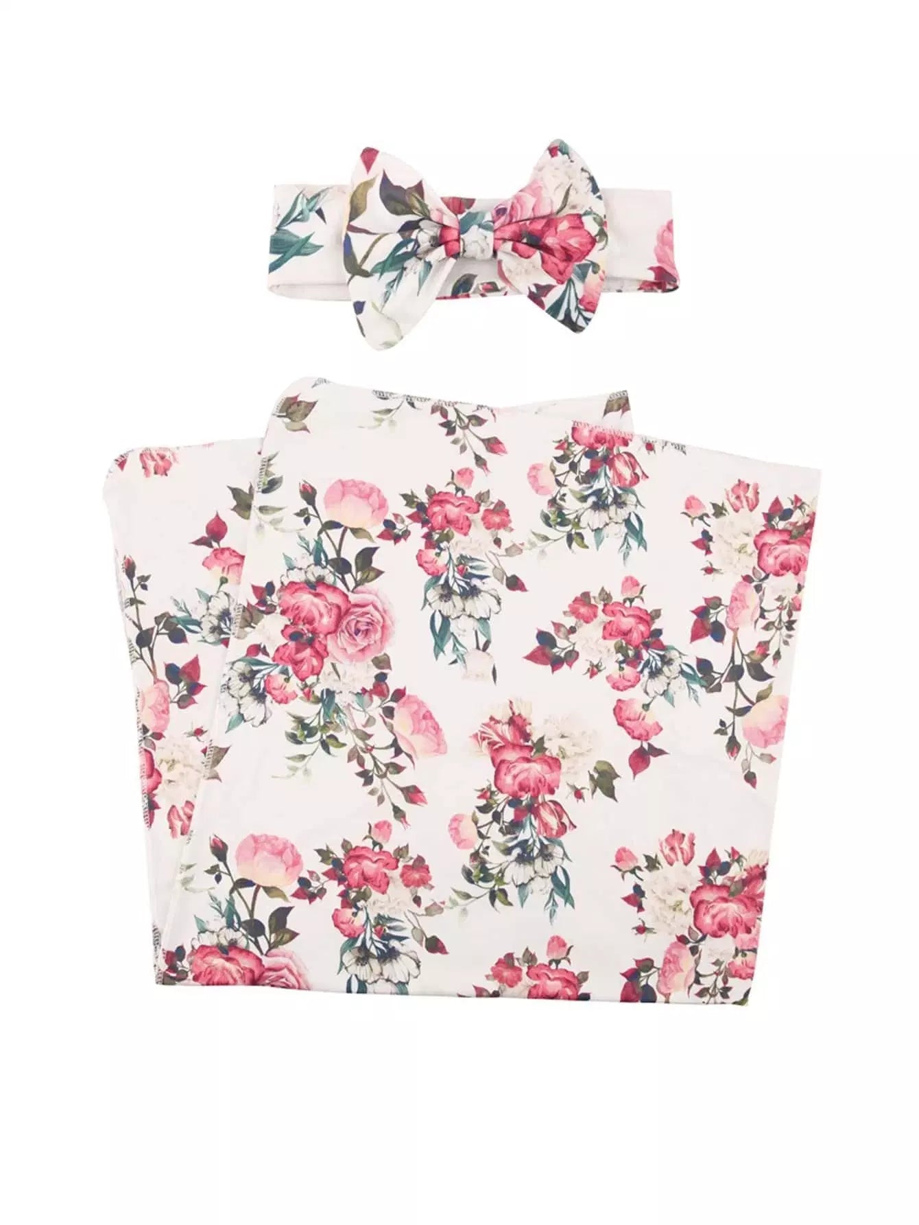 Kids - Newborn Girl Floral Print Photography Prop With Headband