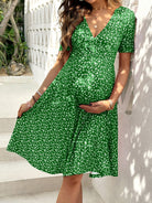 Ditsy Floral V-Neck Short Sleeve Casual Maternity Dress For Vacation