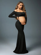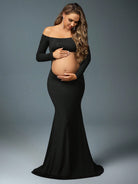 MaterniChic 1 Set Maternity Photoshoot Off Shoulder Long Sleeve Top And Elastic Waist Mermaid Skirt