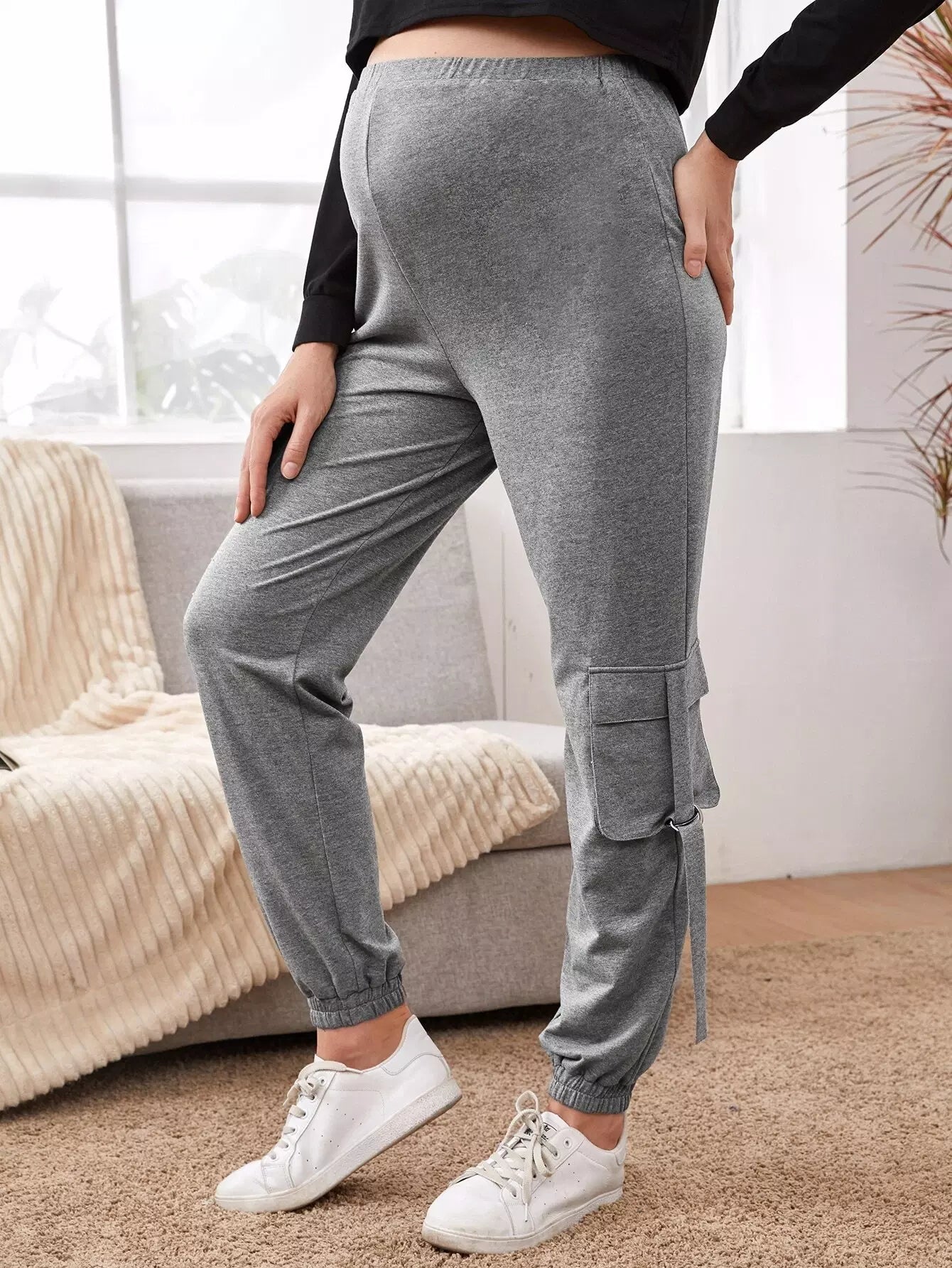 Maternity Ring Strap Detail Flap Pocket Side Joggers