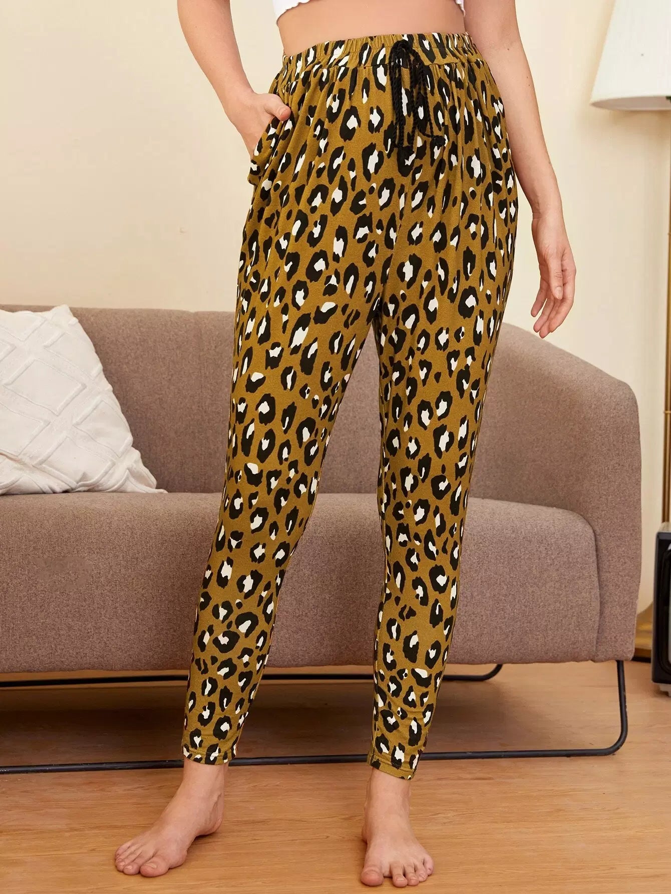 Maternity Tie Front Slant Pocket Leopard Leggings